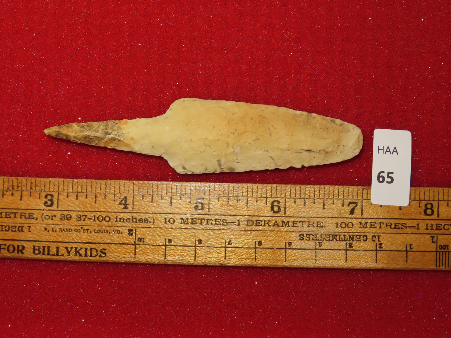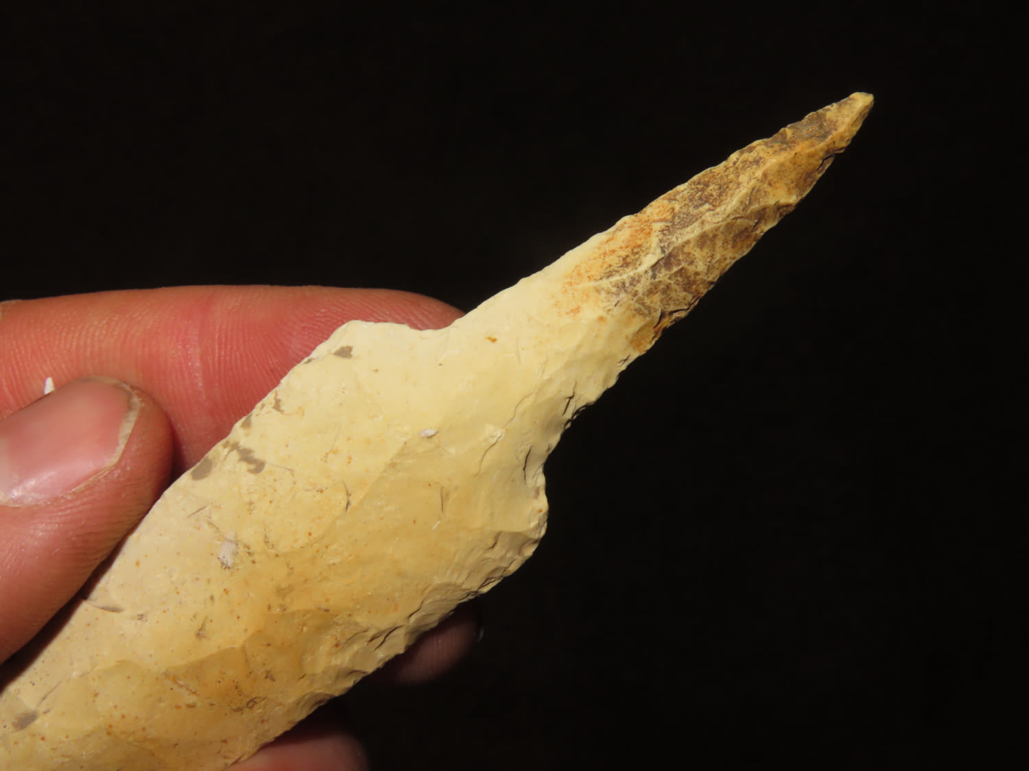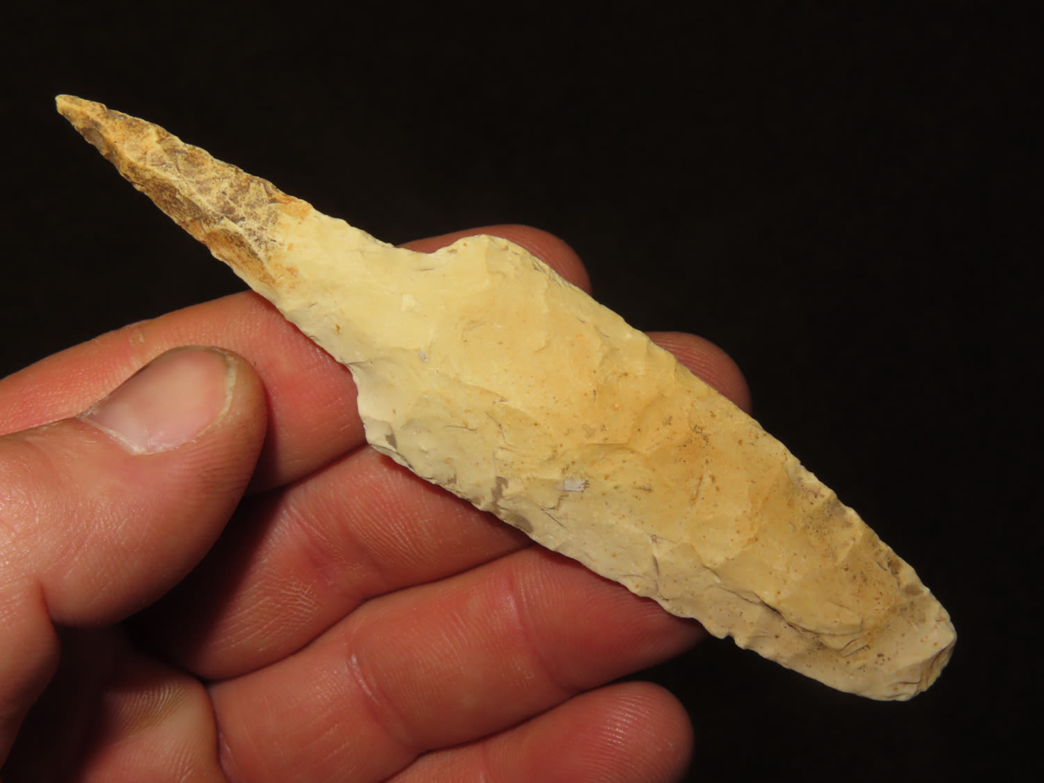 4 1/8″ Finely Made Archaic Sedalia Drill, Burlington Chert Material; Jerry Dickey COA; Found in Marion Co., Mo.