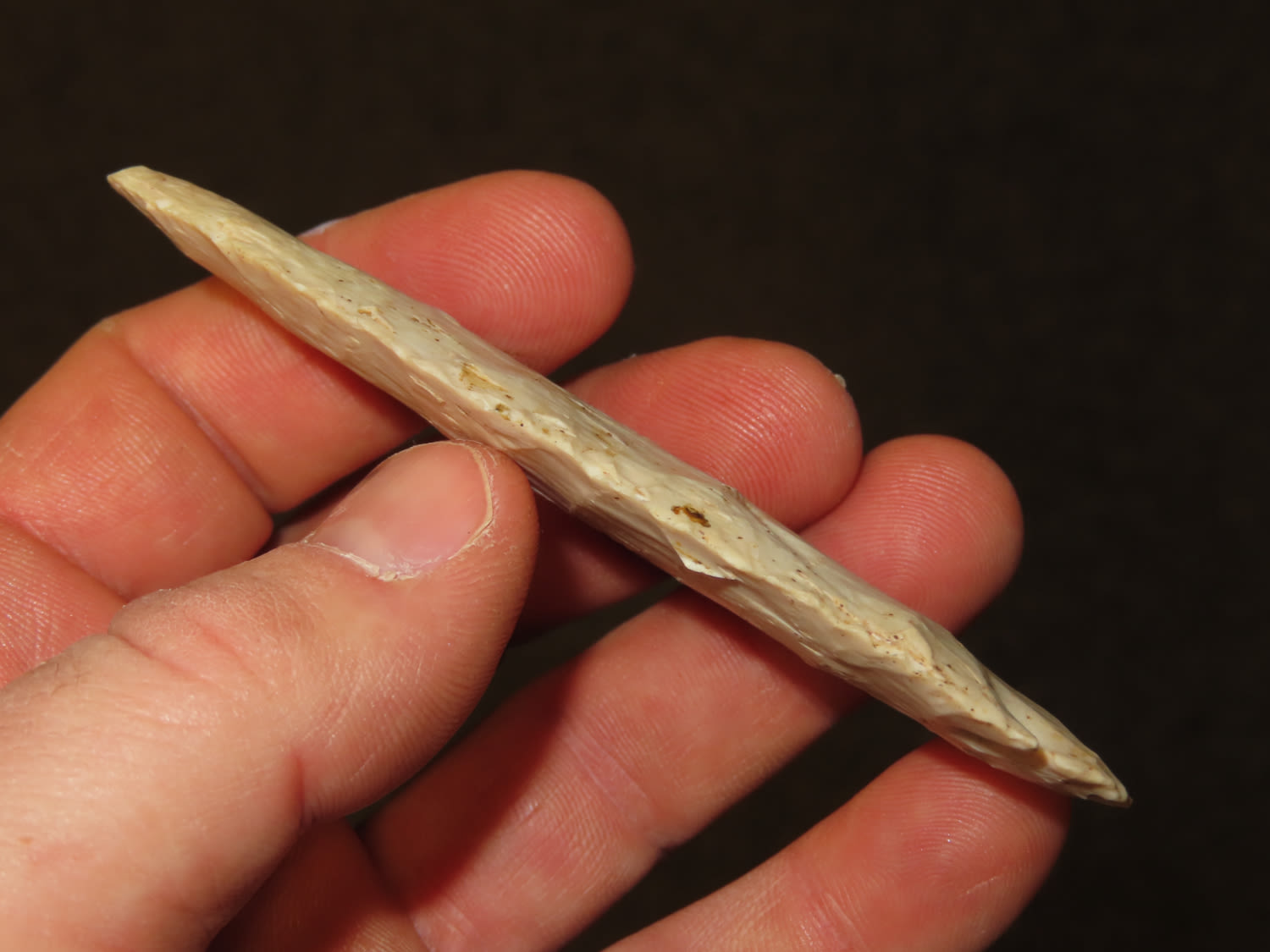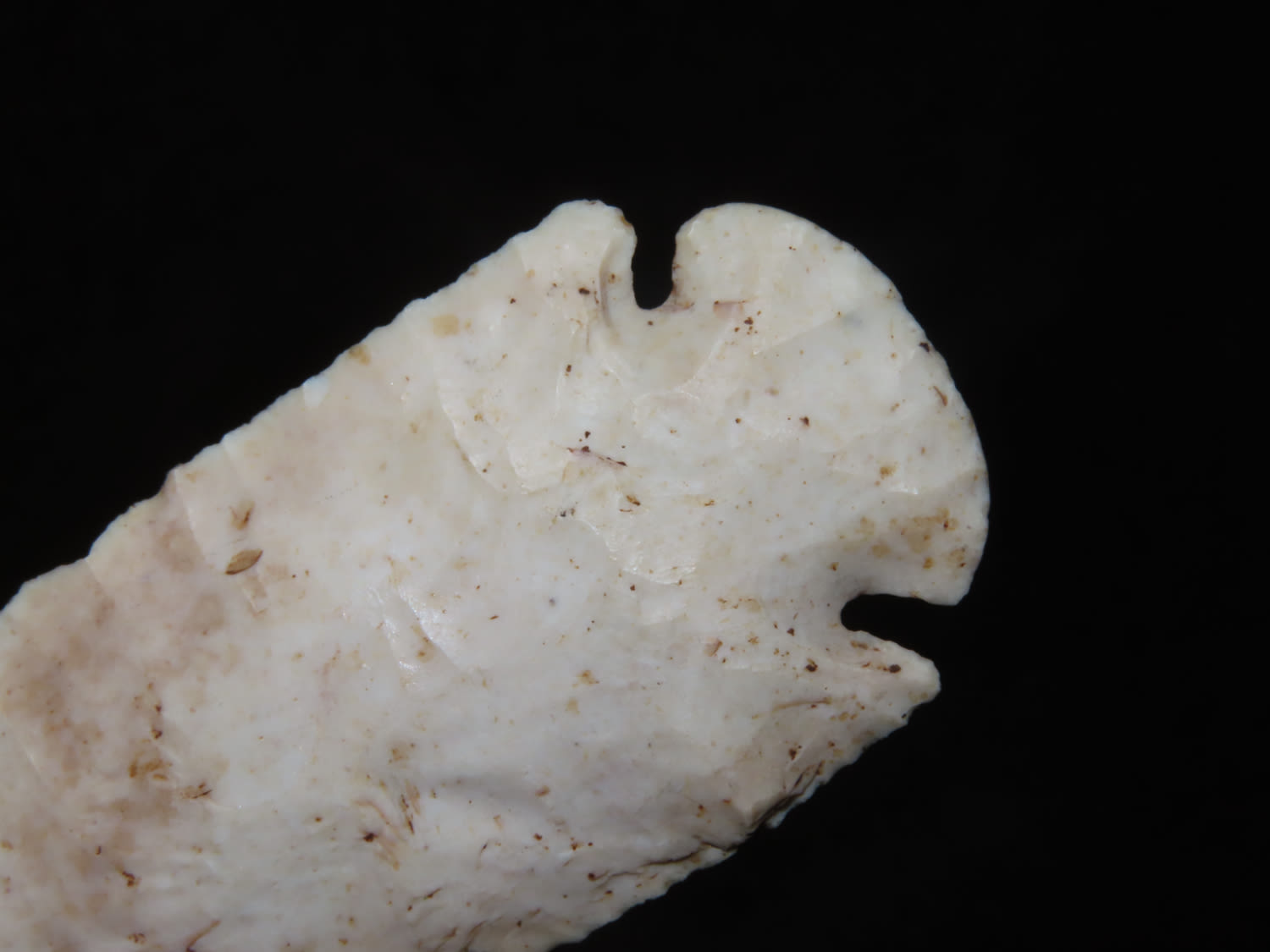 3 3/4″ Superb Early Archaic Dovetail (around 7500 B.C.), Burlington Chert Material; Jerry Dickey COA; Found in St. Louis, MO.