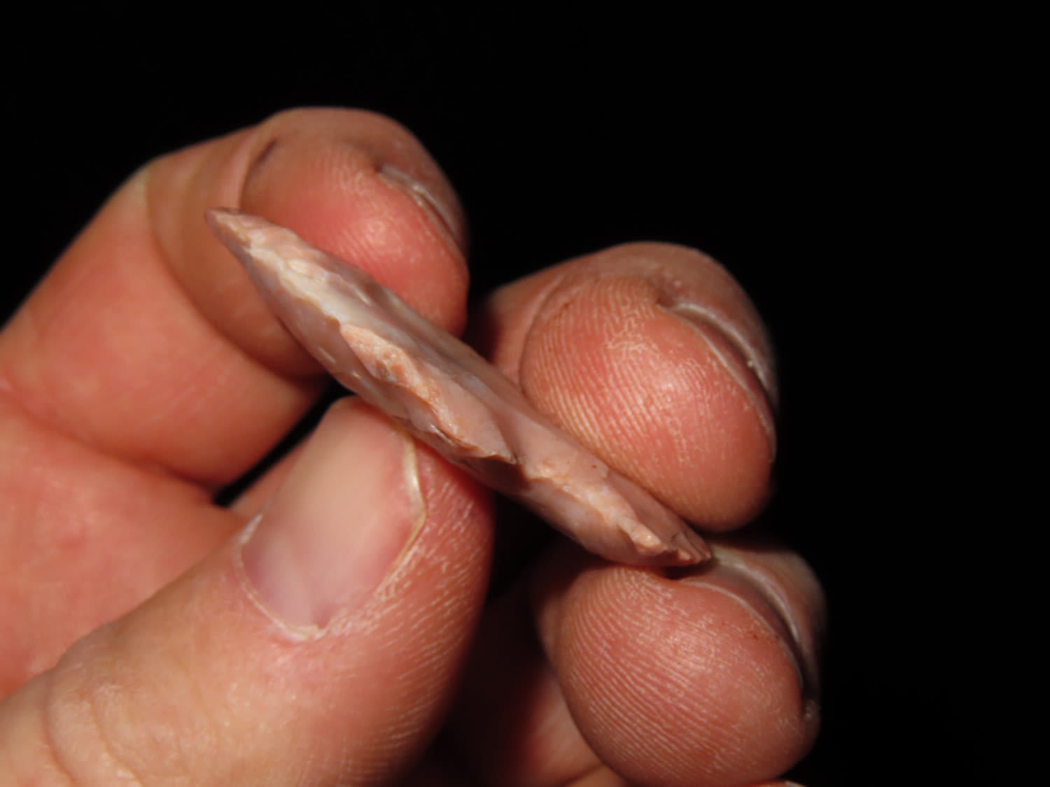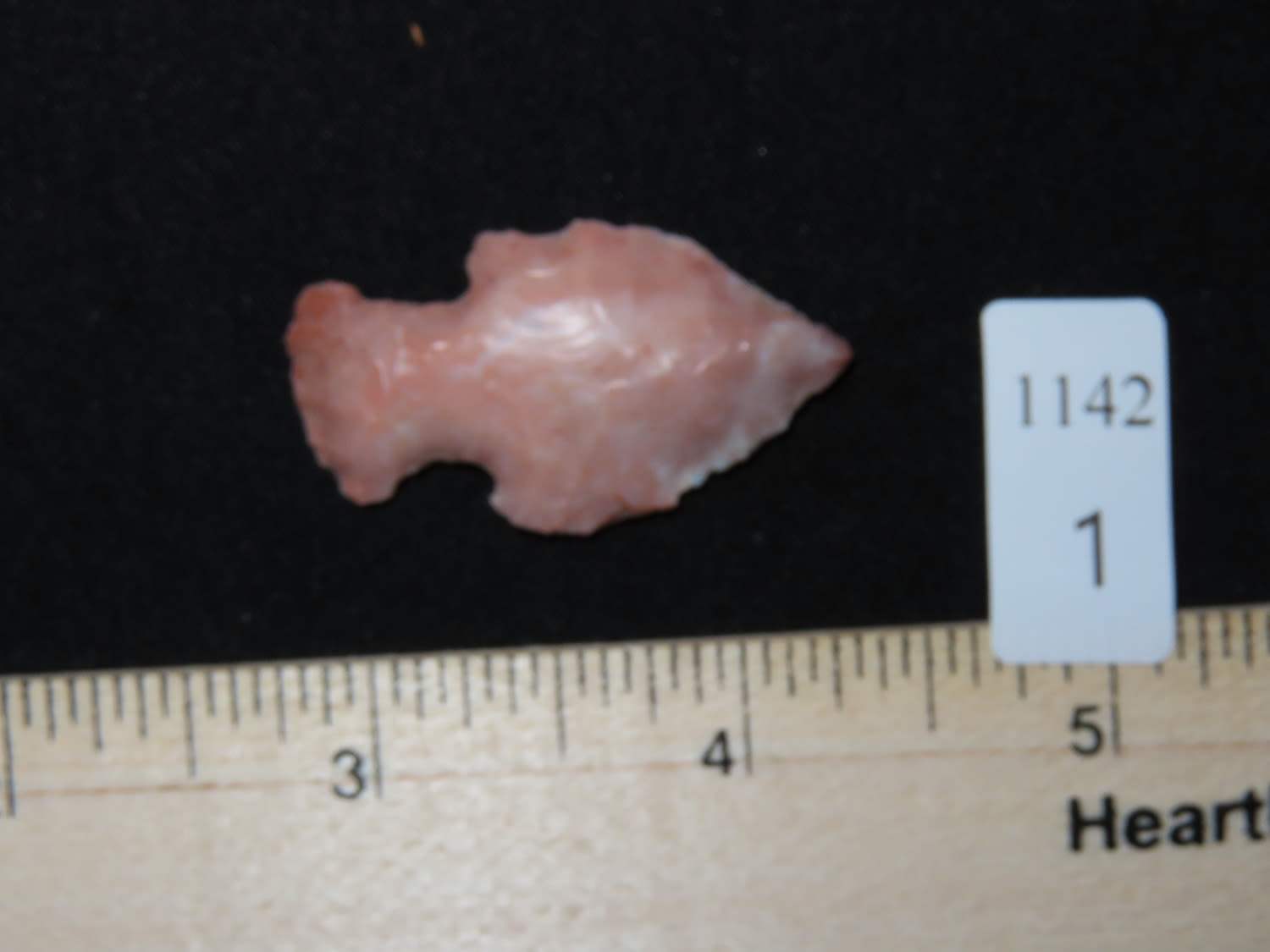 1 9/16″ COLORFUL TABLE ROCK / BOTTLENECK FOUND IN COOPER COUNTY MISSOURI BY EDWARD MILLER, INDIAN ARROWHEAD, ARTIFACT