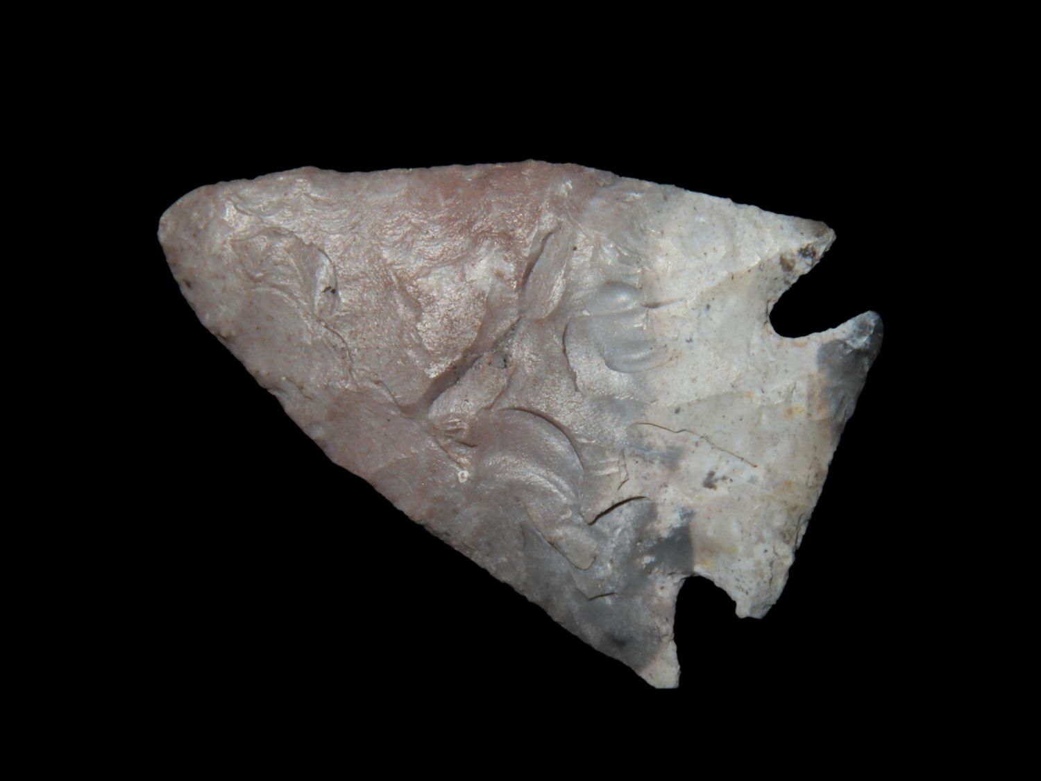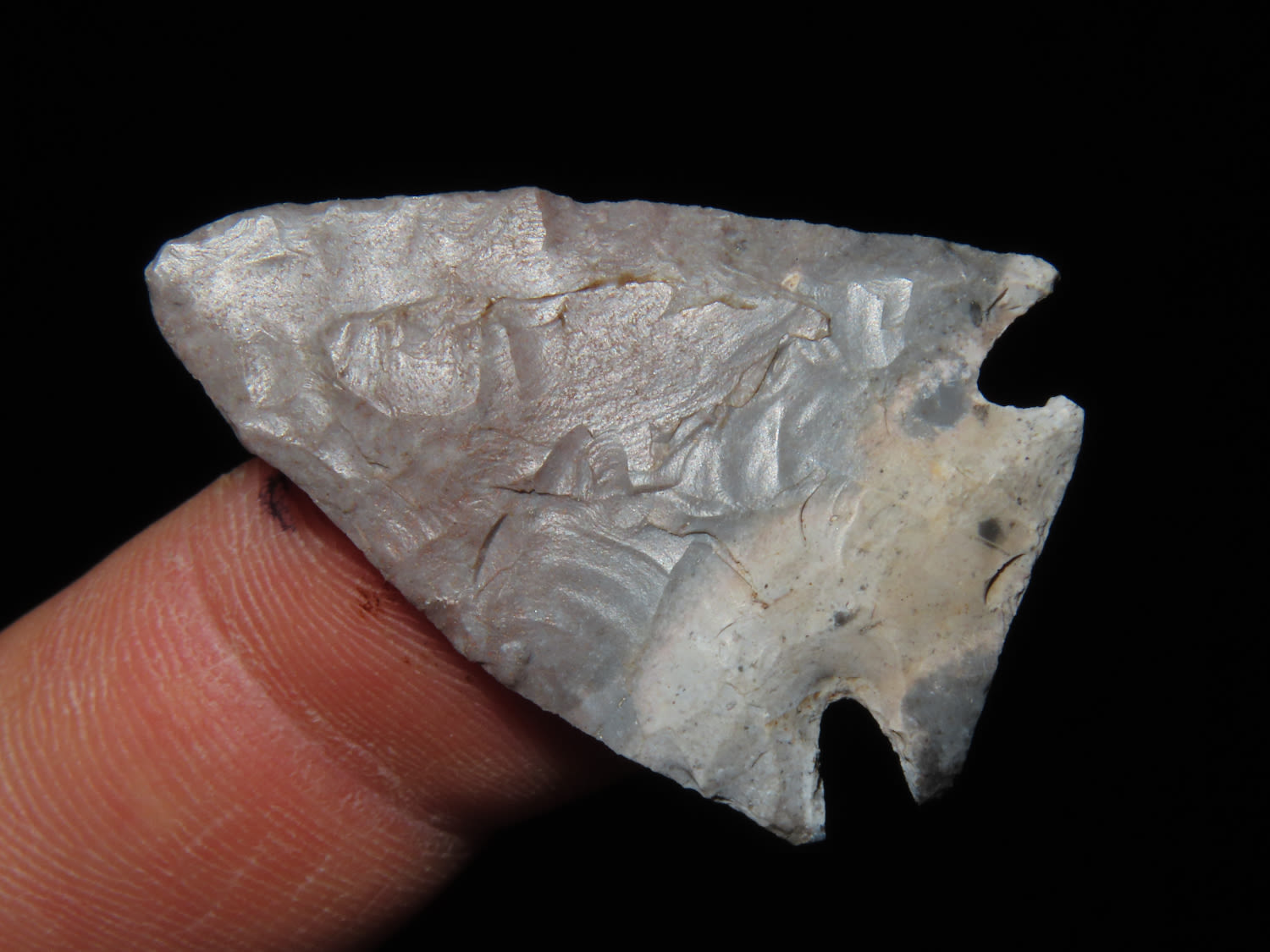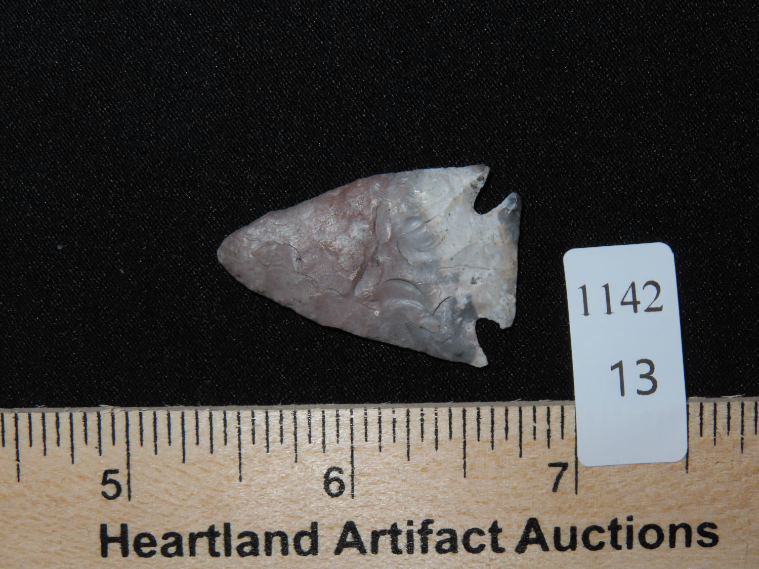 1 3/8″ VERY COLORFUL CORNER NOTCH FOUND IN COOPER COUNTY MISSOURI BY EDWARD MILLER, INDIAN ARROWHEAD, ARTIFACT
