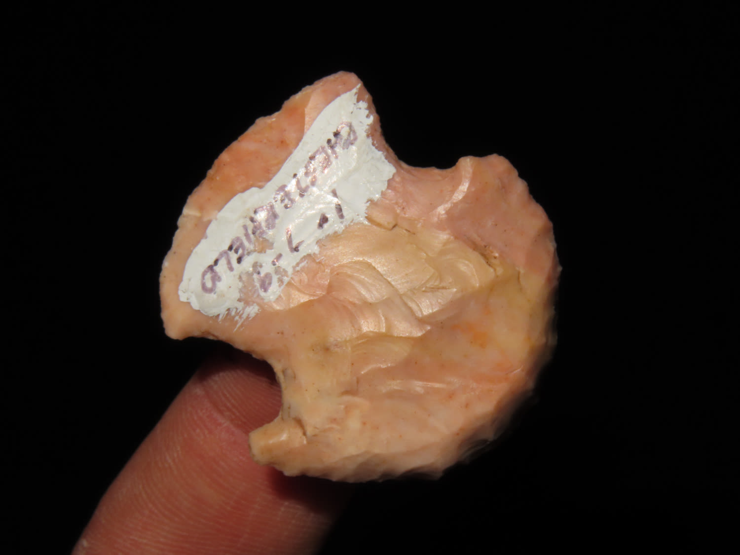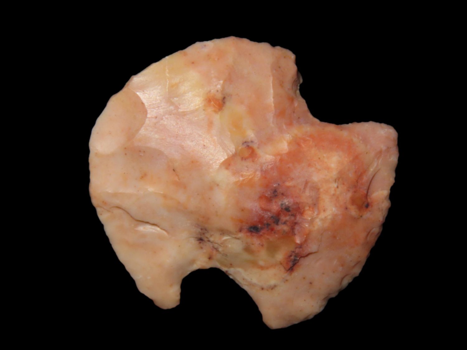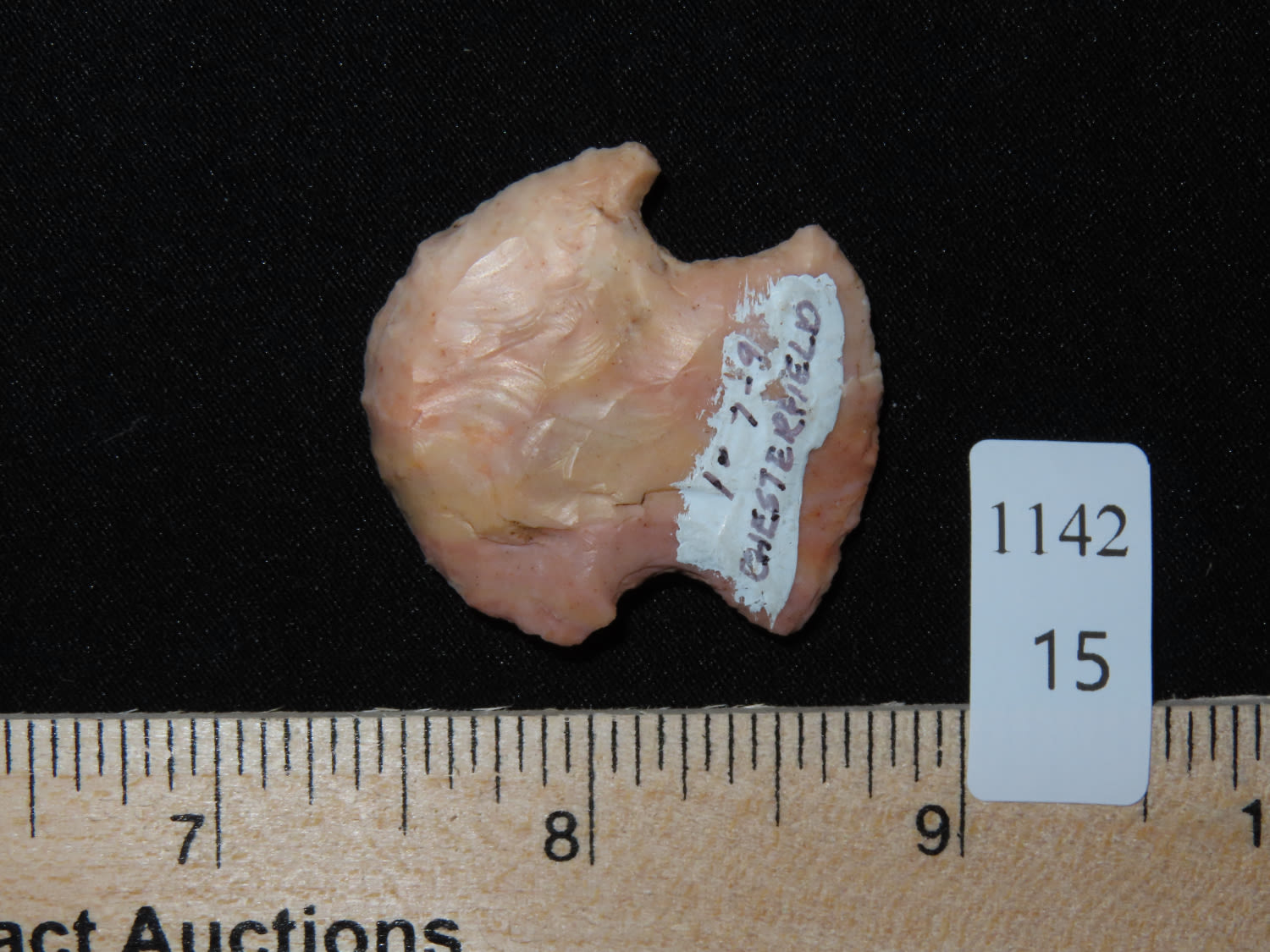 1 7/16″ COLORFUL HOPEWELL BLUNT / HAFTED SCRAPER FOUND NEAR CHESTERFIELD MISSOURI, INDIAN ARROWHEAD, ARTIFACT