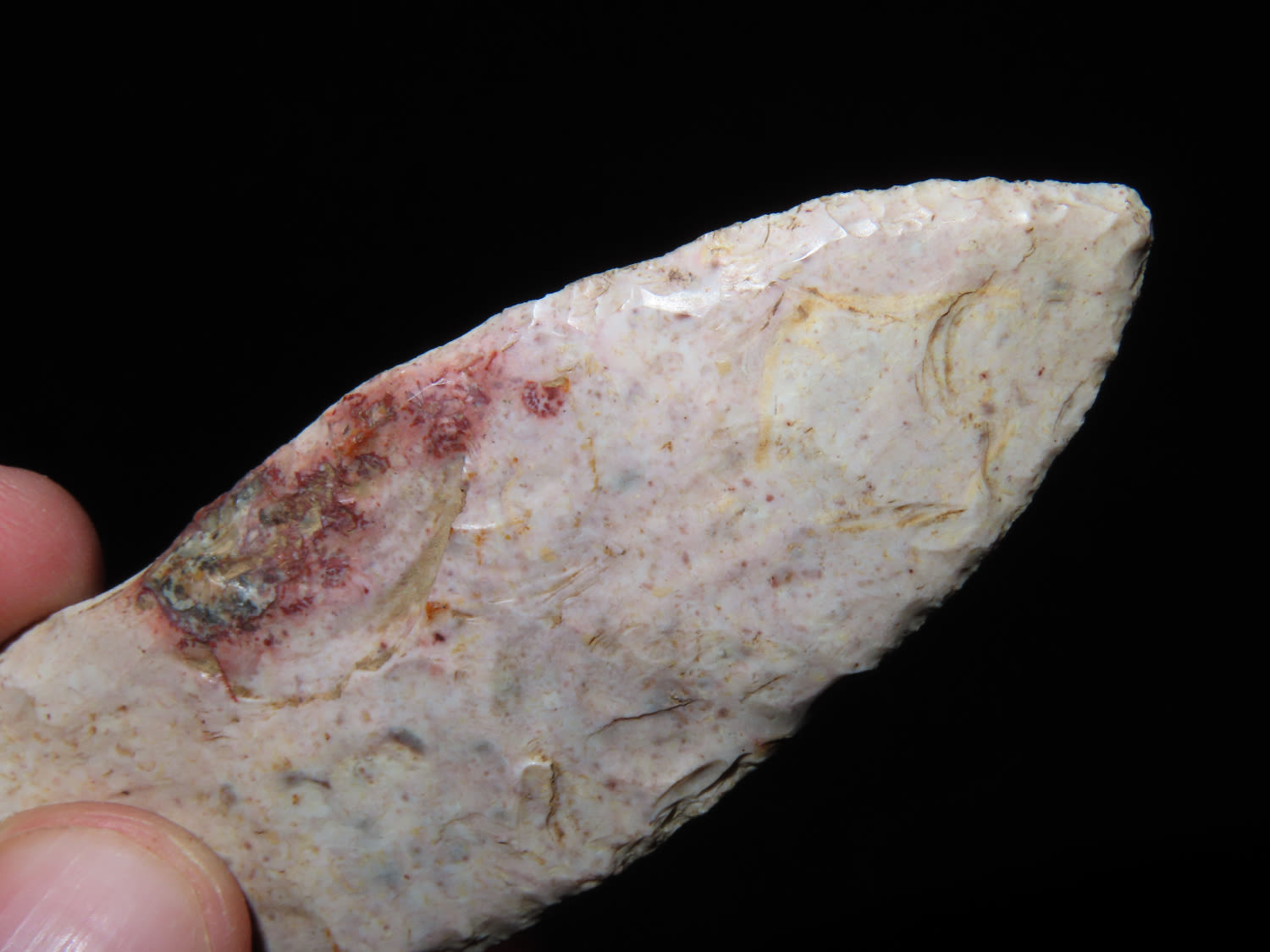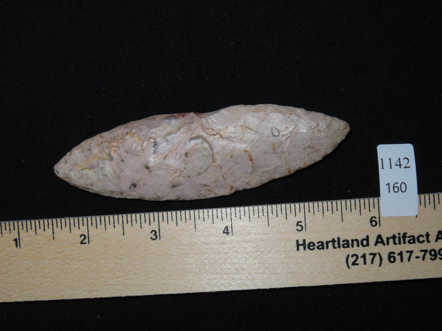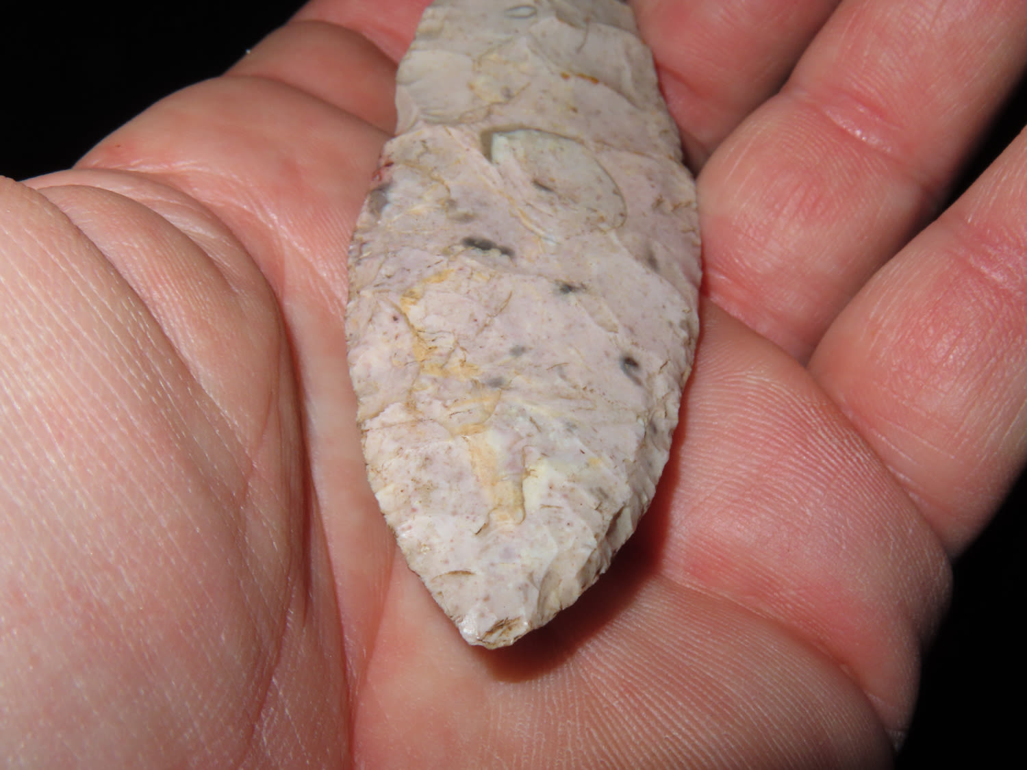 NICE THIN BIPOINT BLADE FOUND IN BENTON COUNTY MISSOURI, COLORFUL EXAMPLE, INDIAN ARROWHEAD, ARTIFACT