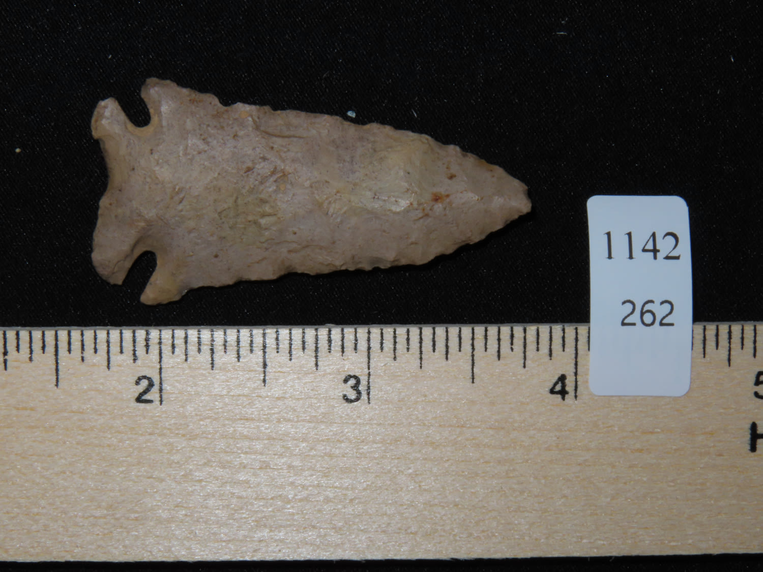 2 1/8″ NICE CLASSIC PINETREE FOUND IN MERCER COUNTY KENTUCKY, NICE WELL PATINATED EXAMPLE, INDIAN ARROWHEAD, ARTIFACT