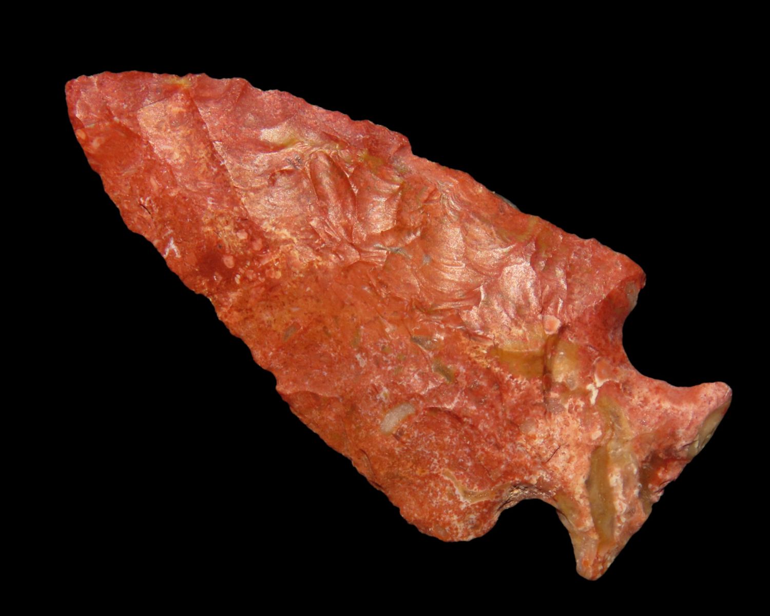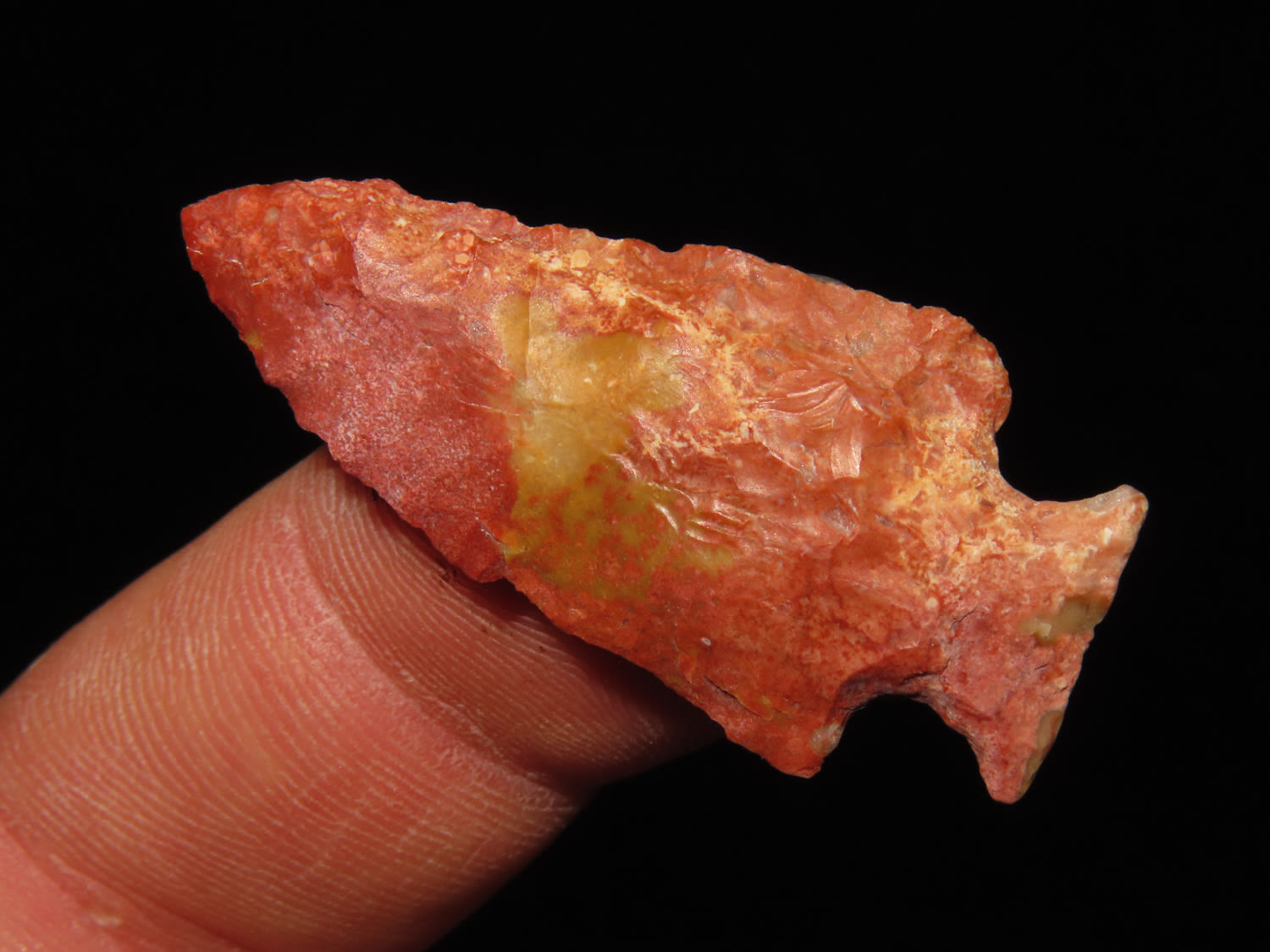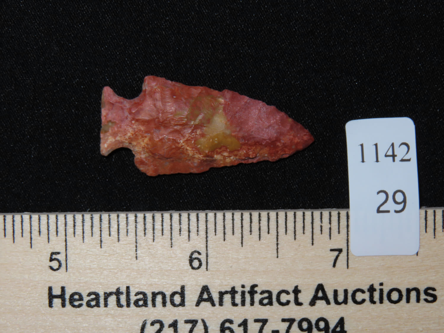 1 9/16″ VERY COLORFUL ARCHAIC CORNER NOTCH FOUND IN ADAMS COUNTY ILLINOIS, INDIAN ARROWHEAD, ARTIFACT