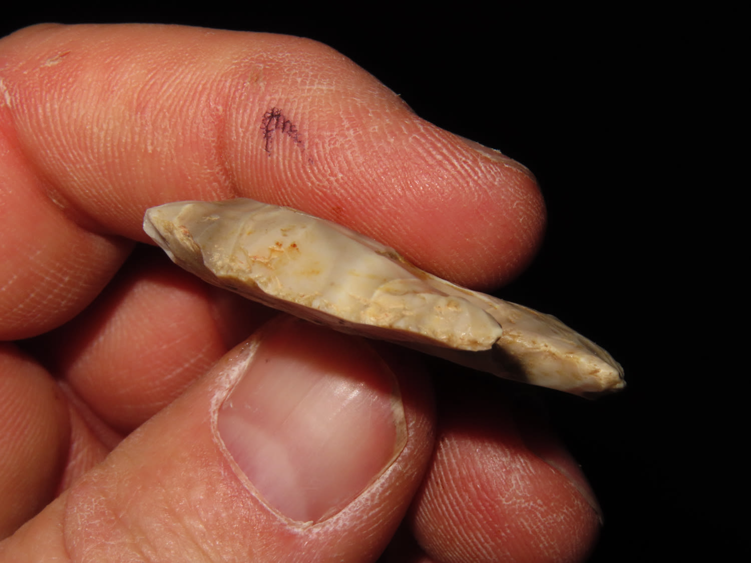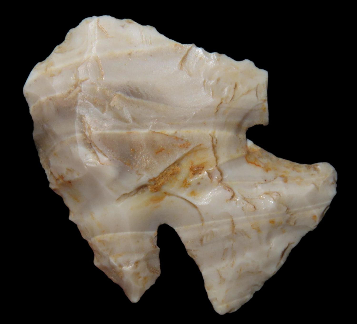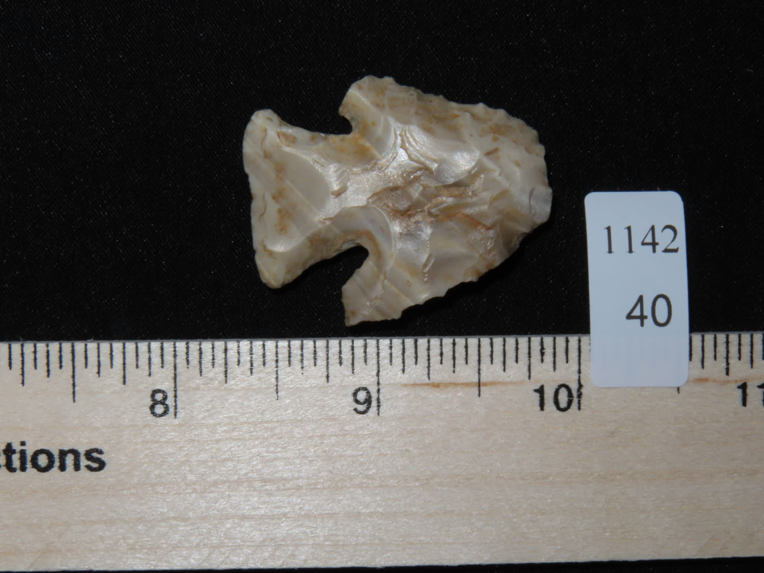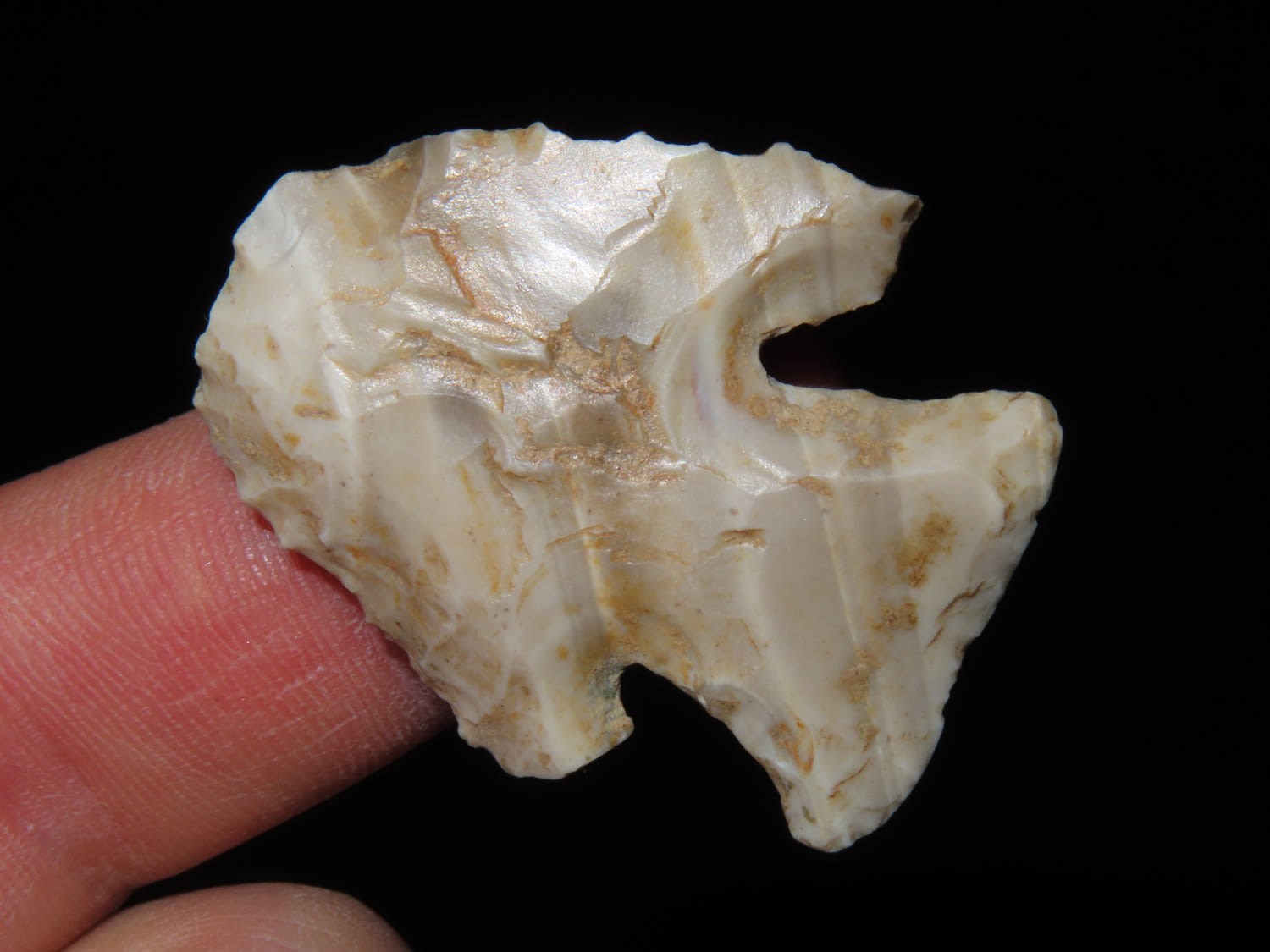 1 1/2″ COLORFUL MOZARKITE THEBES BLUNT / HAFTED SCRAPER FOUND IN LINCOLN COUNTY MISSOURI, INDIAN ARTIFACT, ARROWHEAD