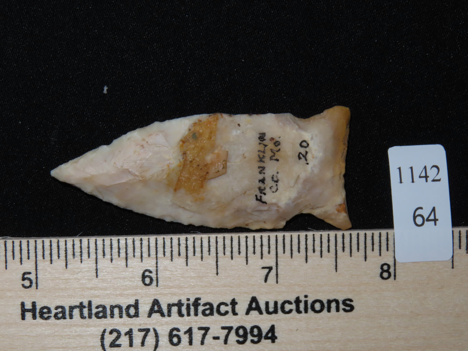2 9/16″ WELL FLAKED STILLWELL FOUND IN FRANKLIN COUNTY MISSOURI, VERY THIN AND NEDDLE TIPPED EXAMPLE, INDIAN ARROWHEAD, ARTIFACT