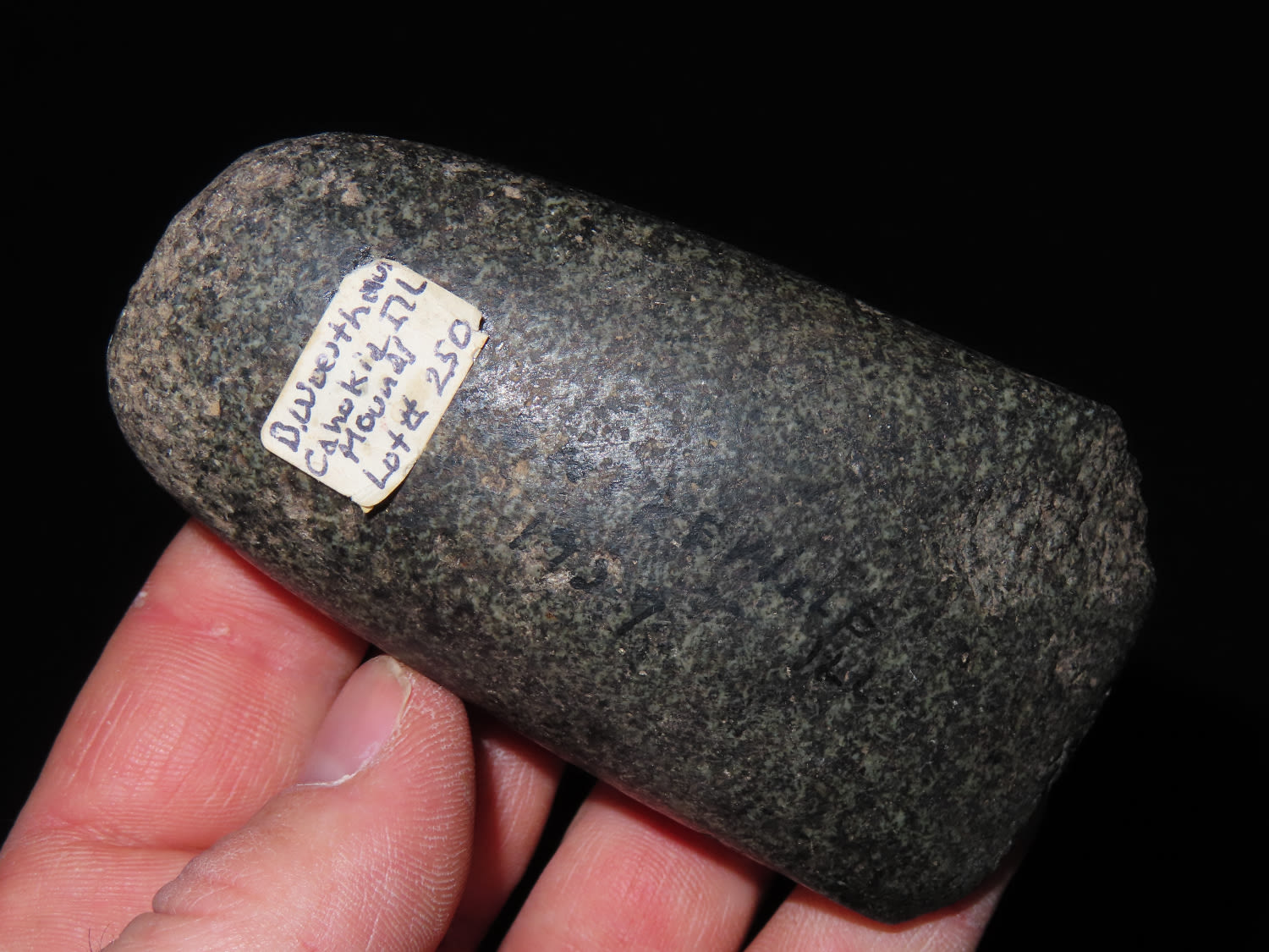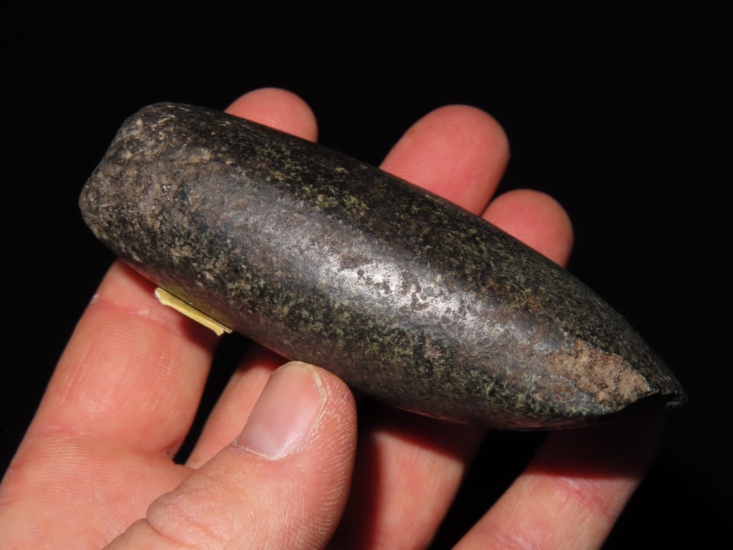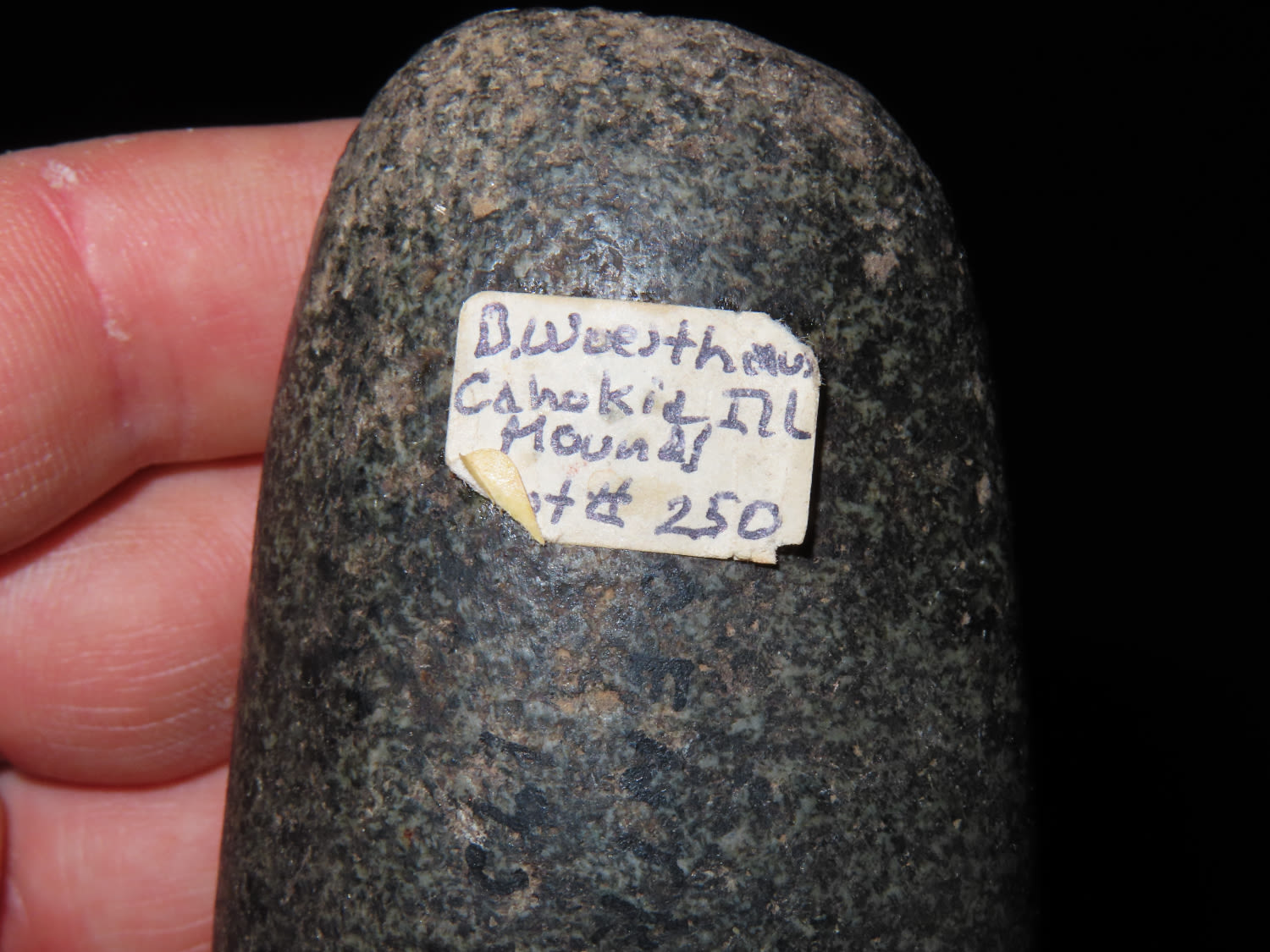3 7/8″ NICE HARDSTONE CELT FOUND NEAR CAHOKIA BY B. WESTHOUSE IN 1929 IN CENTREVILLE ILLINOIS, ST CLAIR COUNTY, WELL SHAPED & NICELY POLISHED