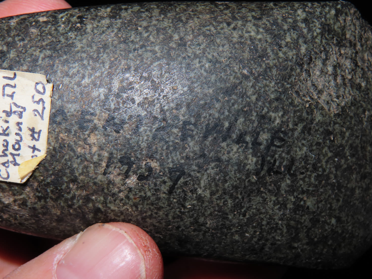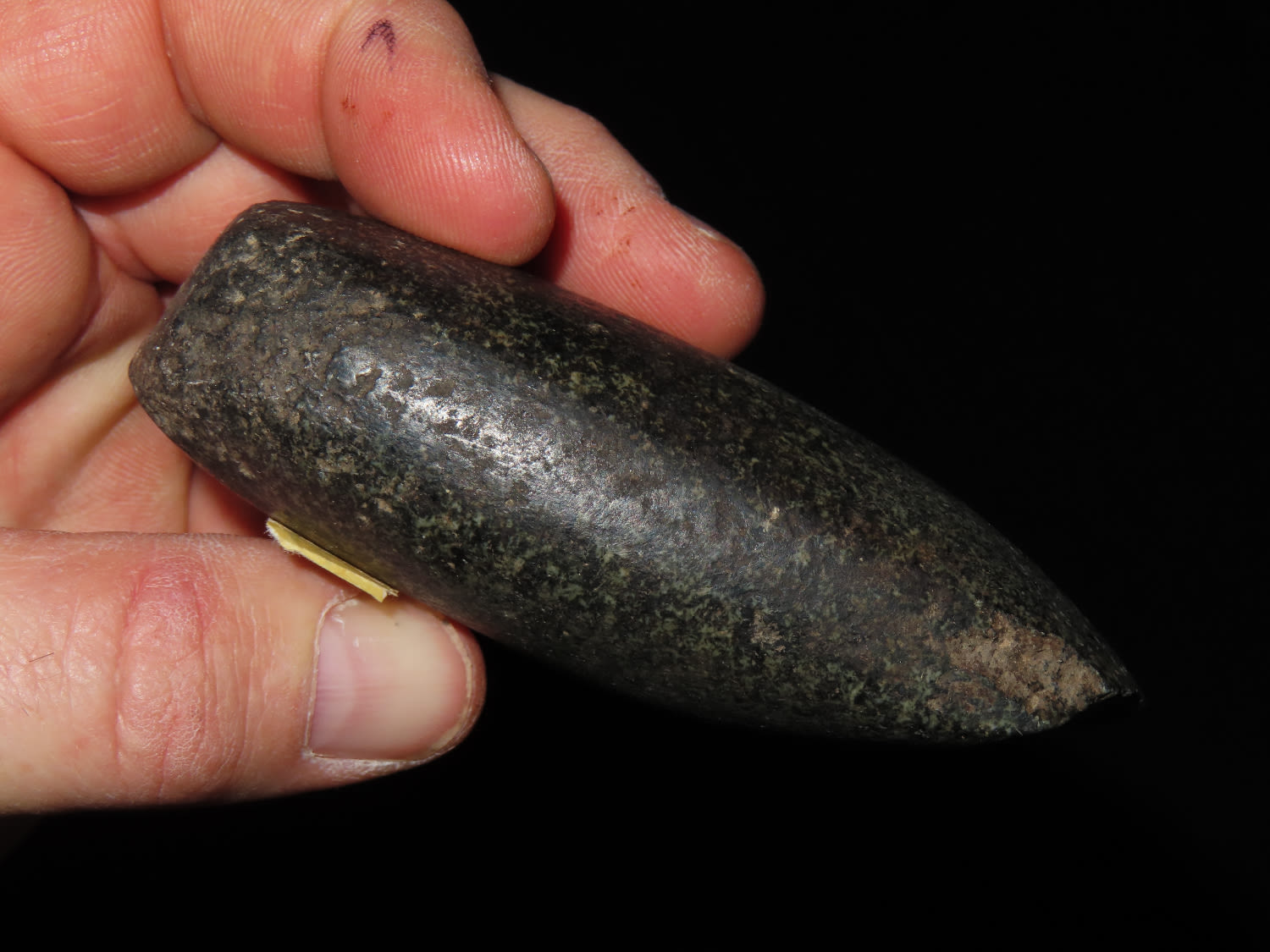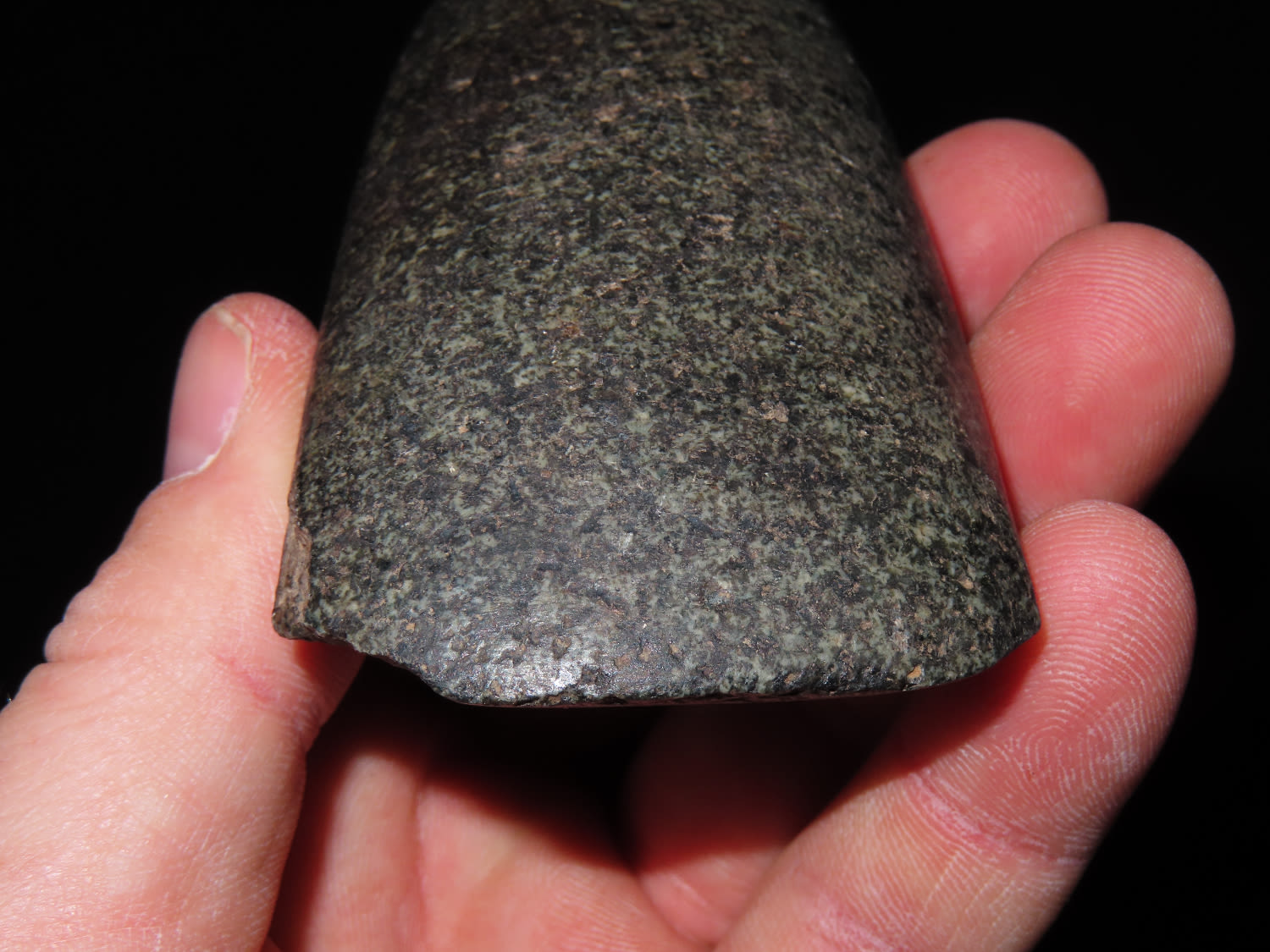 3 7/8″ NICE HARDSTONE CELT FOUND NEAR CAHOKIA BY B. WESTHOUSE IN 1929 IN CENTREVILLE ILLINOIS, ST CLAIR COUNTY, WELL SHAPED & NICELY POLISHED