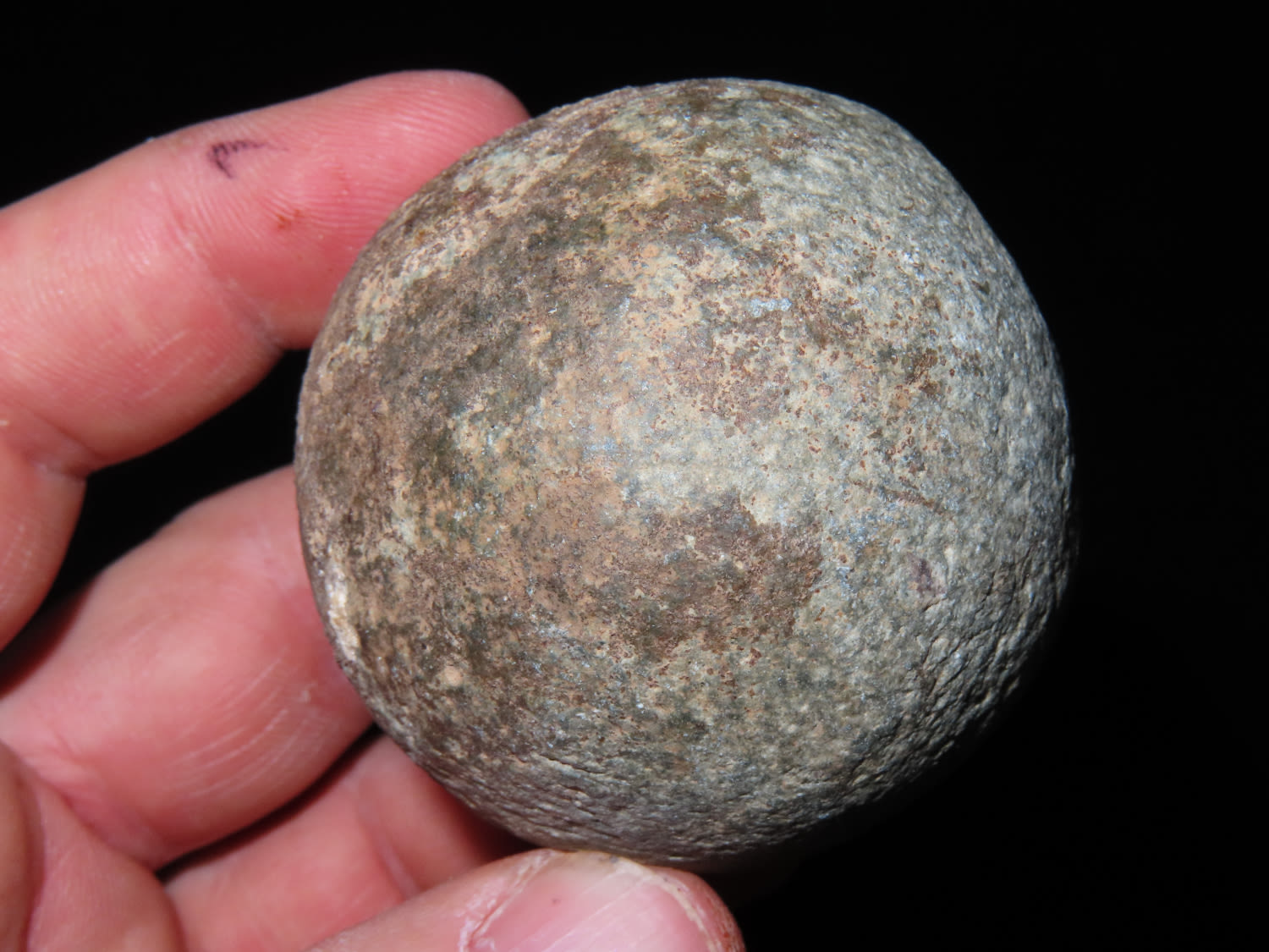 NICE HARDSTONE GAME BALL FOUND IN GALLATIN COUNTY ILLINOIS, VERY NICE SYMMETRICAL WELL SHAPED EXAMPLE