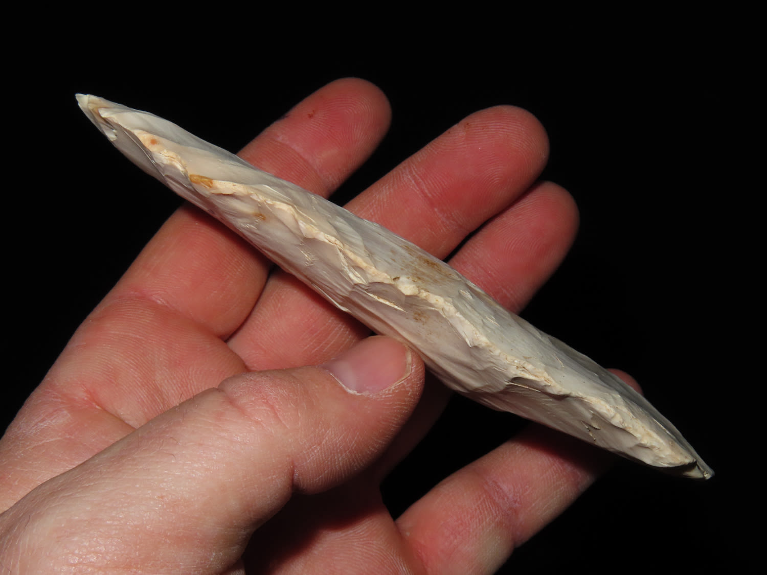 5 1/8″ AMAZING HOPEWELL BLADE FOUND AT THE SNYDER SITE IN CALHOUN COUNTY ILLINOIS BY WAYNE CROW IN THE 1950’S, #2 OF 5 FROM CACHE