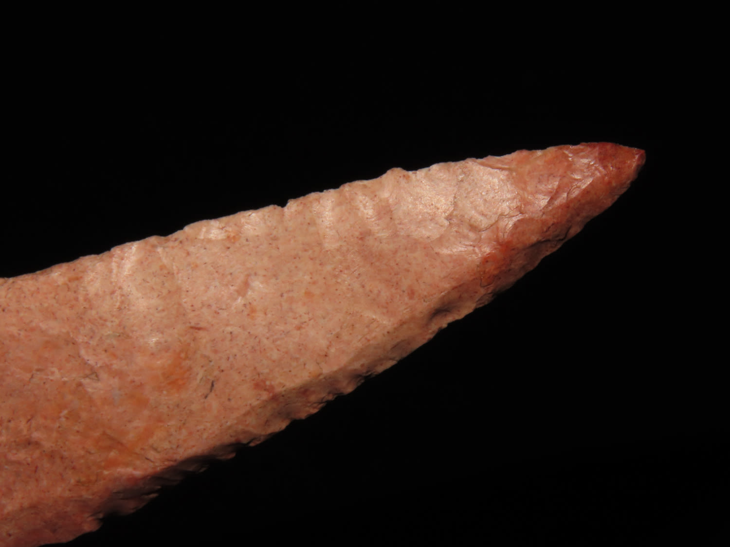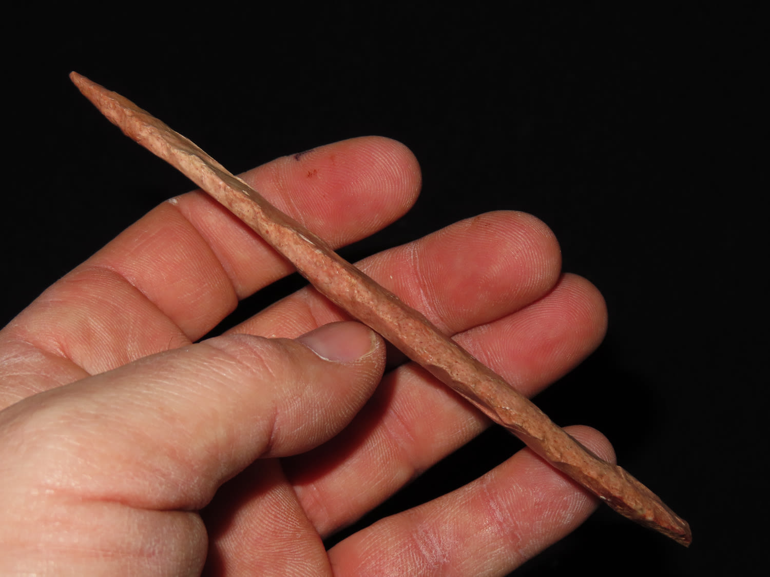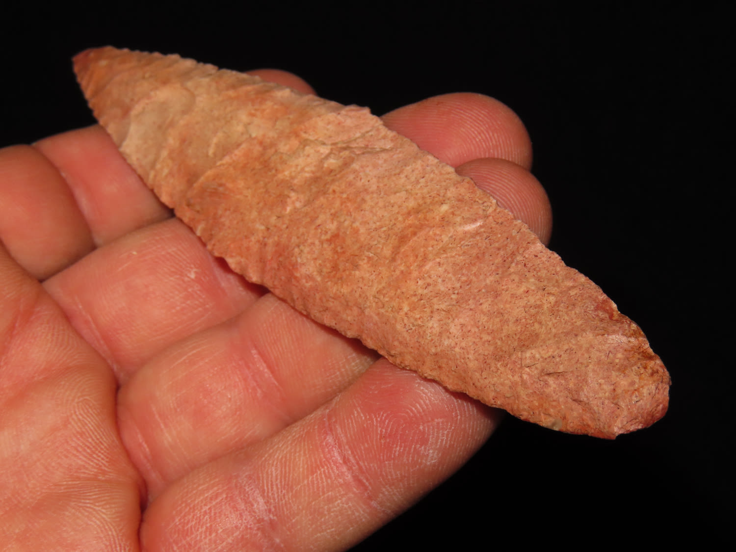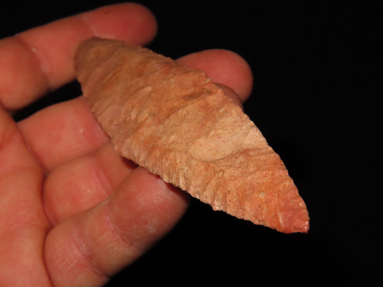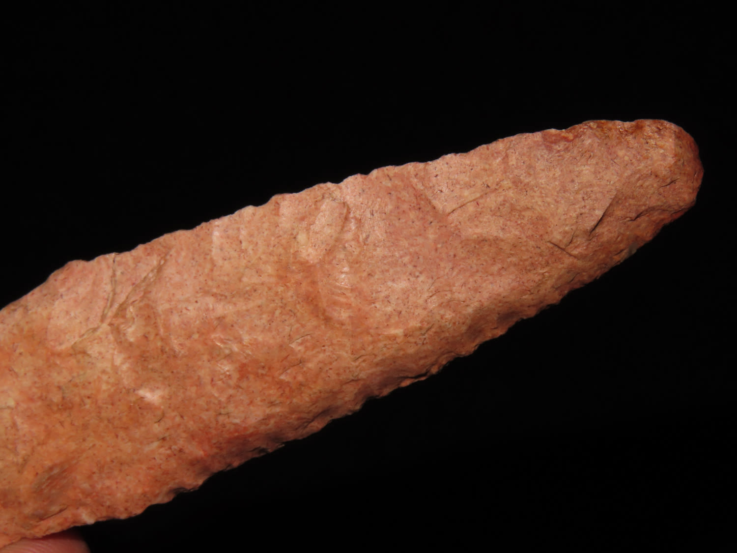 5 3/8″ COLORFUL 4-BEVEL HARAHEY KNIFE, TOM DAVIS COA, FOUND IN GREENFIELD ILLINOIS, EX FREDRICK ABEL, PICTURED IN WHOS WHO #10 ON PAGE 11