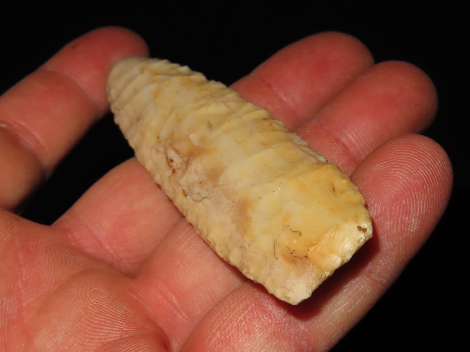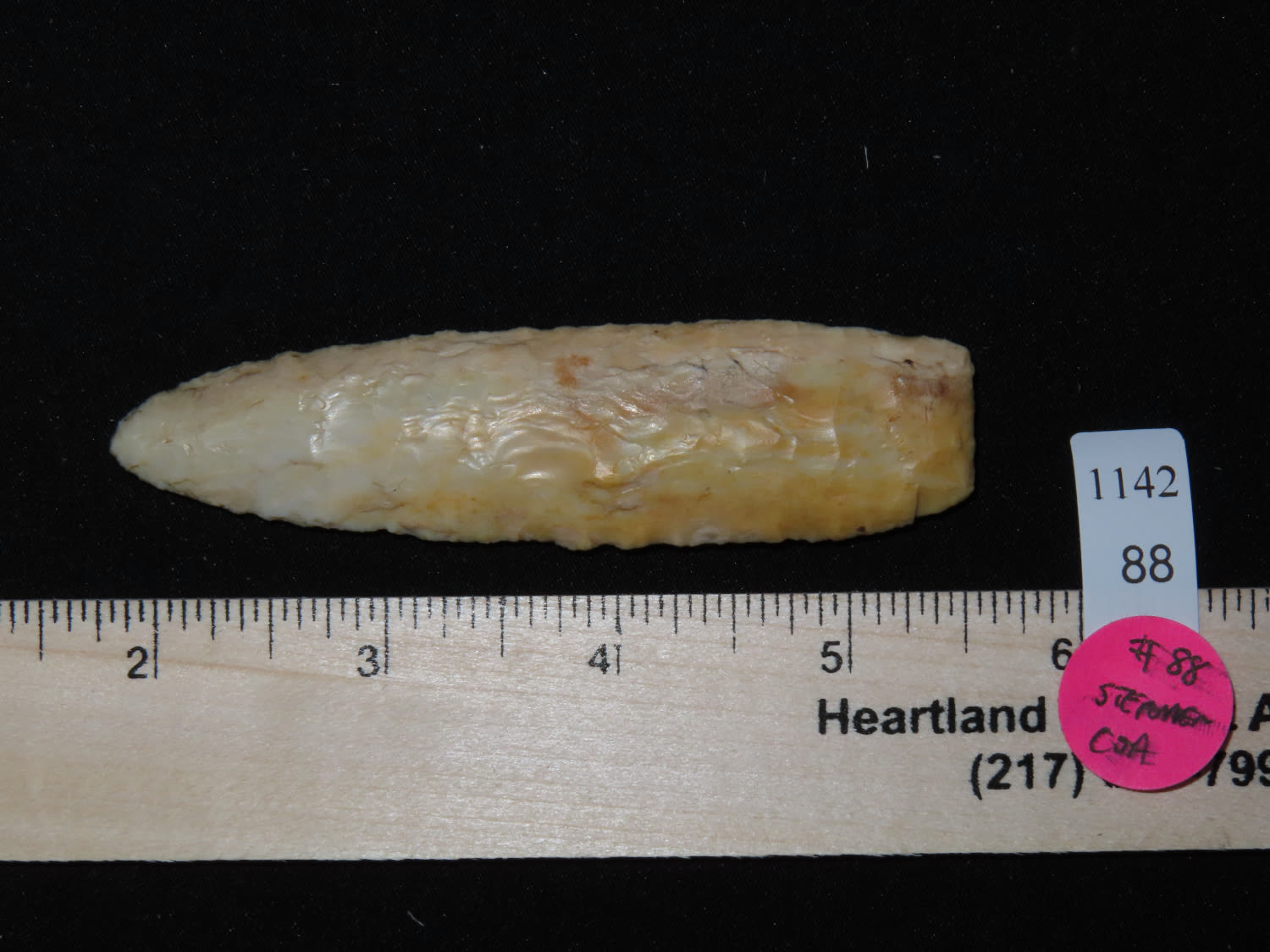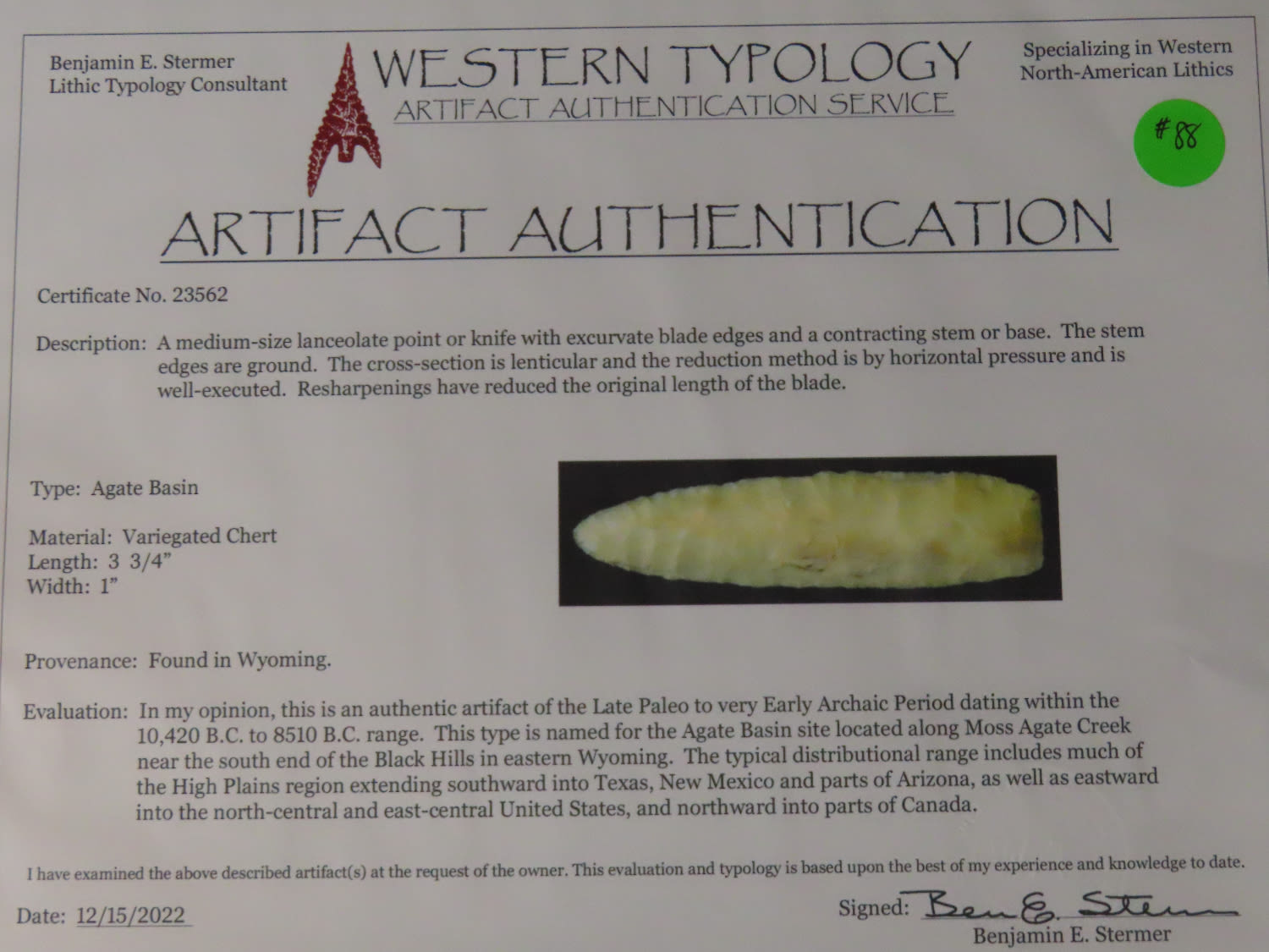 3 3/4″ COLORFUL AGATE BASIN / EDEN STERMER COA, FOUND IN WYOMING, VERY NICE FLAKING AND GREAT COLOR