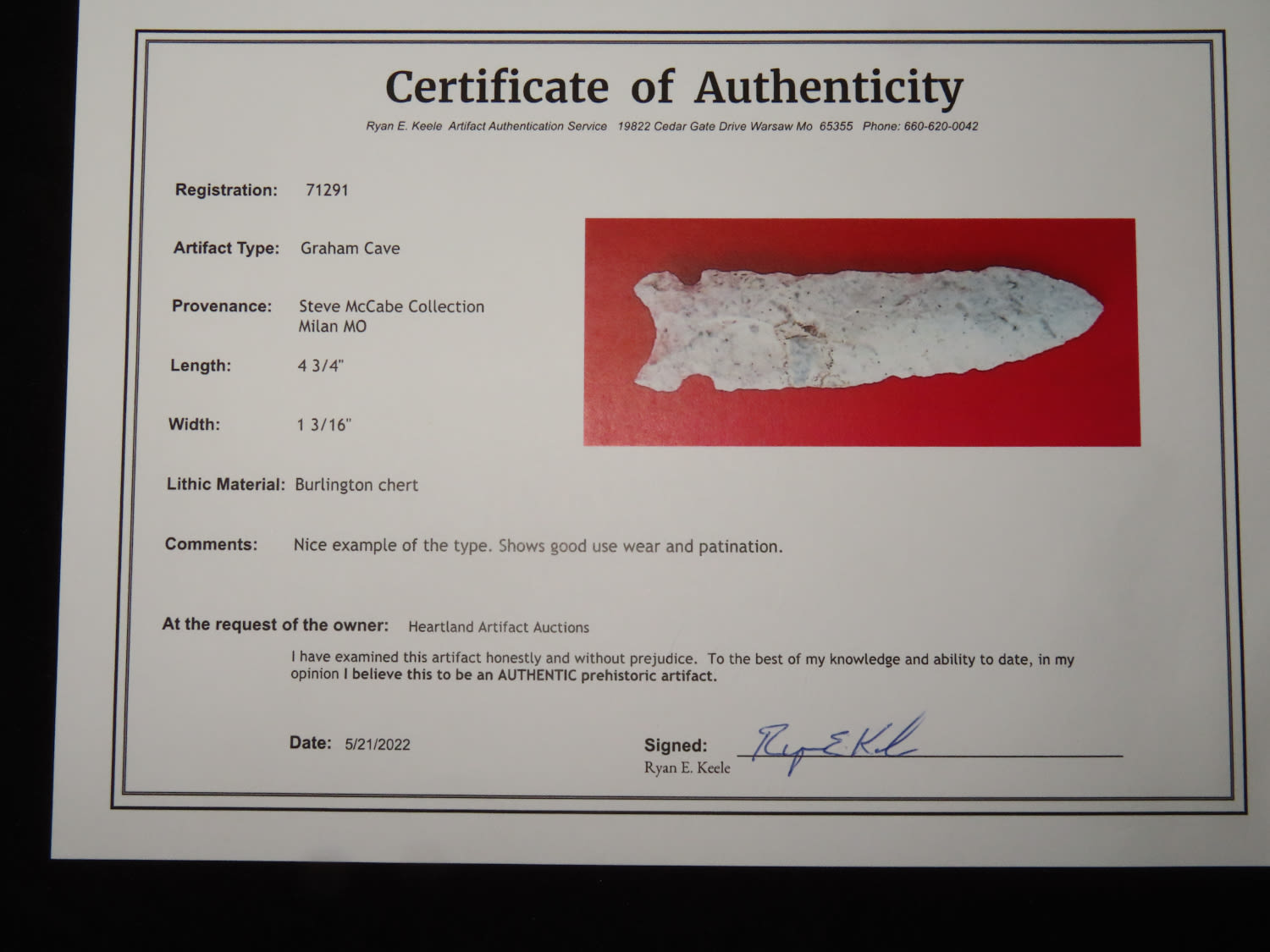 4 3/4″ Graham Cave, Keele COA, Ex Steve McCabe Collection Sullivan Co, Milan, Missouri