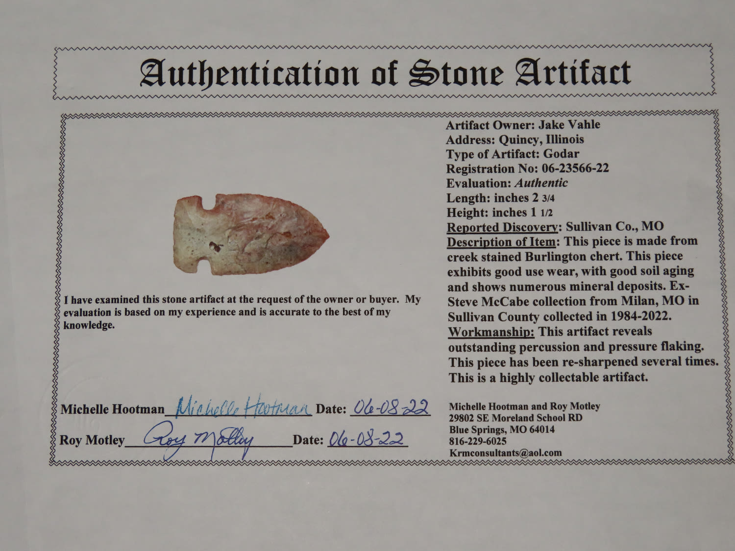 2 3/4″ Godar, Motley COA, Expertly Flaked and extremely Thin, Ex Steve McCabe Collection, Milan, Missouri, Sullivan Co.