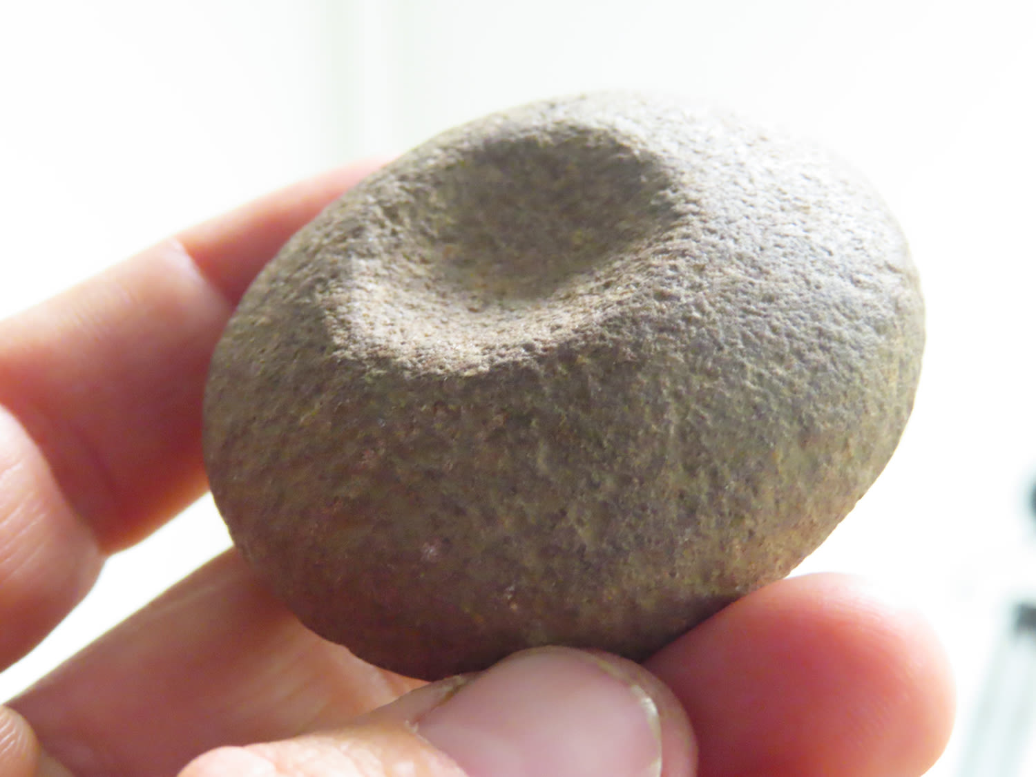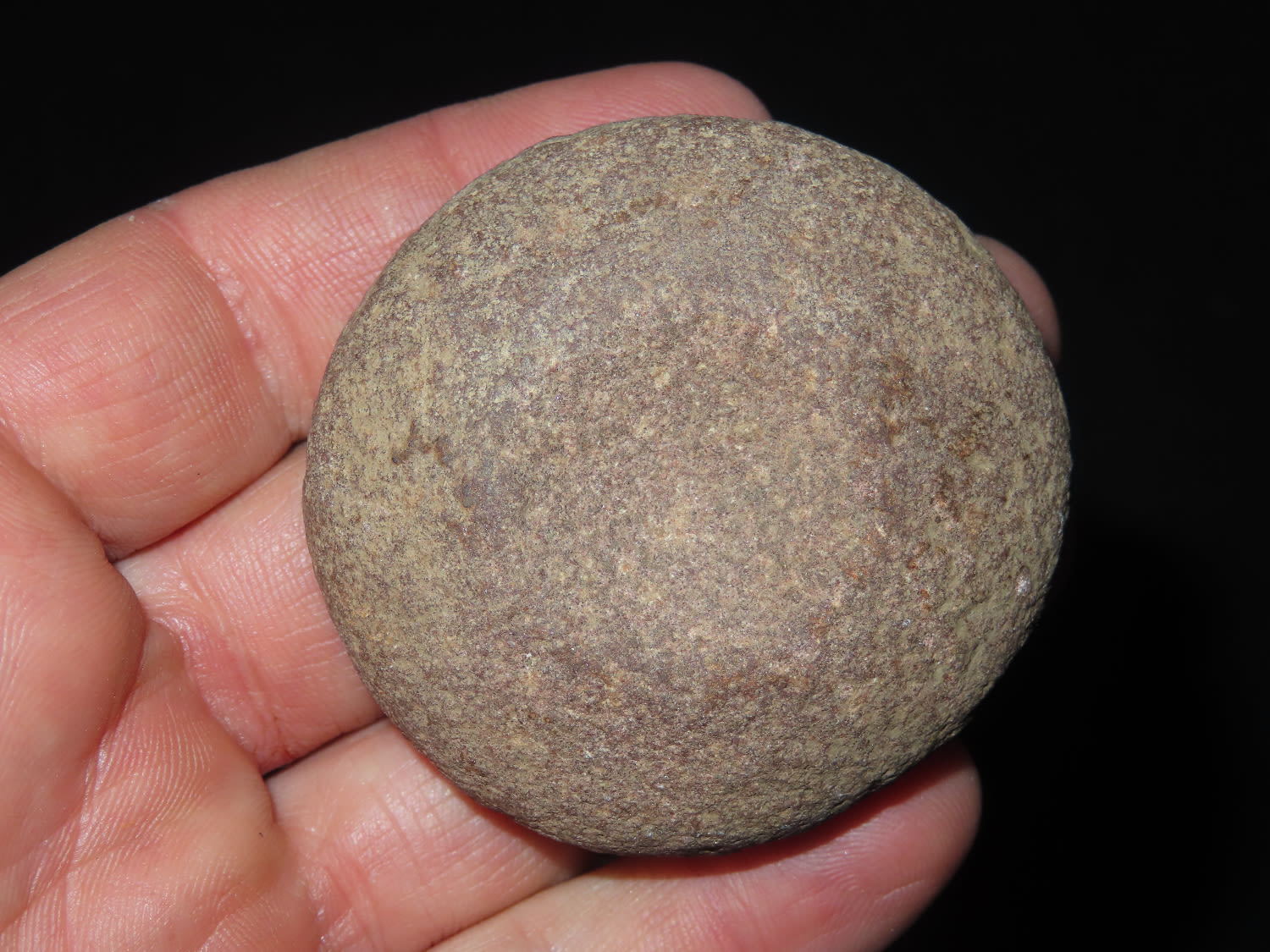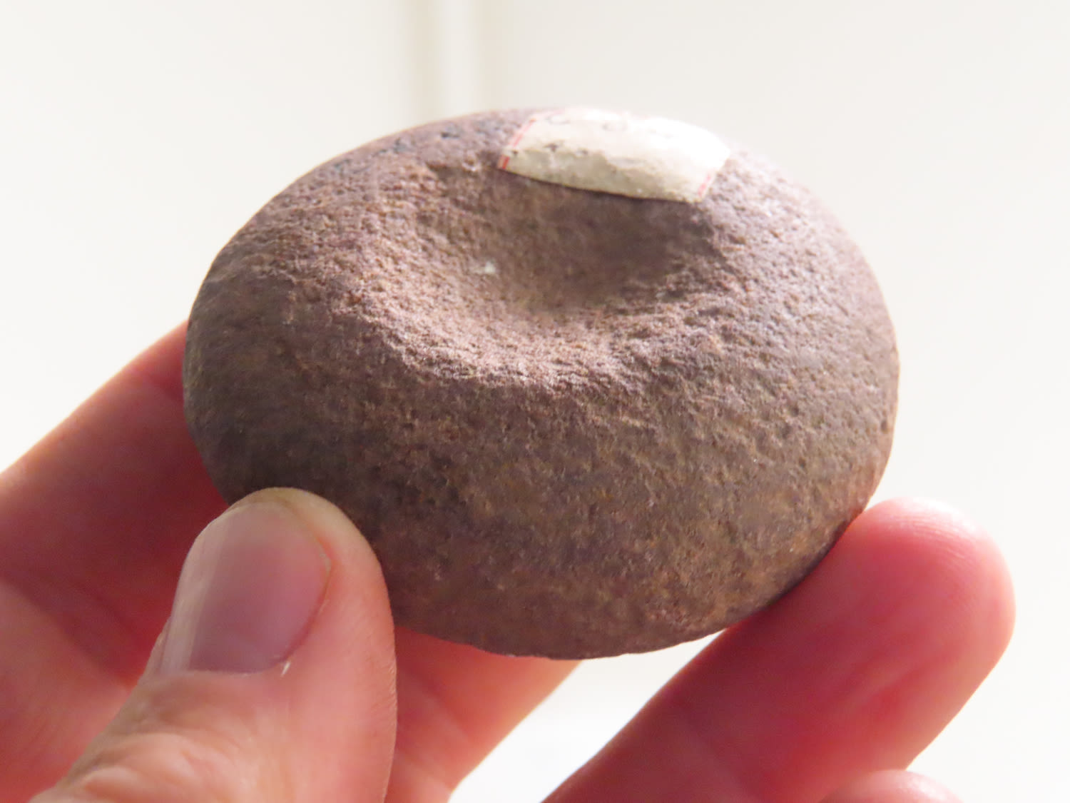 2 1/8″ Discoidal, Cass County Illinois made from Maroon Quartzite.