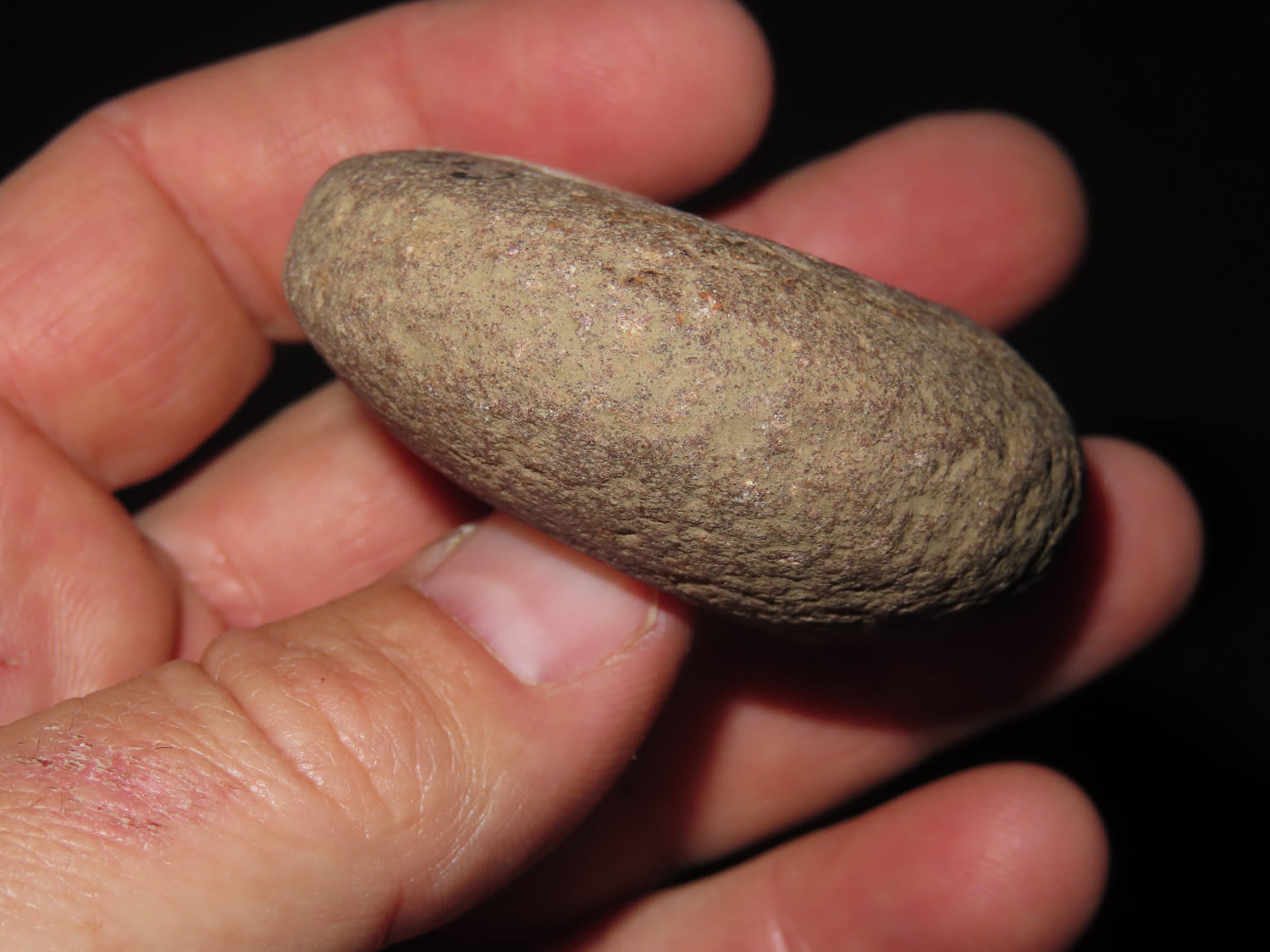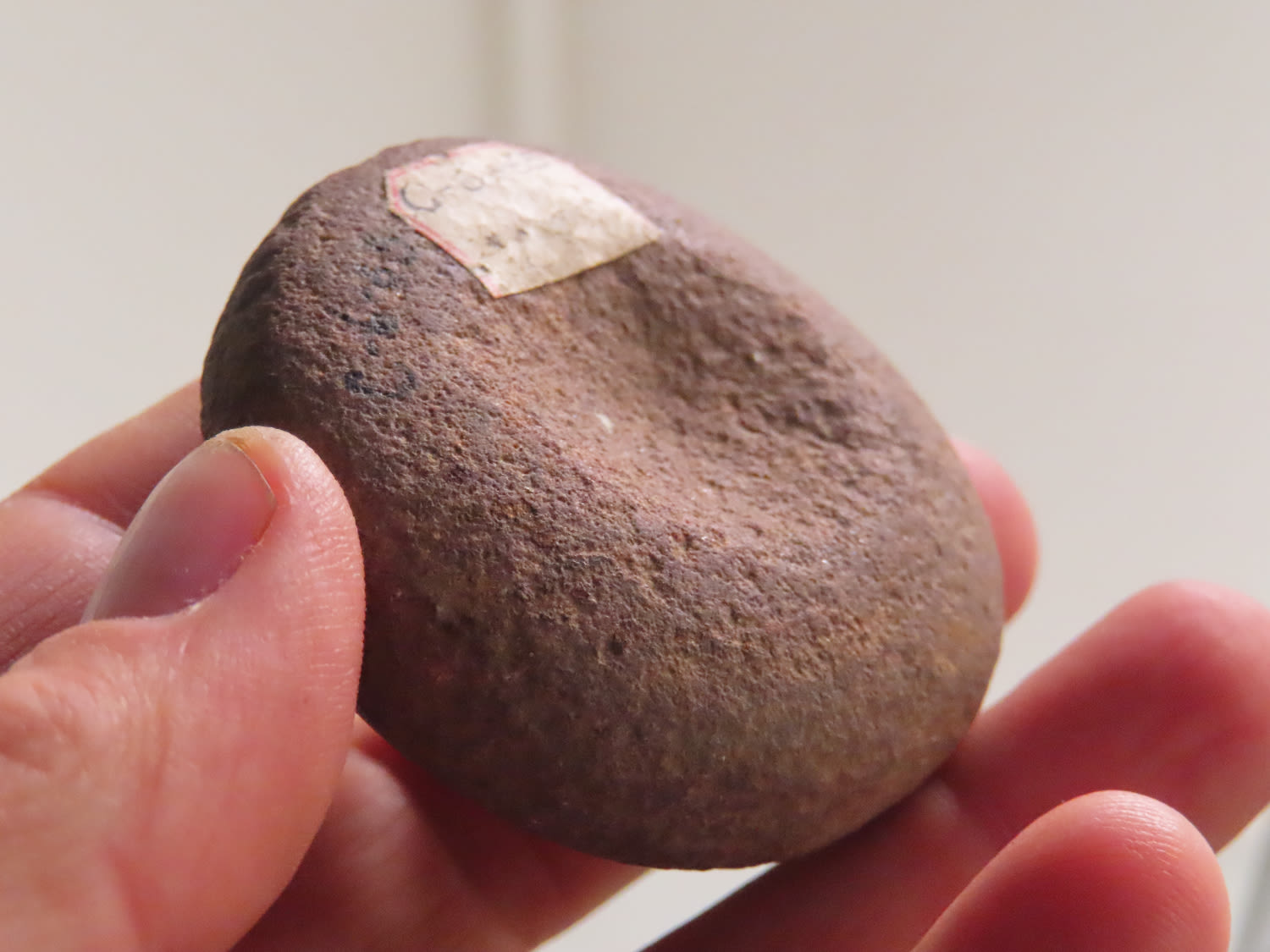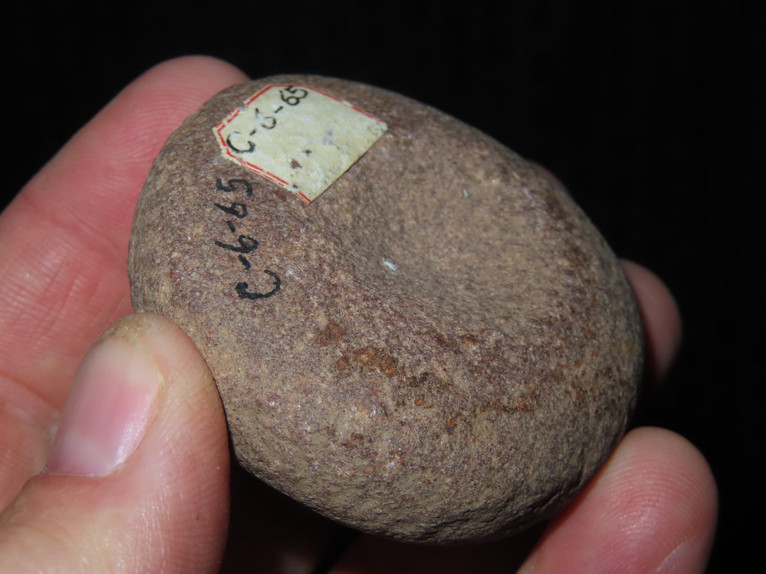 2 1/8″ Discoidal, Cass County Illinois made from Maroon Quartzite.