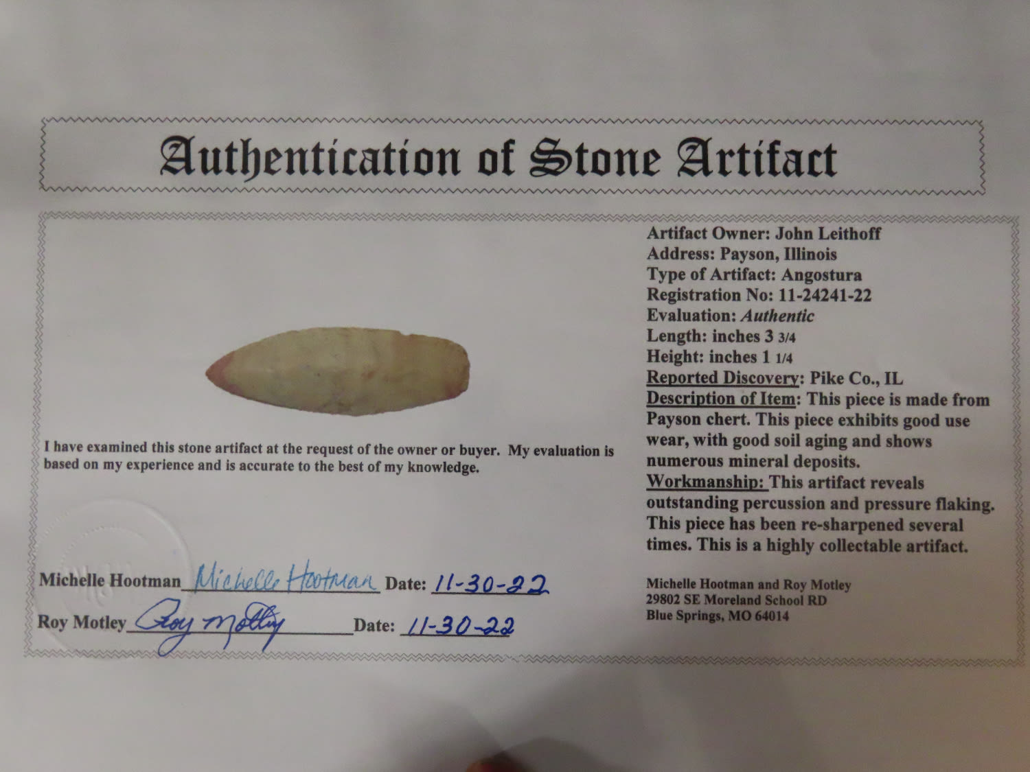 3 3/4″ Angostura, Motley COA, found in Pike Co Illinois,