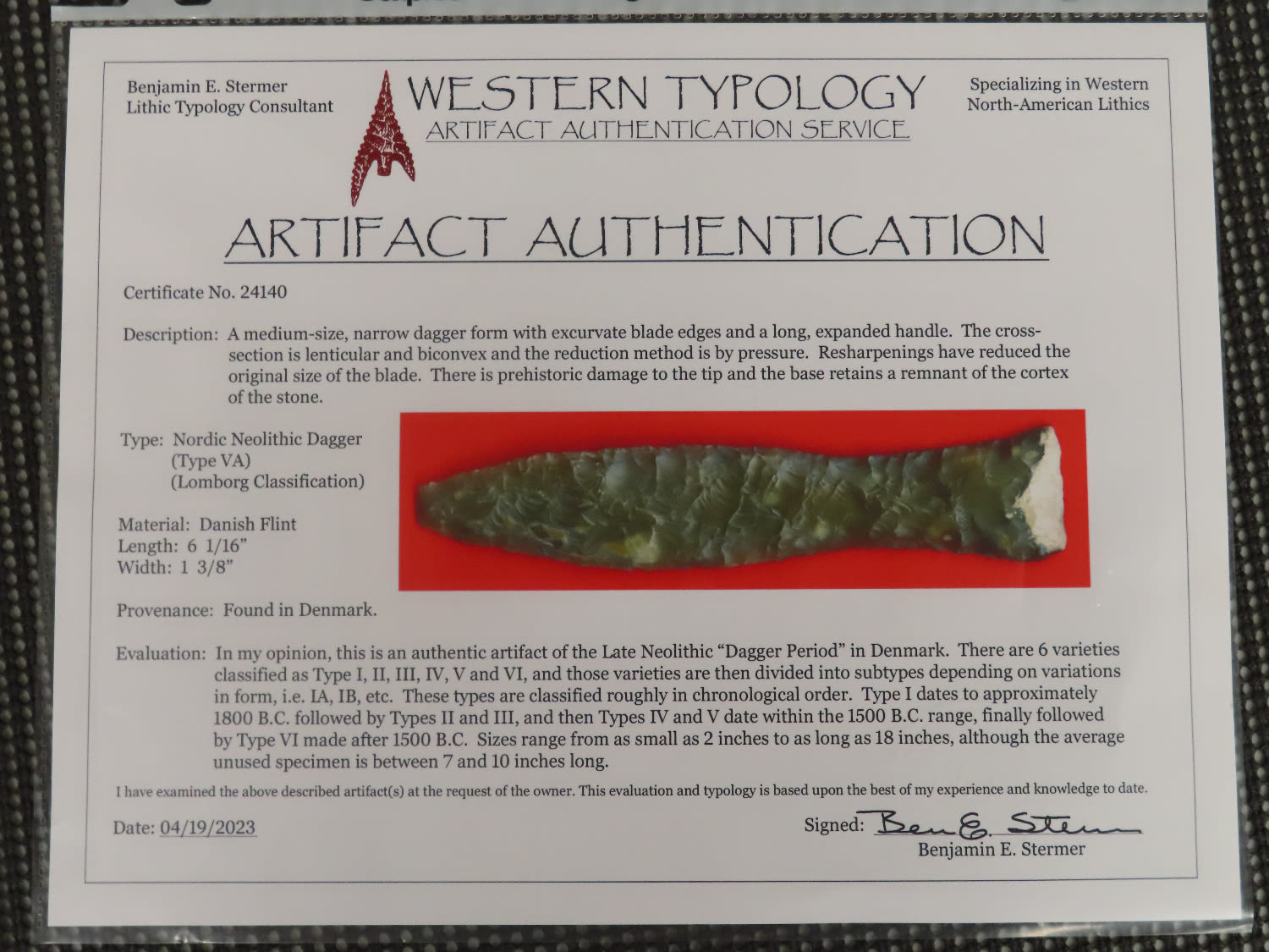 6 1/16" Nordic Neolithic Dagger, Stermer COA, found in Denmark