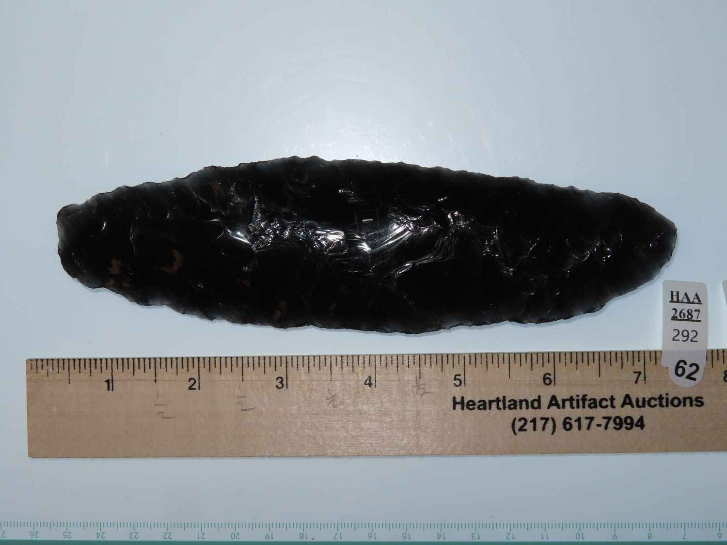 6 13/16" Obsidian Paleo Transitional Blade from Oregon Ex Jay Robinson Ex Dean Thompson --Rouge River--