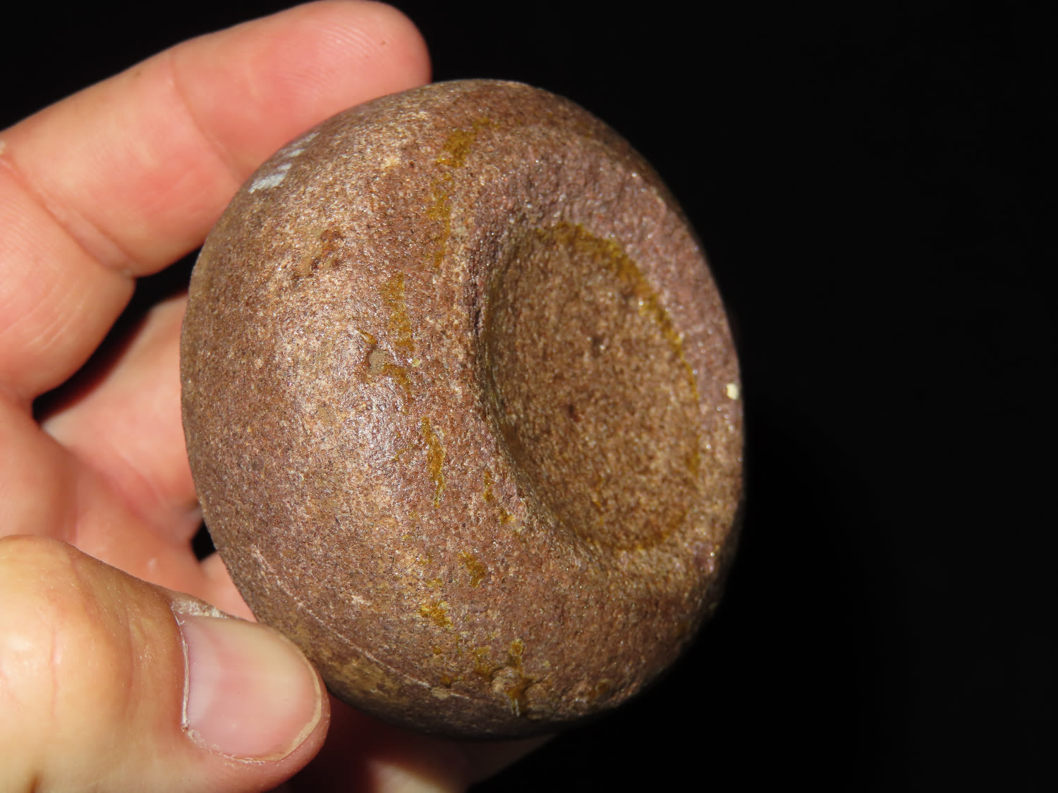 2 5/8″ Double cupped Discoidal from Henry County, Indiana Ex Little Collection. Some removeable adhesive is on 1 side. Fine Finish!