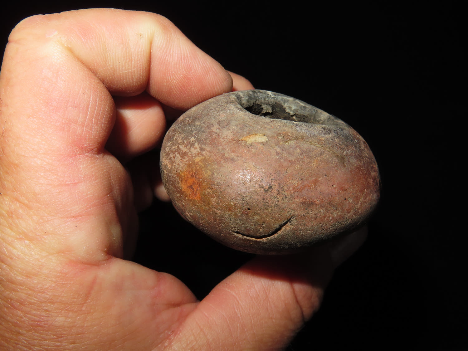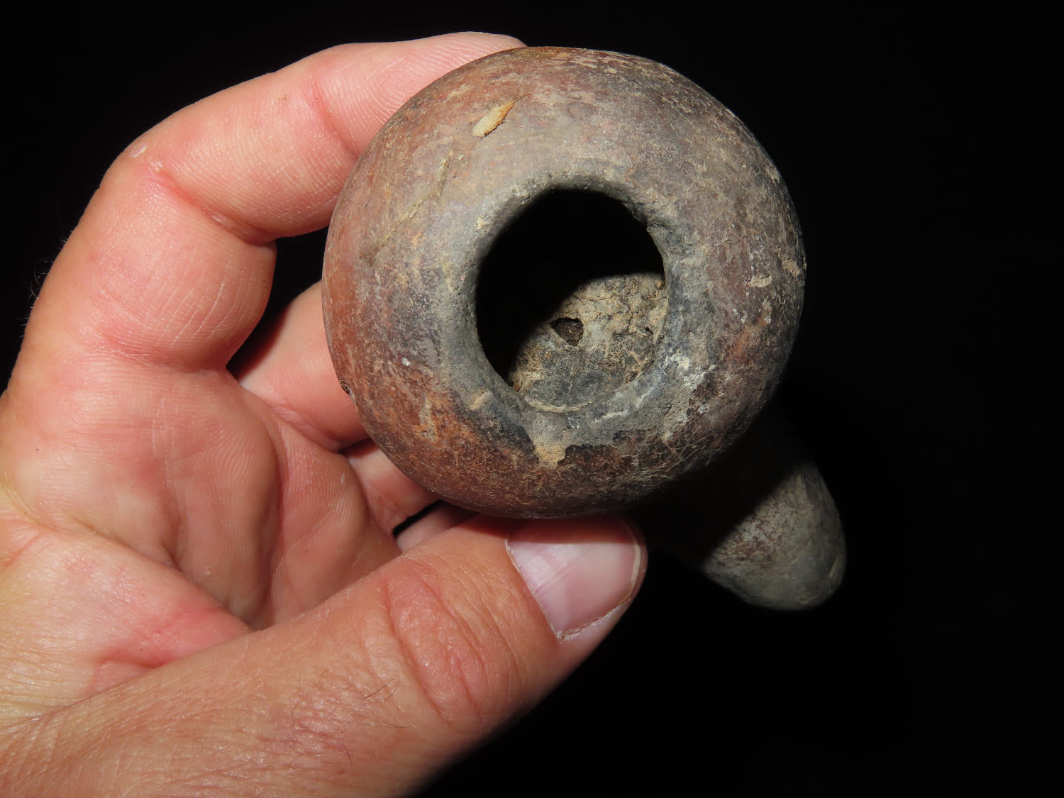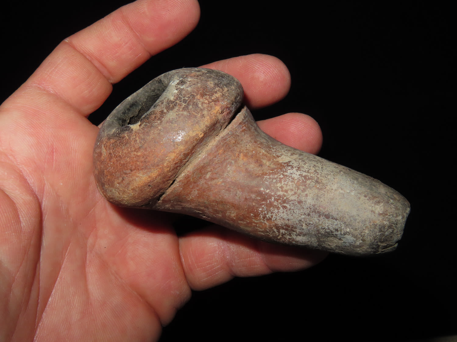 3 3/4″ Clay pipe from New Mexico. Still has pieces of the original stem inside.