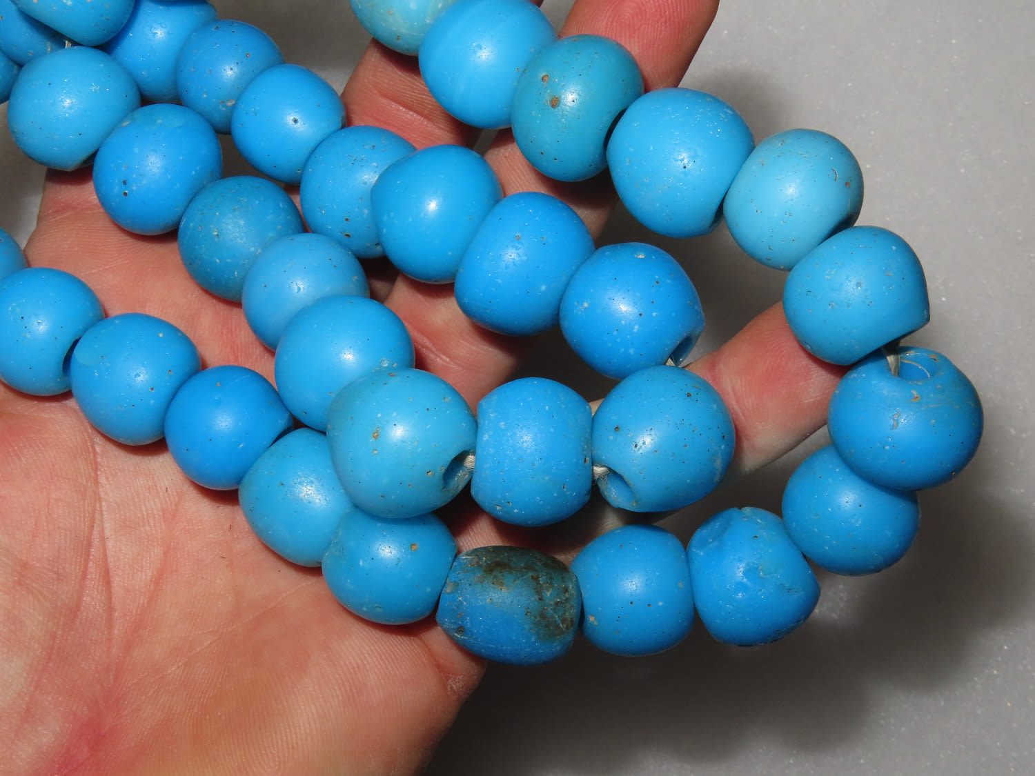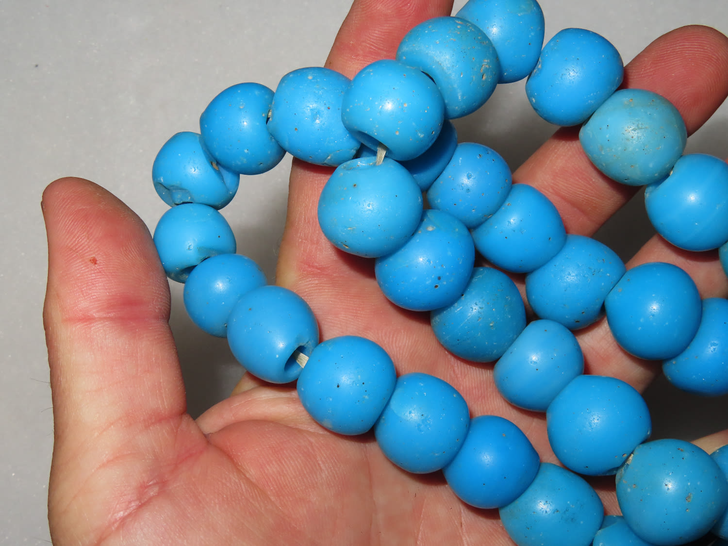 Rare 24″ Strand of Large Blue Vivid Glass Trade Beads