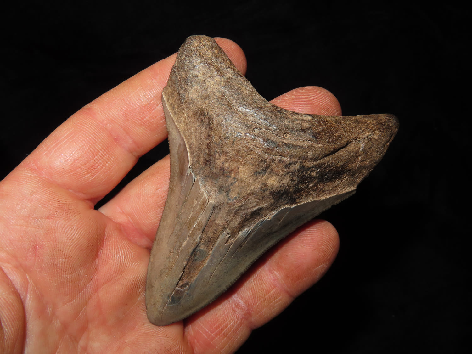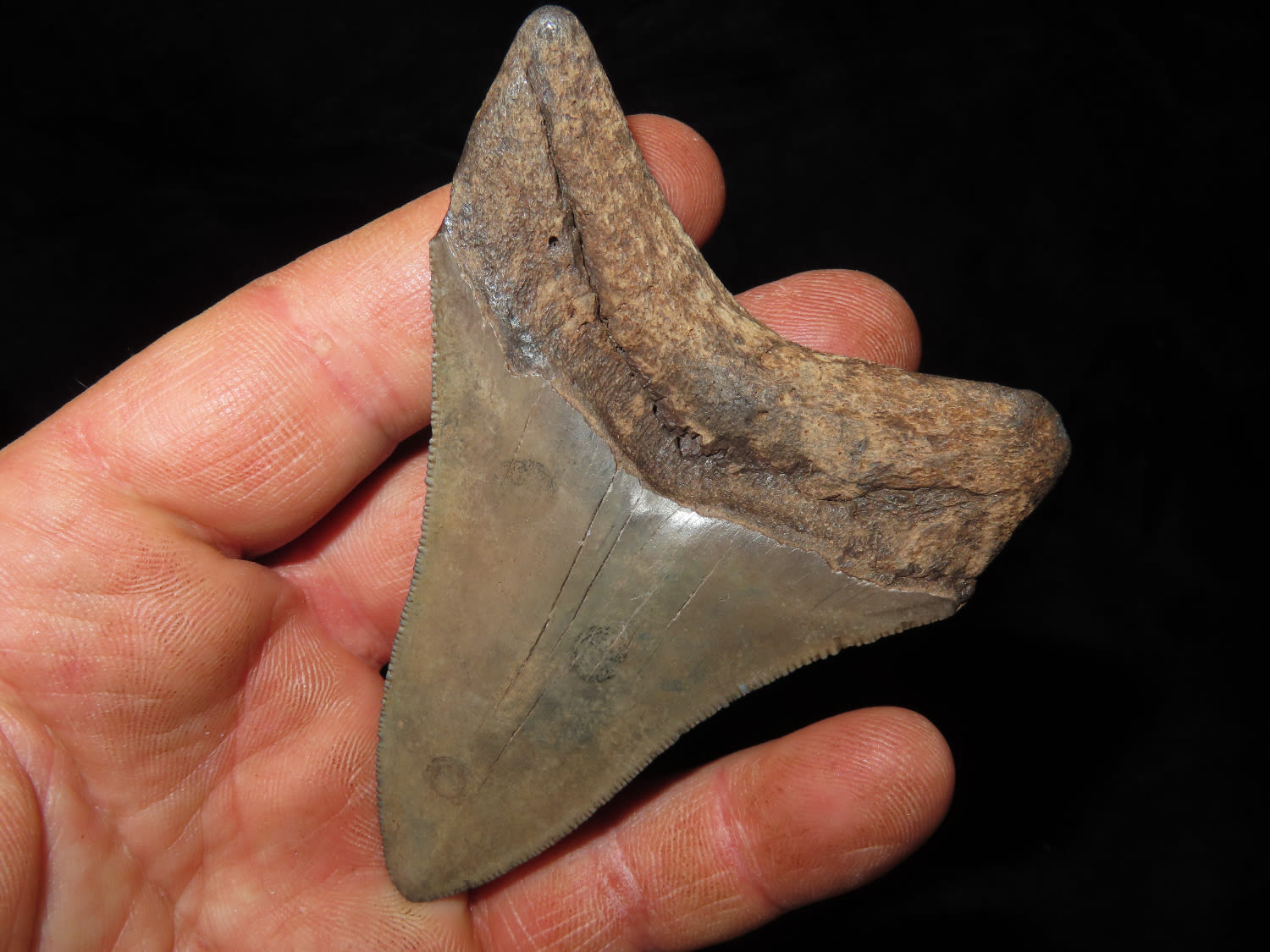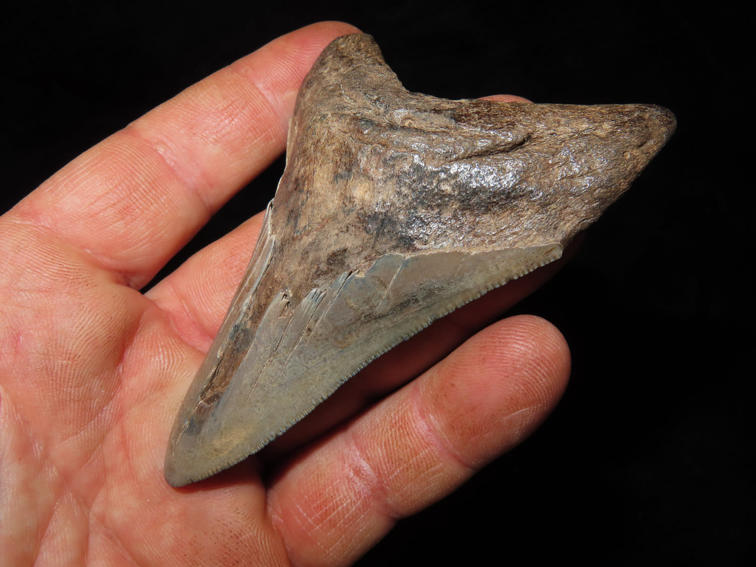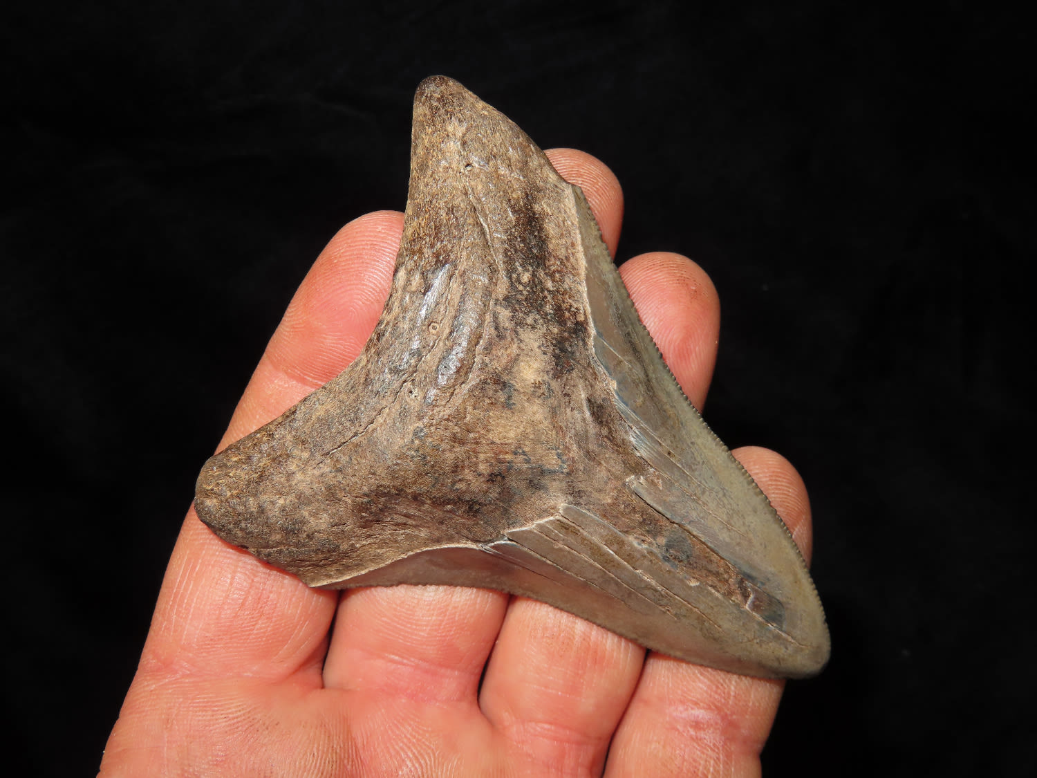3 9/16″ South Carolina Found Megalodon Sharks Tooth, finely serrated