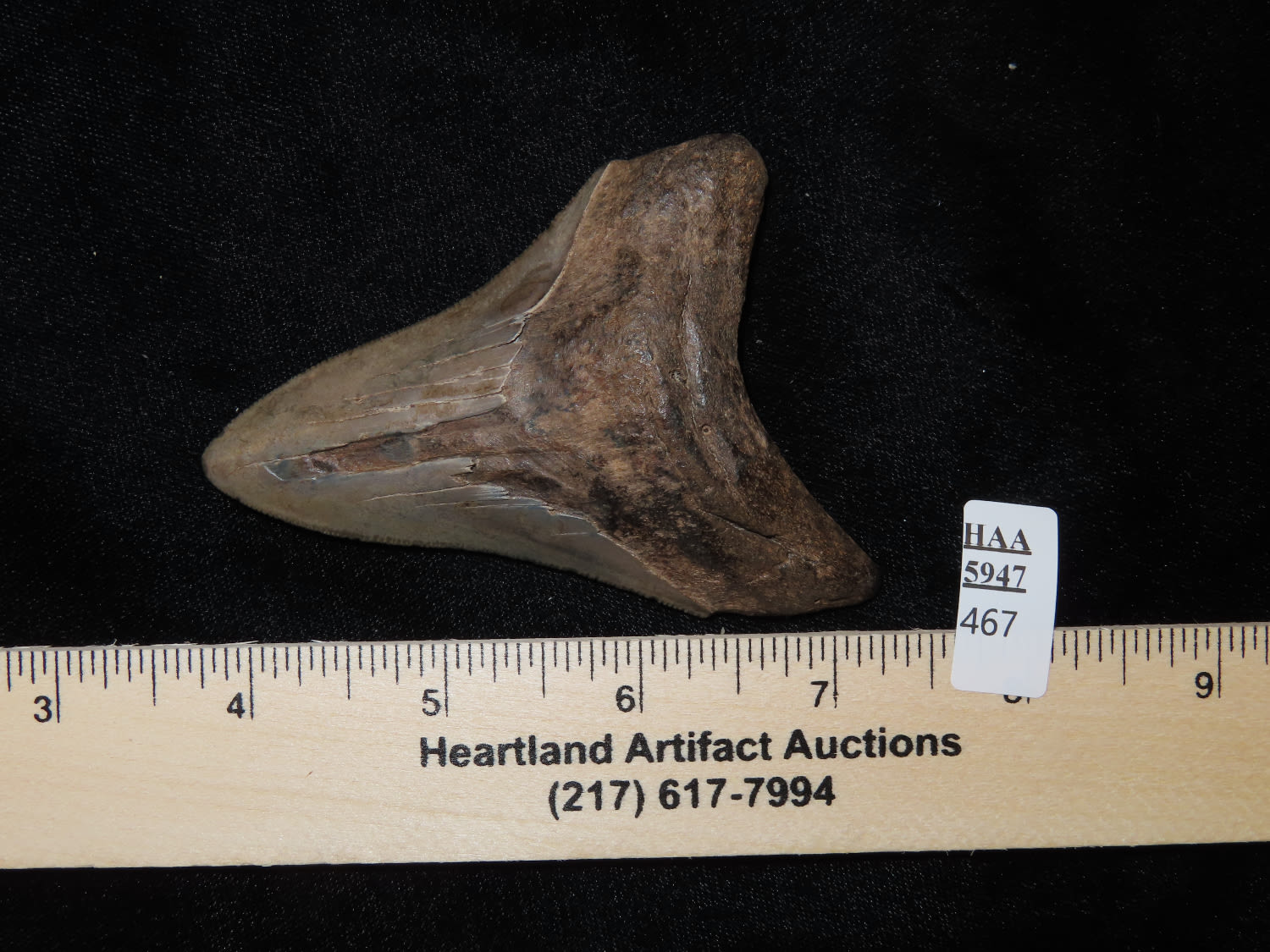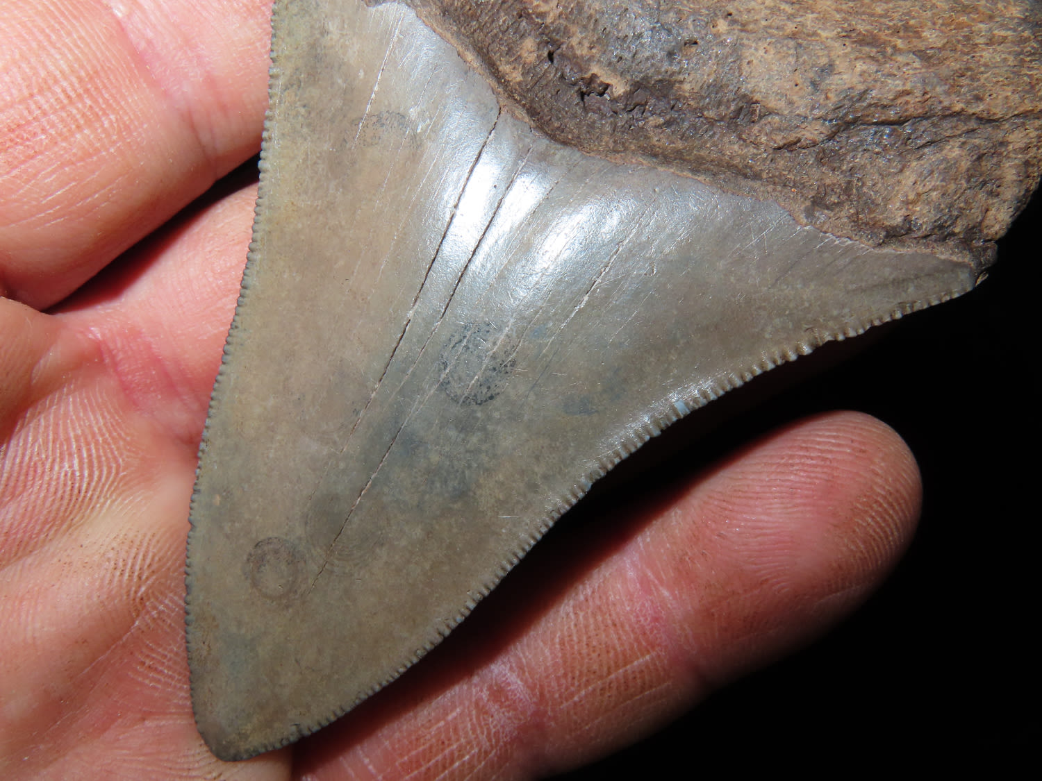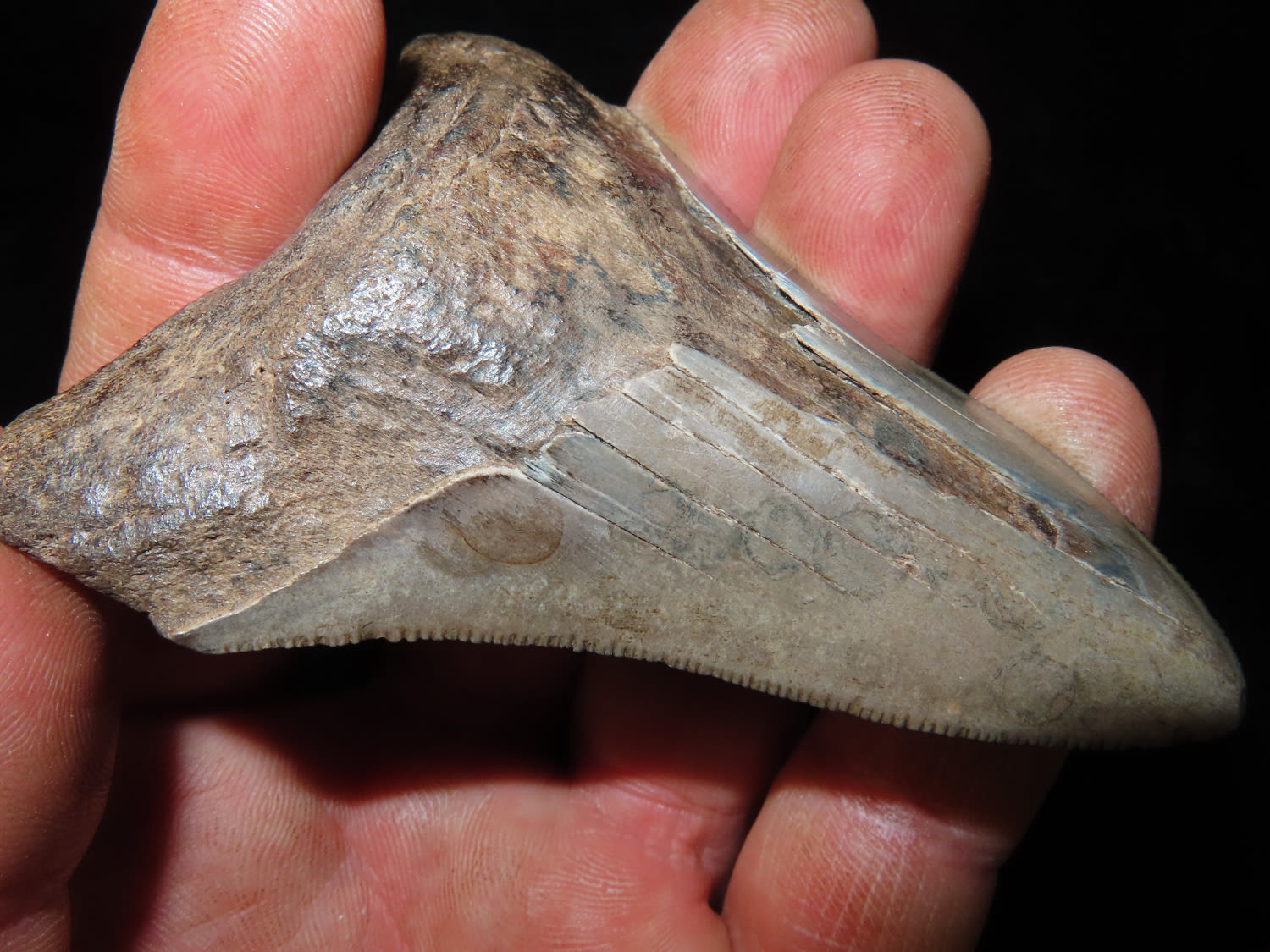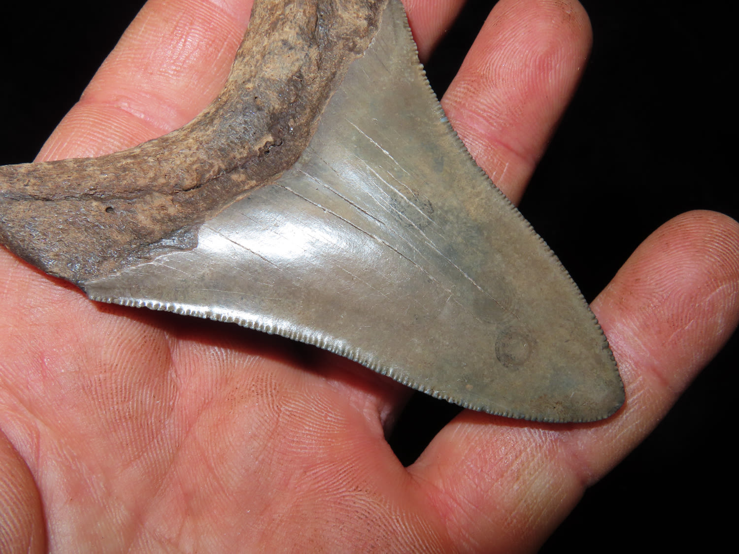 3 9/16″ South Carolina Found Megalodon Sharks Tooth, finely serrated
