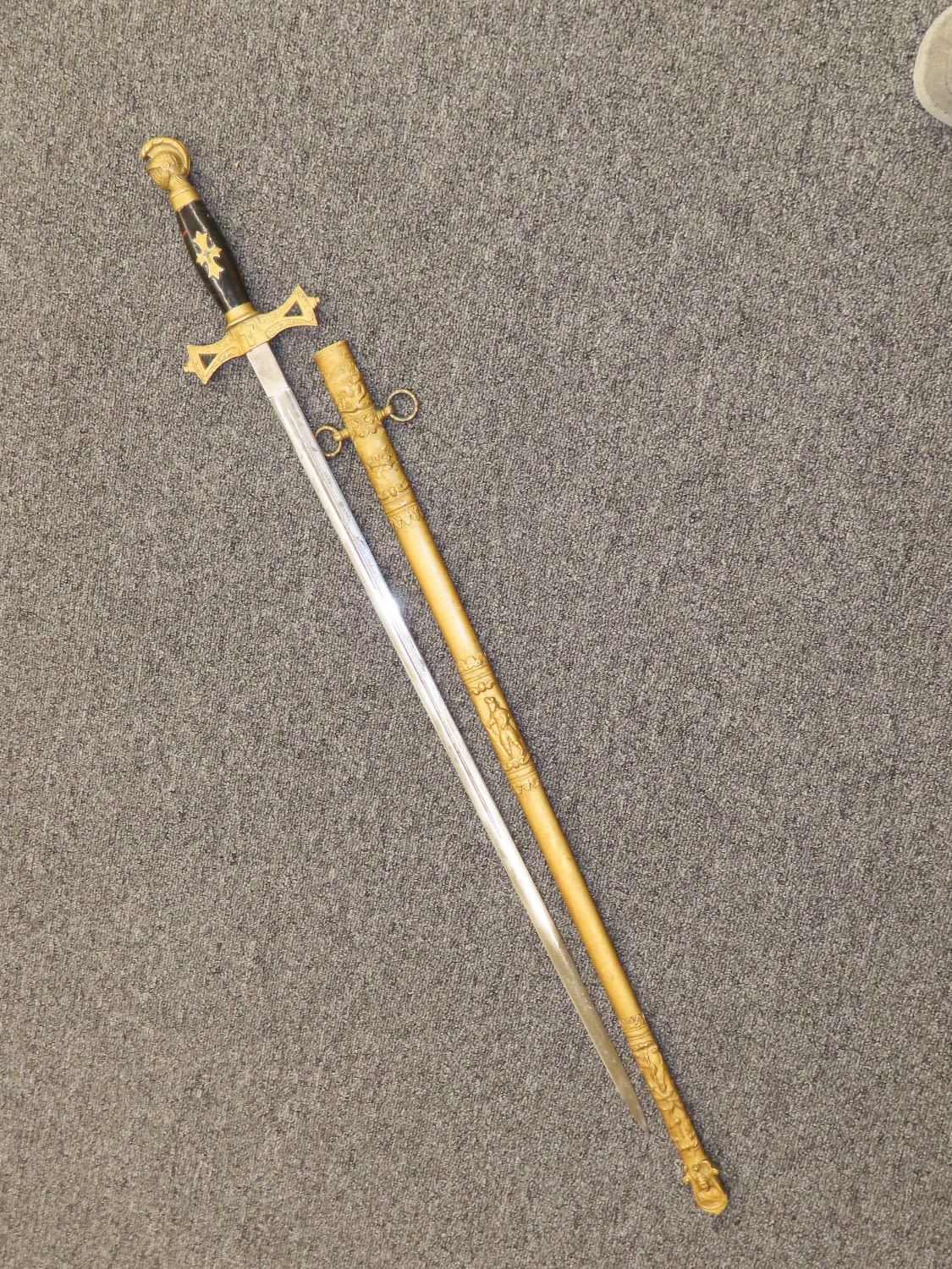 Knights Templar Masonic Sword H. R. CAPERLY Chicago w/ Scabbard overall length is 34 1/2″ long