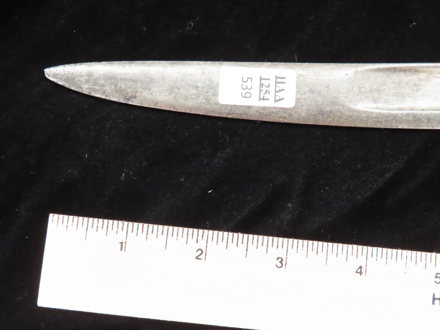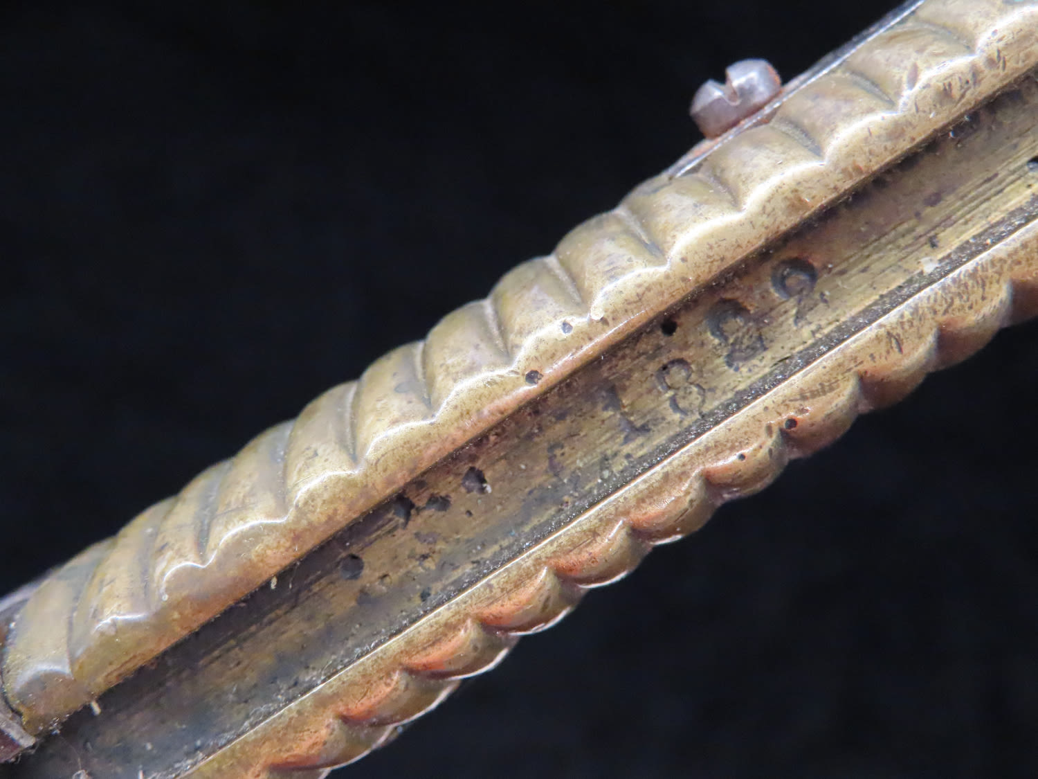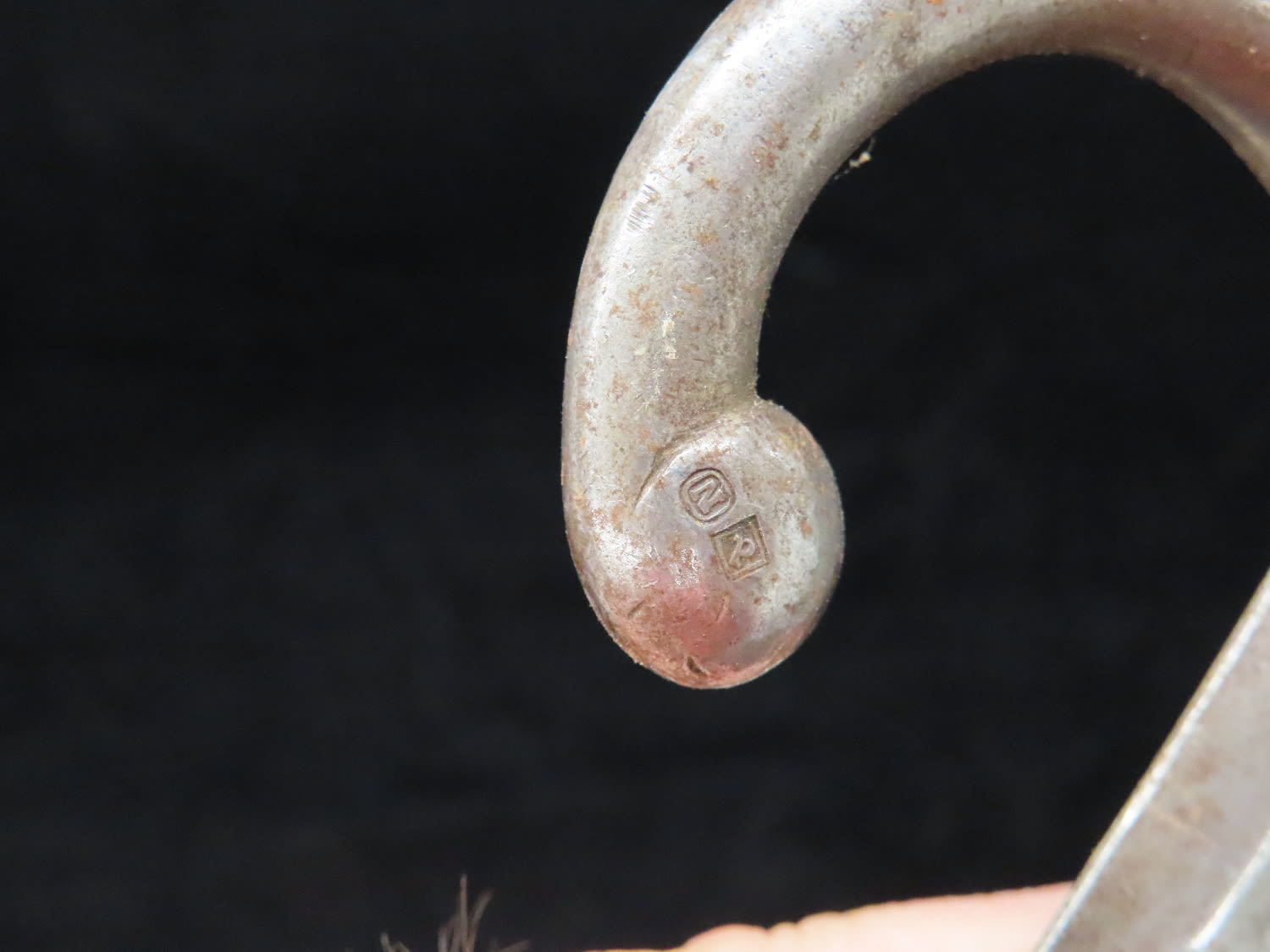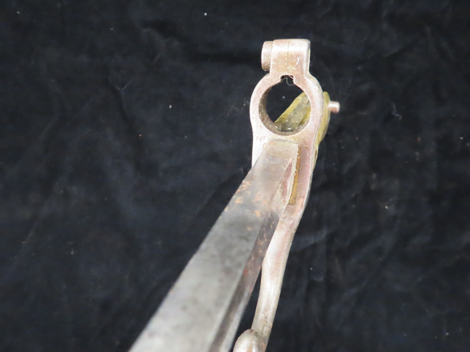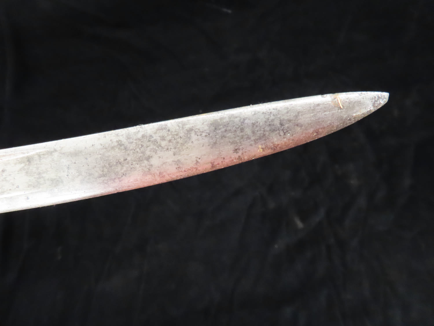 French 1870 Pattern Sword Bayonet w/ Brass Handle Marked on one face with a maker stamp and 3, on the other we have a maker cartoos 6981 R 574, then on the handle guard there are 2 more cartoos. 27 1/4″ Overall, 22 1/2″ Blade. 1822 Stamped inside handle