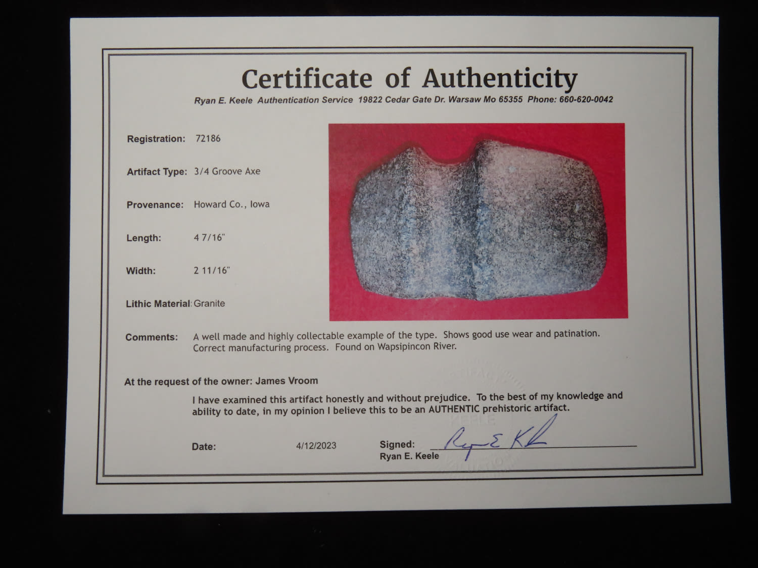 4 7/16″ 3/4 Groove Axe, Keele COA, found in Howard Co, Iowa by Floyd Moses from Saratoga, Iowa