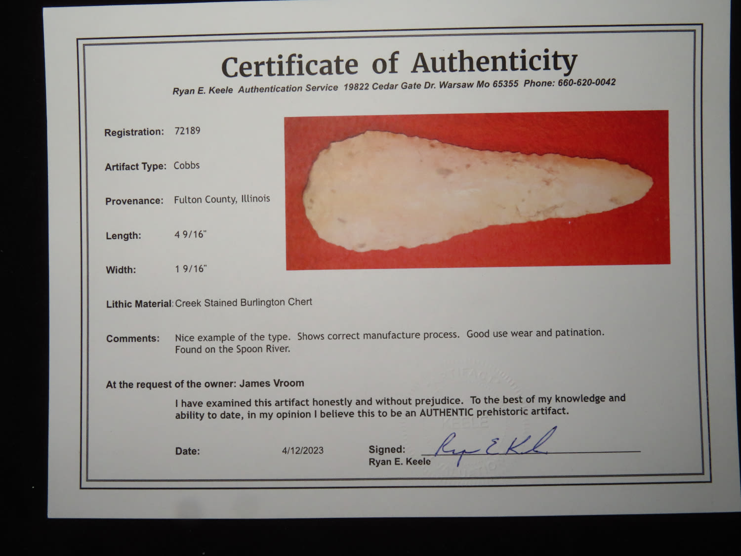4 9/16″ Cobbs, Keele COA, found in Fulton Co. Illinois on the Spoon River, Ex James Vroom Collection