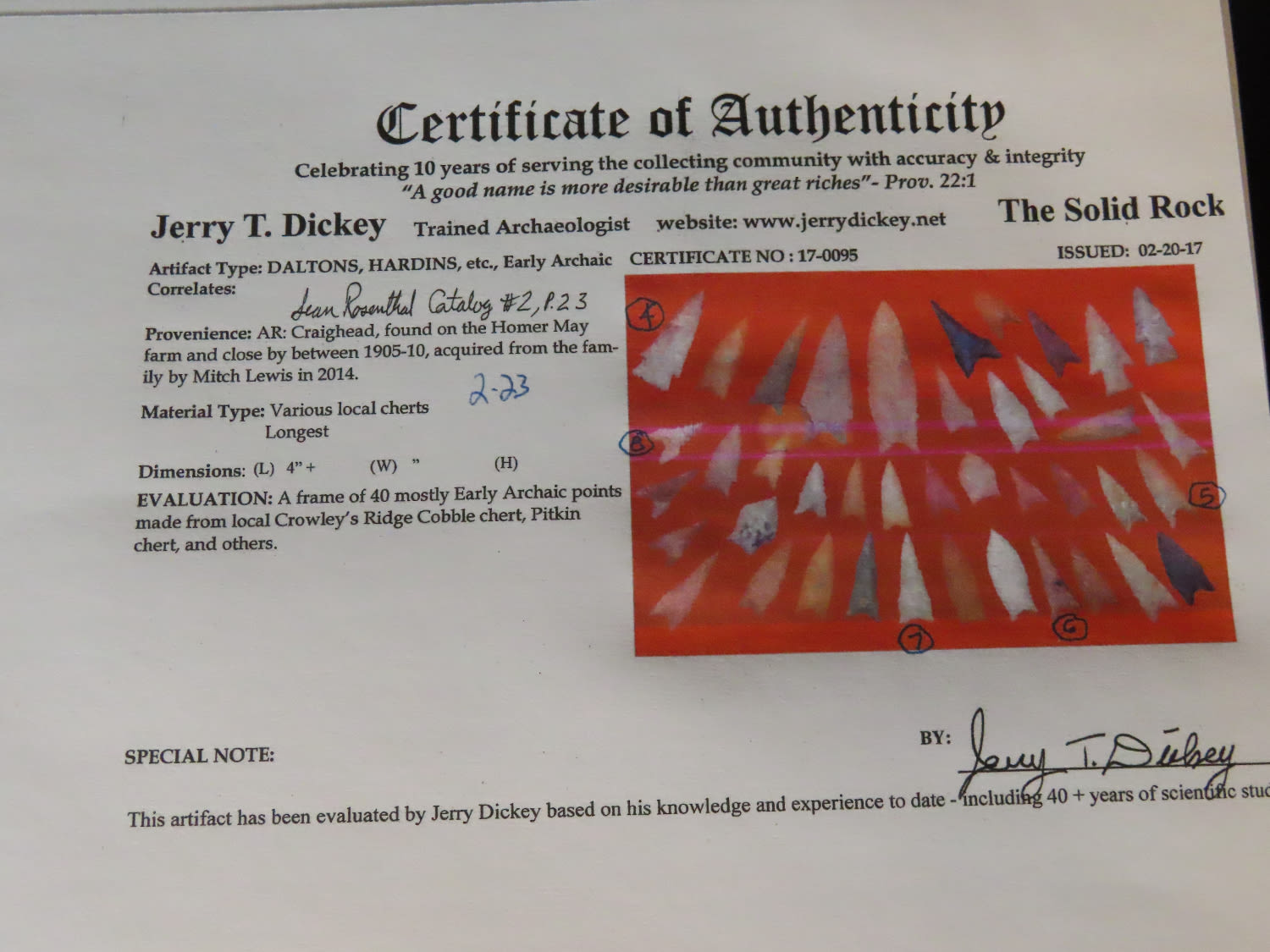 2 5/8″Plainview Dalton, Dickey COA(copy), found in Craighead Co Arkansas, found on the Homer May Farm between 1905-1910, Ex Mitch Lewis Collection,Ex Sean Rosenthall Collection
