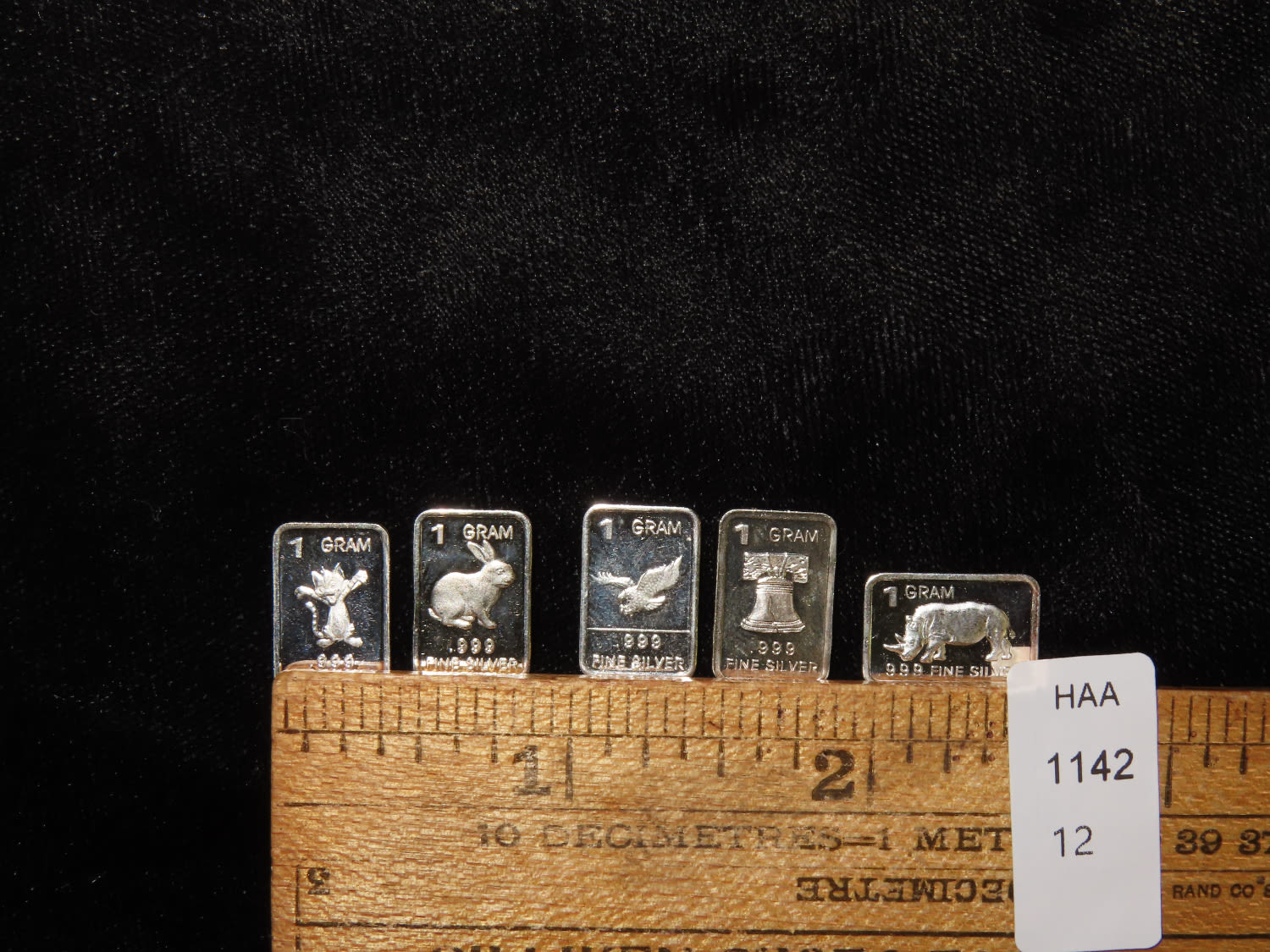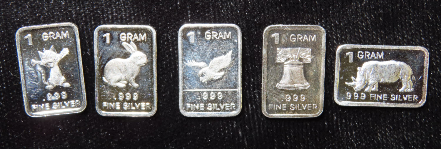 LOT OF 5 MINI SILVER BARS, 1 GRAM EACH, .999 PURE SILVER BULLION