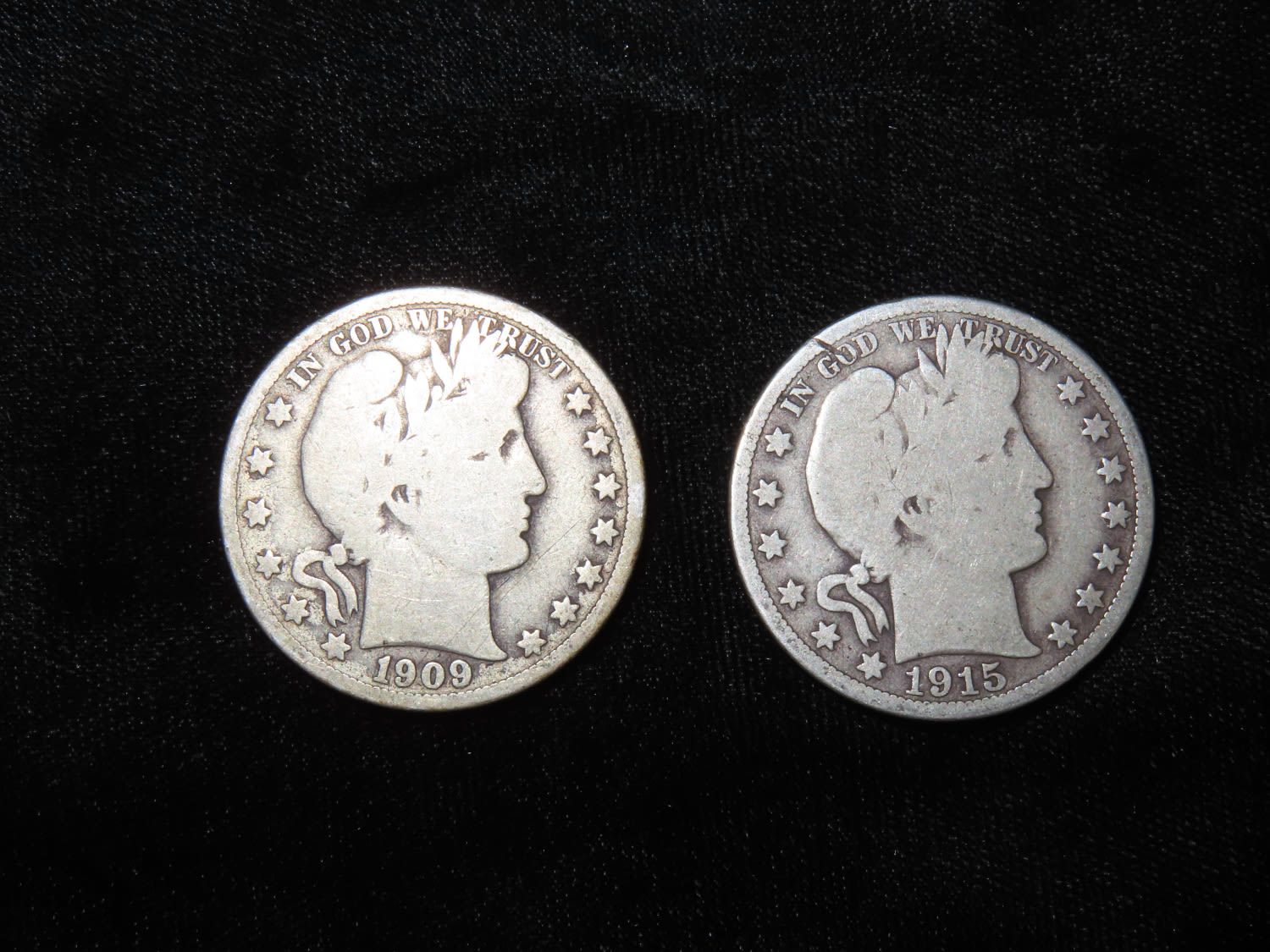 1909/1915 SILVER BARBER HALF DOLLARS, 1/2 OUNCE OF SILVER, EARLY US COINS