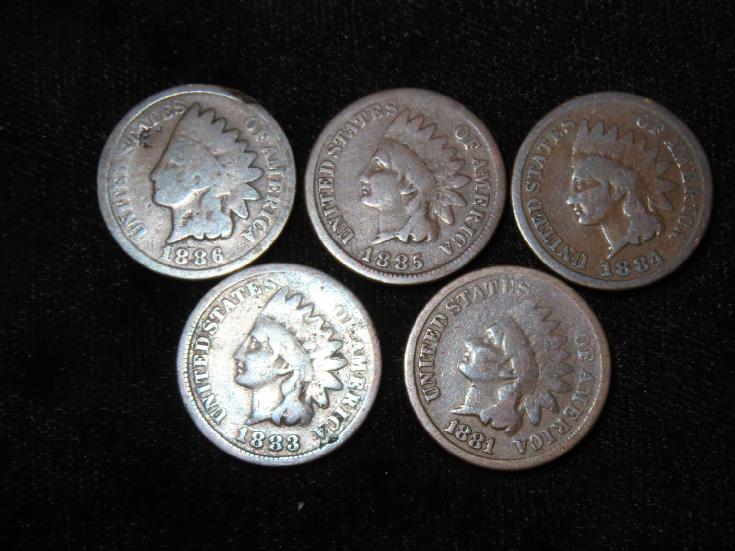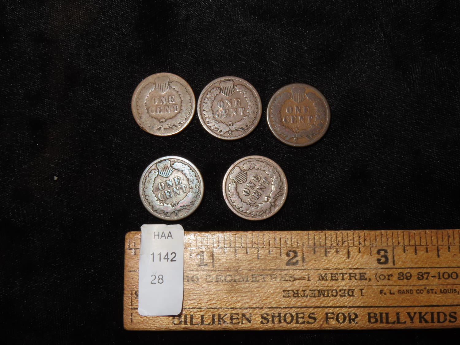 LOT OF 5 INDIAN HEAD CENTS, PENNY, PENNIES, EARLY US COINS