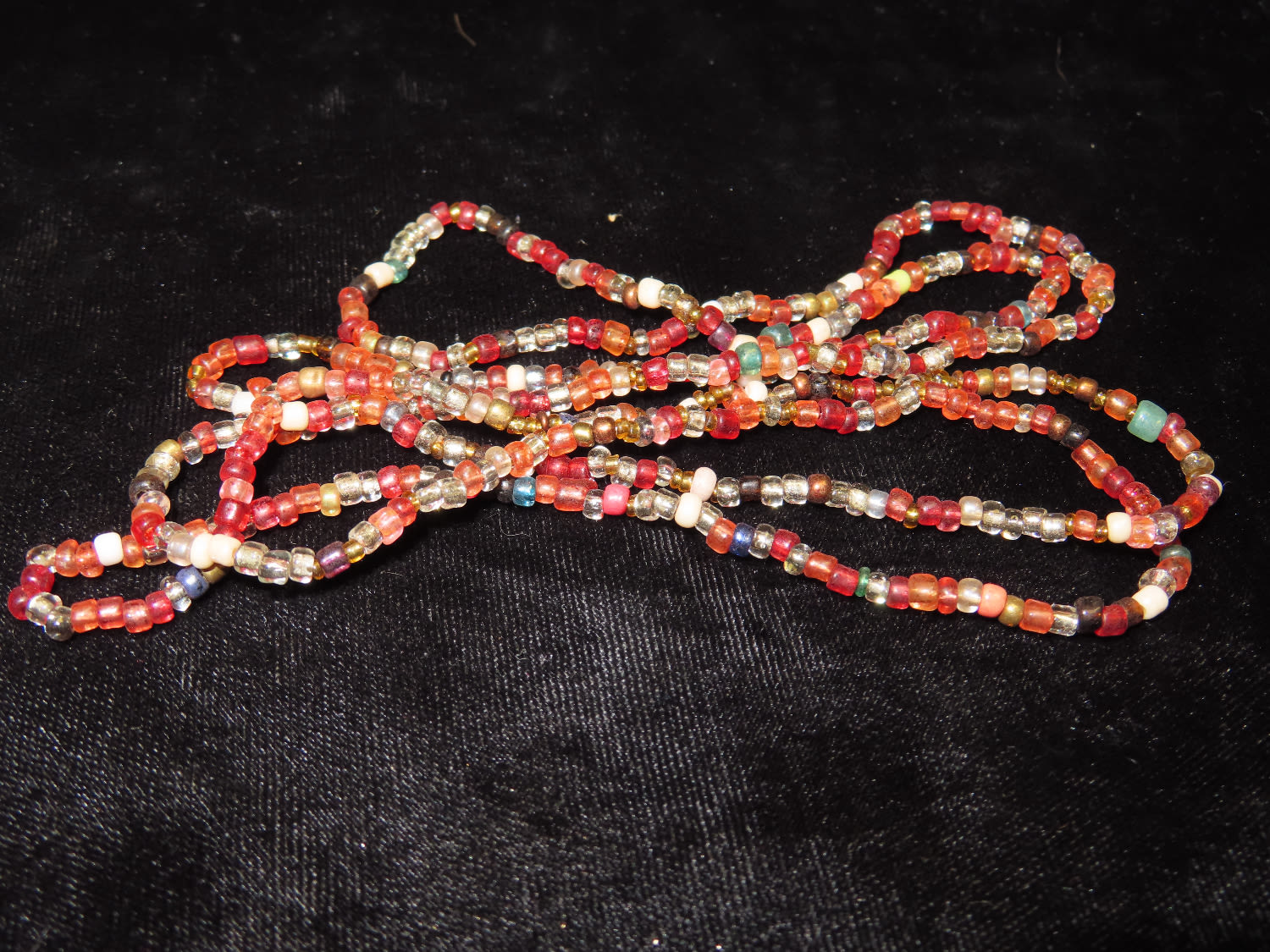 NICE 34″ LONG STRAND OF COLORFUL EARLY GLASS TRADE BEADS
