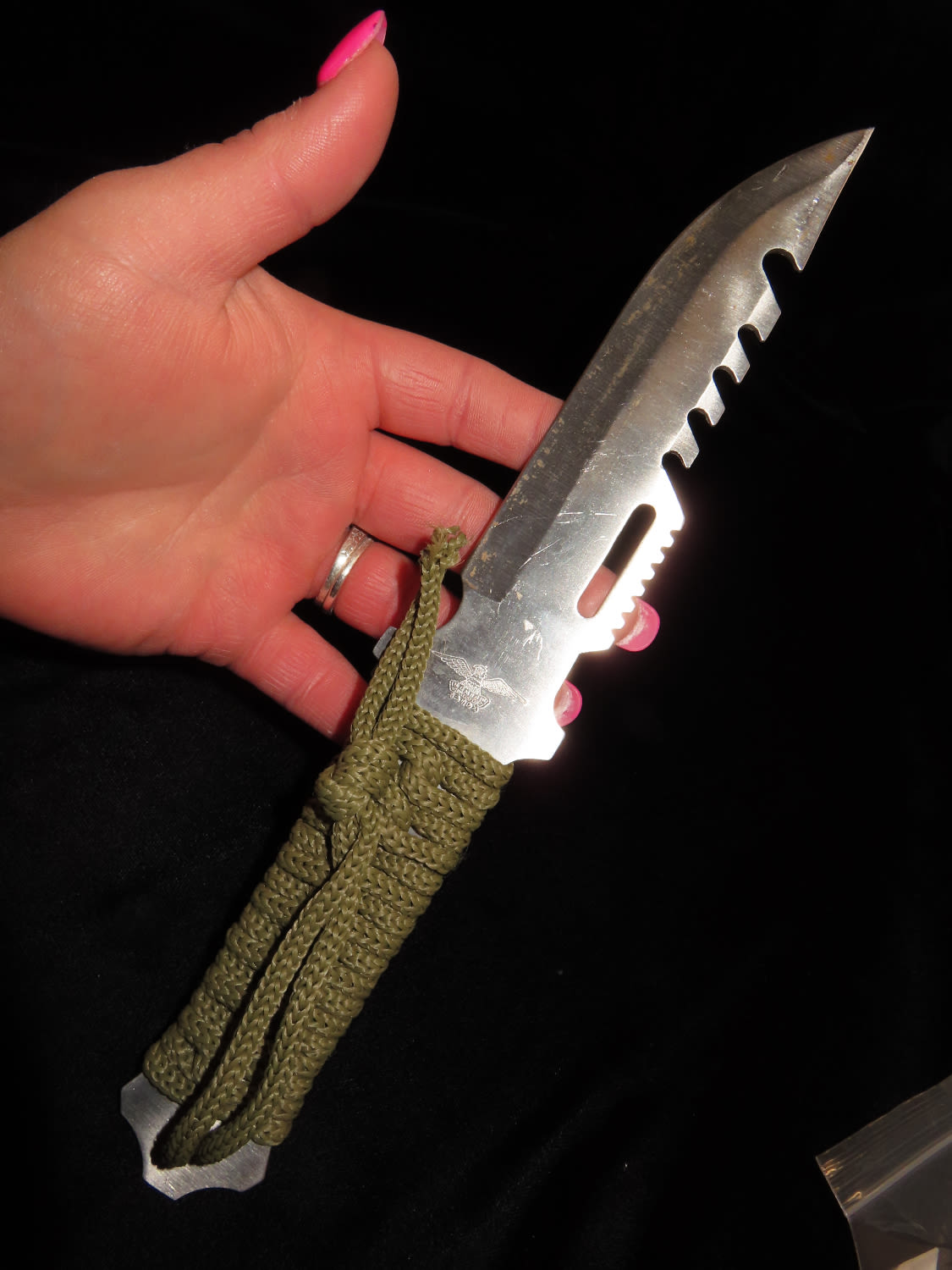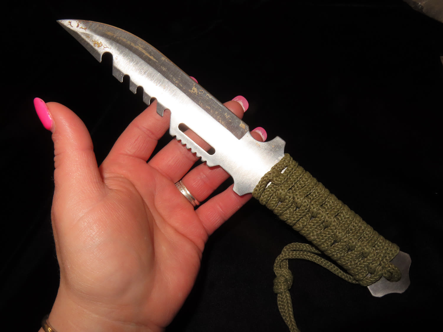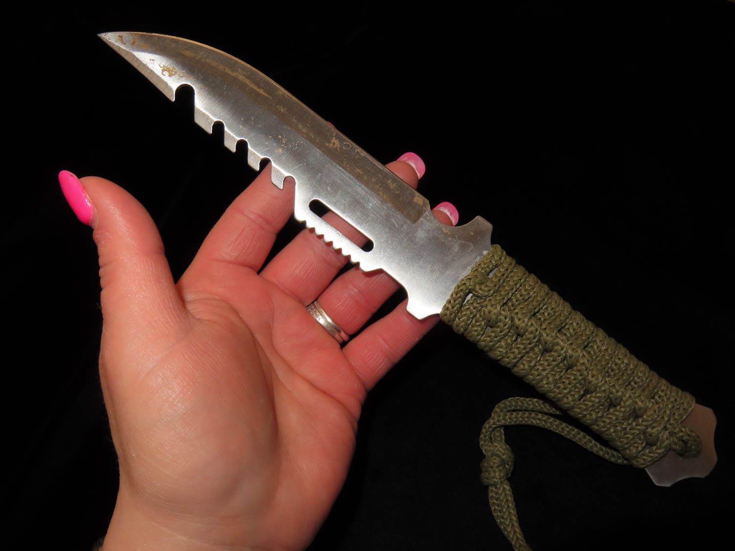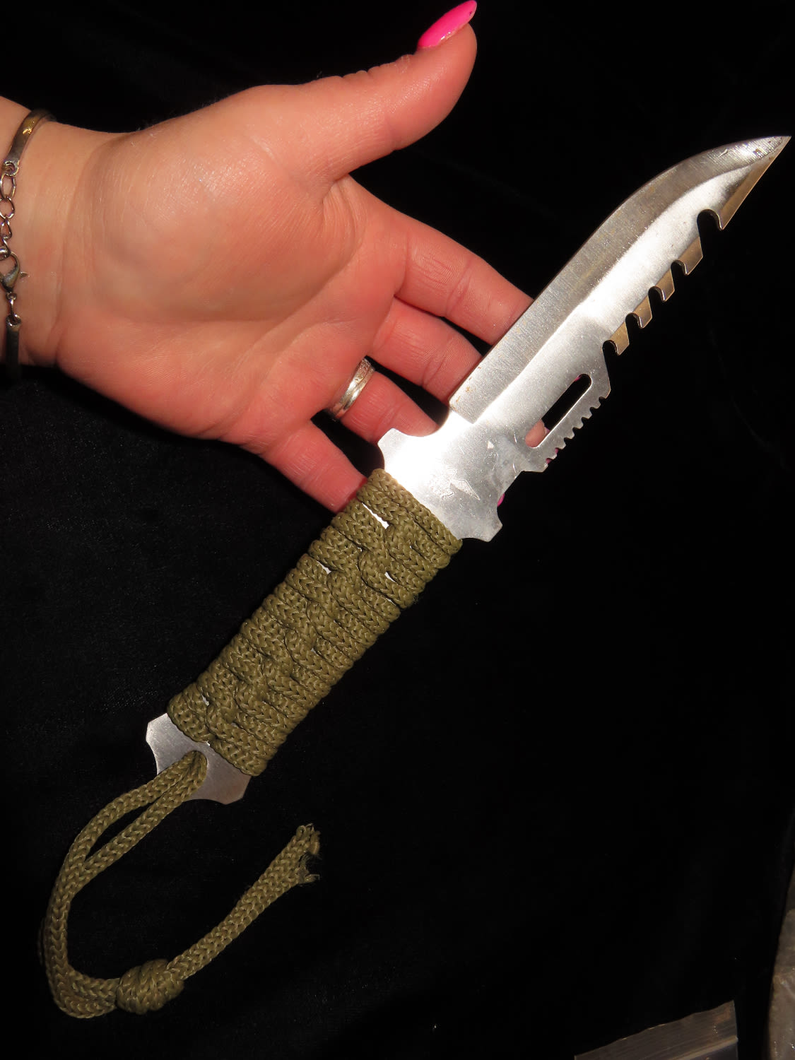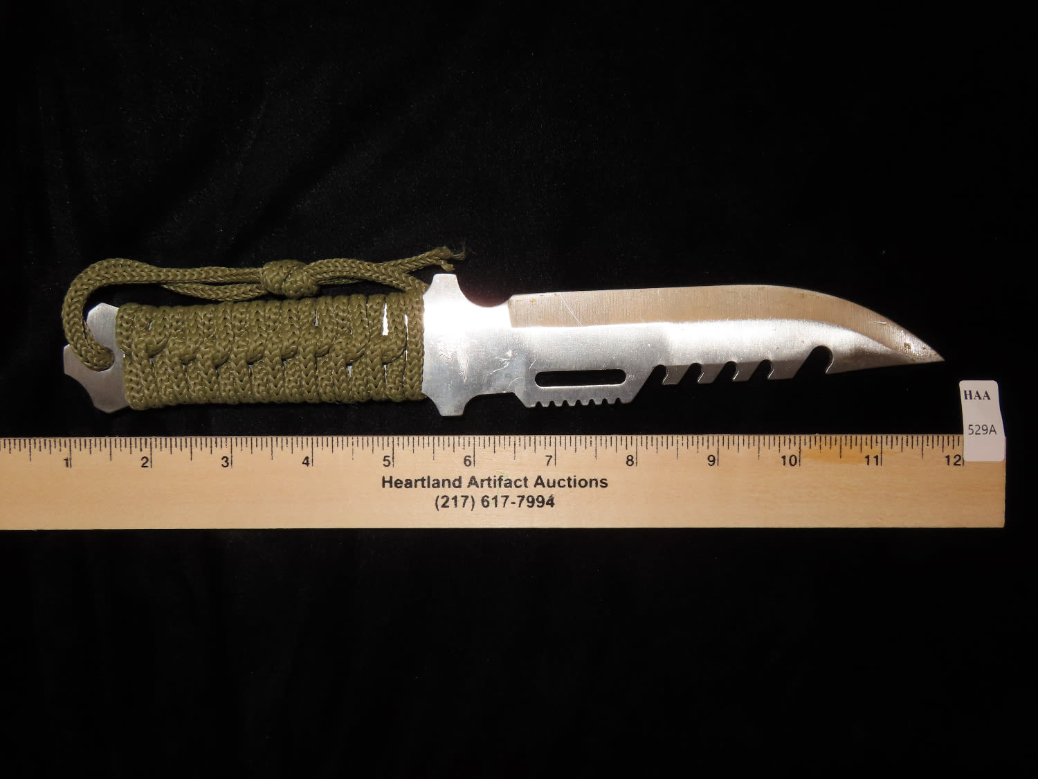 11″ Stainless Steel Survival-type Knife, Handle wrapped in Army Green Paracord.
