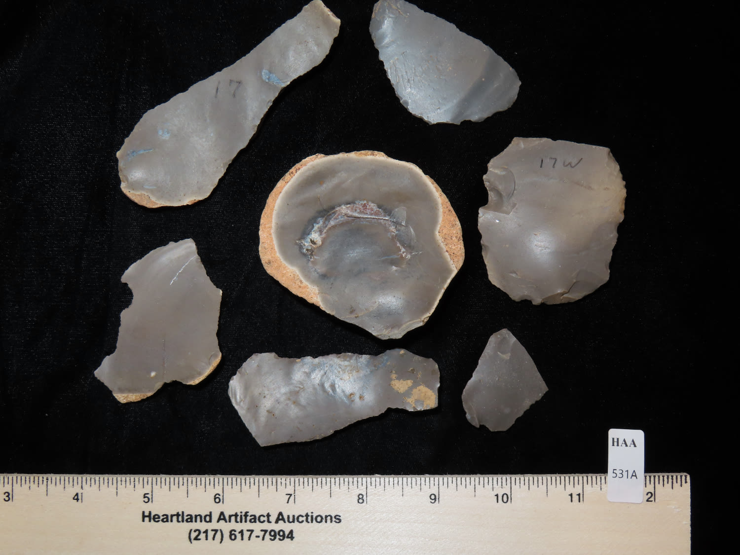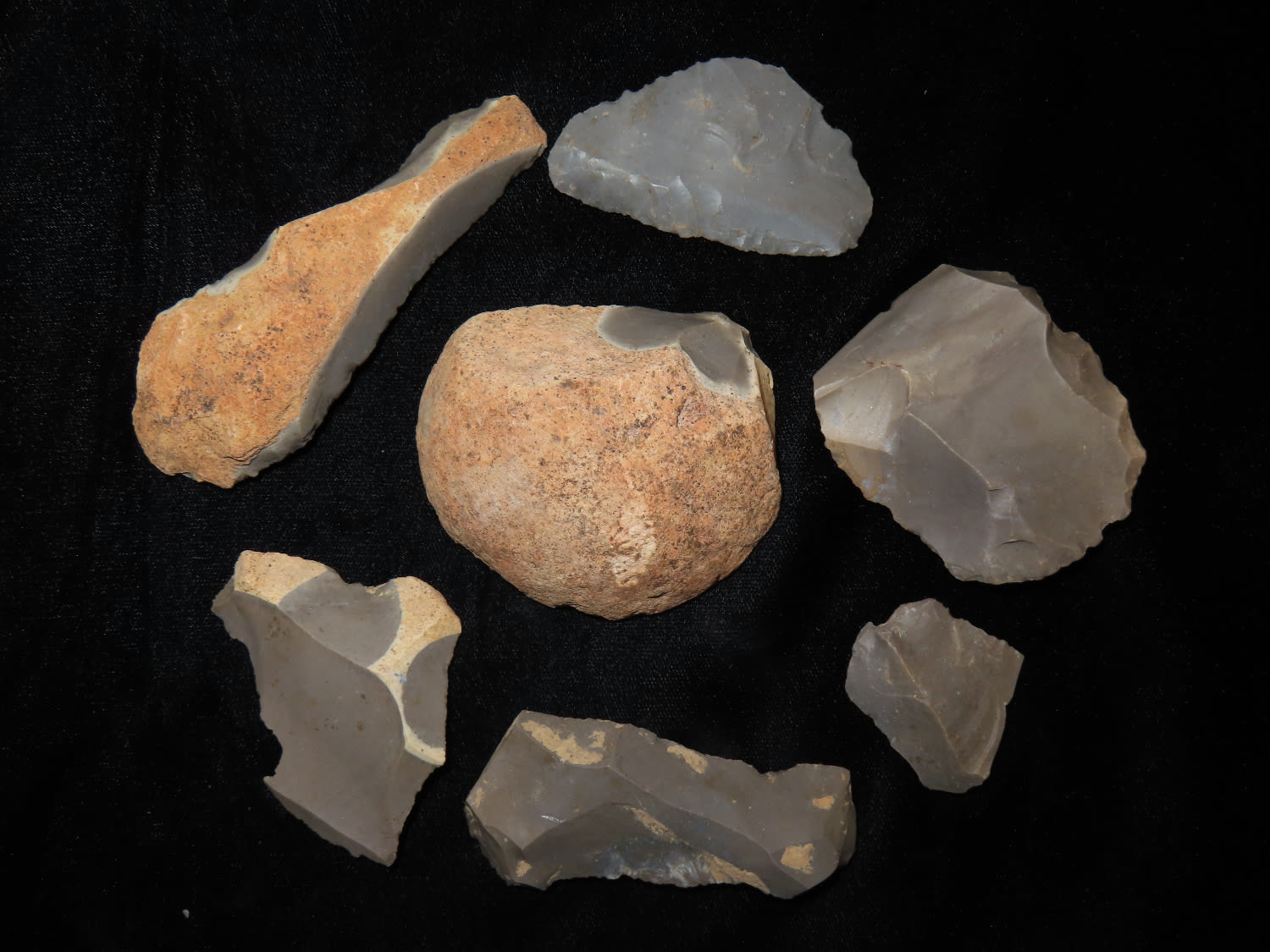 Grouping of Flint Flake Knives, and a Core