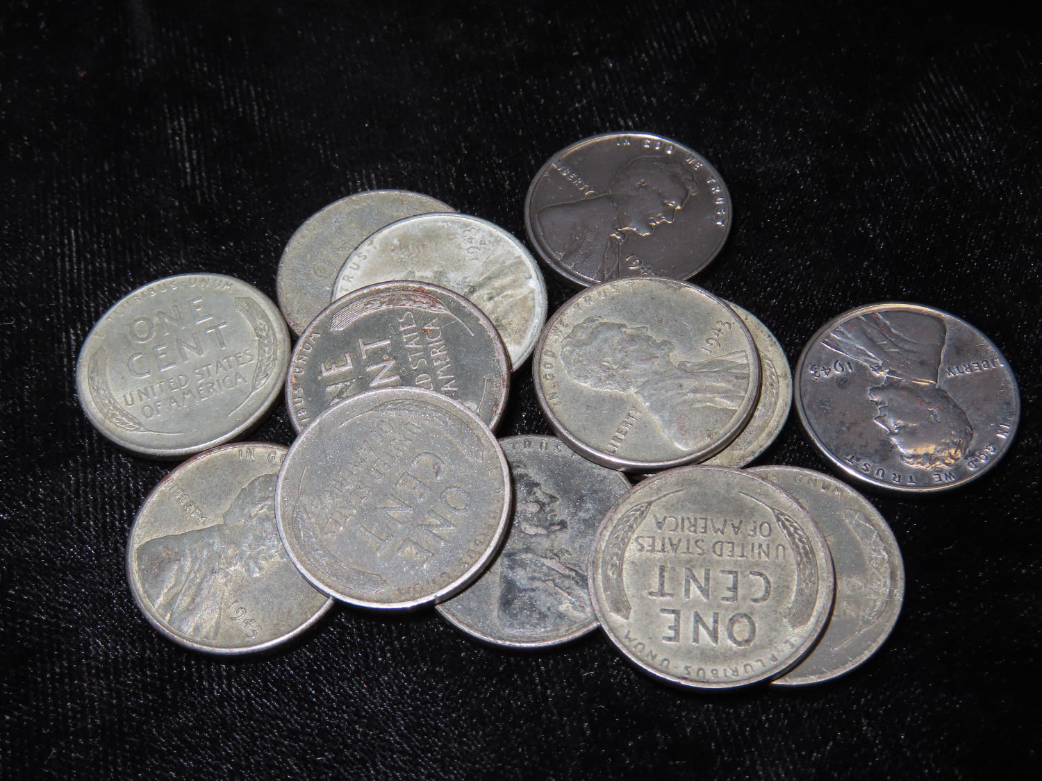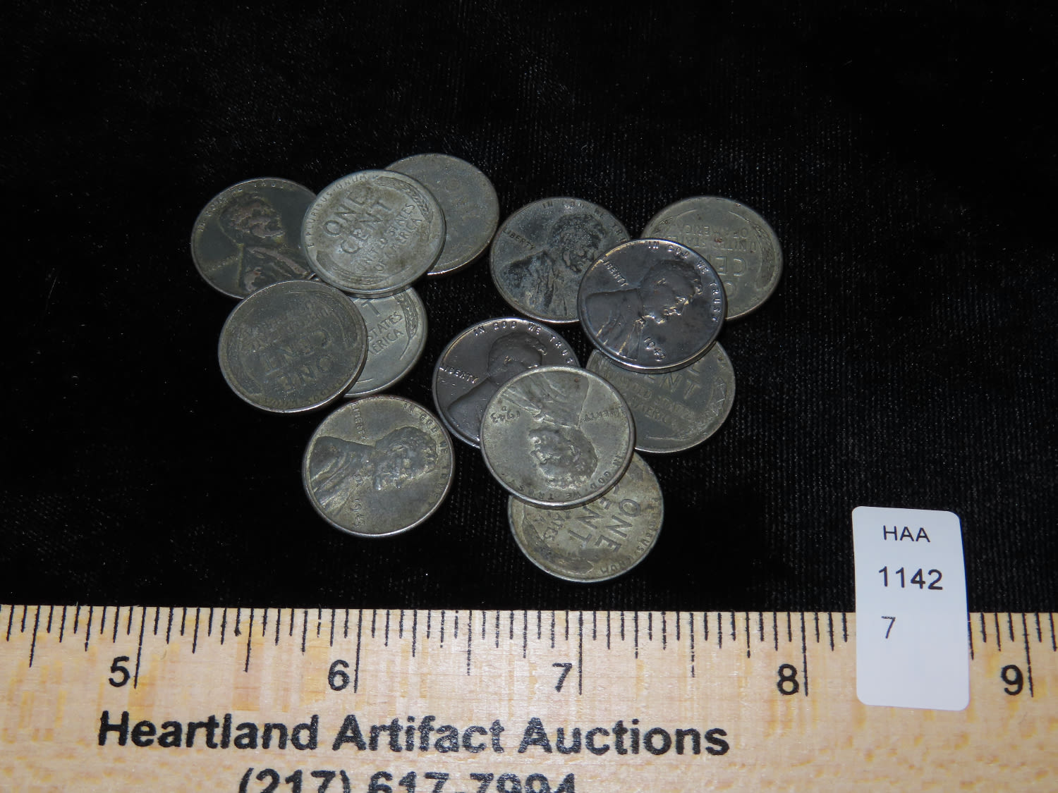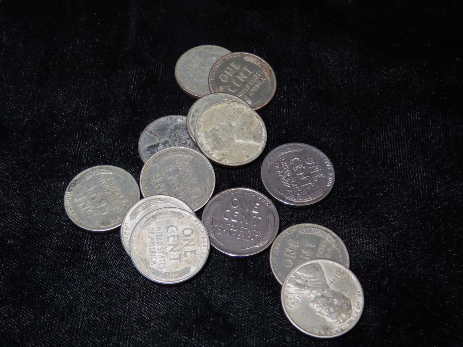 LOT OF 10 WWII ERA STEEL PENNY, WHEAT PENNIES, LINCON CENT, 1943 P-D-S