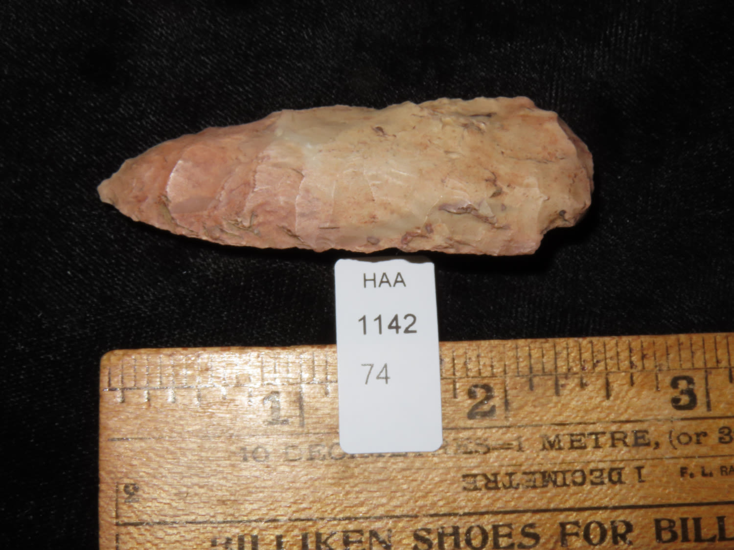 2 9/16″ DICKSON, FOUND IN THE BENTON / HUMPHREYS COUNTY TENNESSEE AREA BY E.J. SIMS, INDIAN ARROWHEAD, ARTIFACT