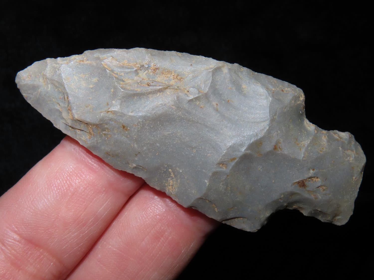 2 1/2" KIRK STEMMED, FOUND IN THE BENTON / HUMPHREYS COUNTY TENNESSEE AREA BY E.J. SIMS, INDIAN ARROWHEAD, ARTIFACT