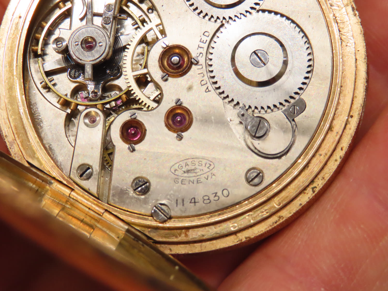 Gold Filled Pocket Watch Early 1900’s, Swiss Movement Auguste Agassiz Geneva 114830, CWC Co #1425740 with Chain.