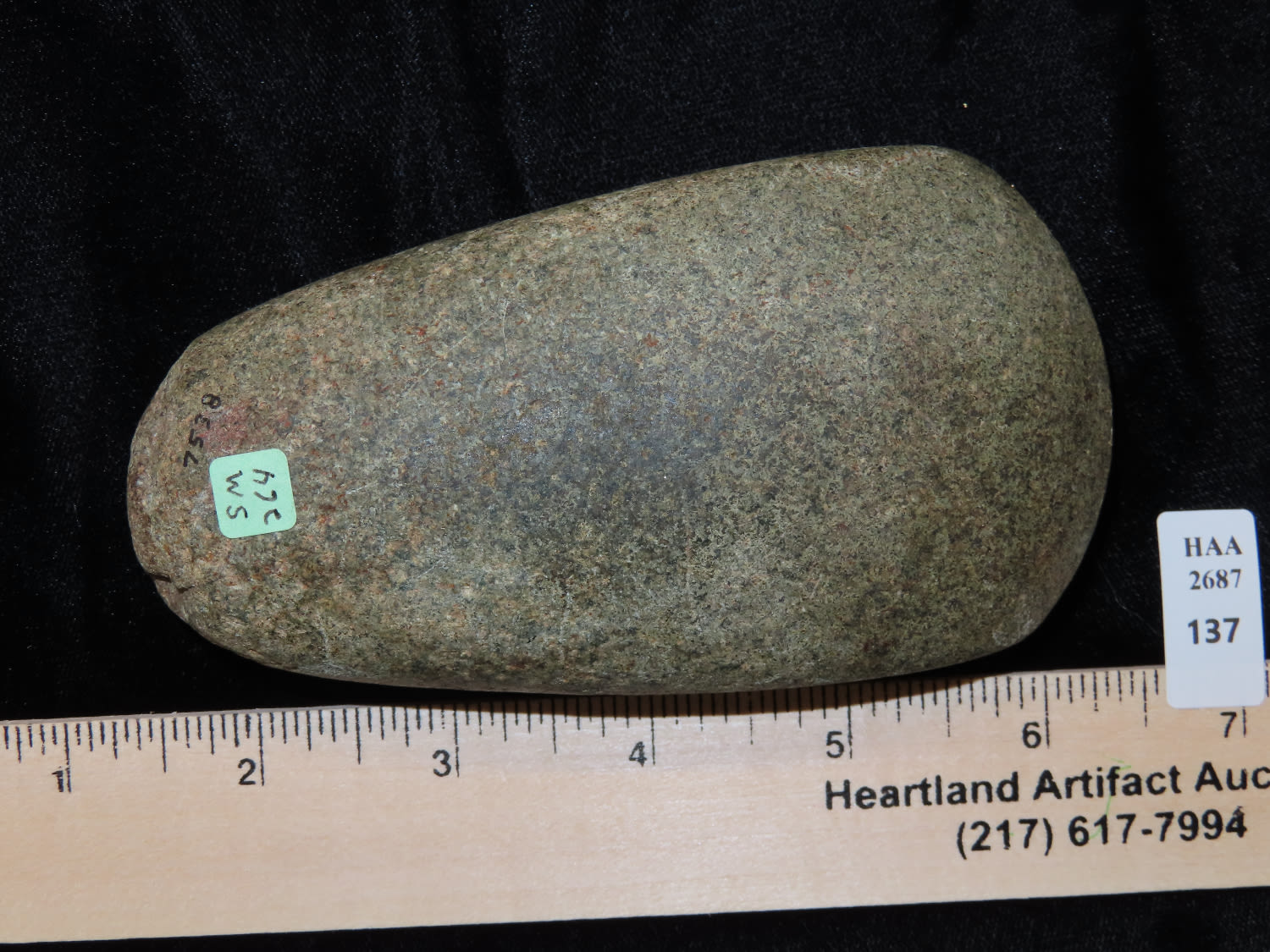 4 3/4″ Celt Found in Calhoun Co. Illinois, Ex Steve Manos Collection #264, Wonderful Bit Polish and Nice Colored Granite.