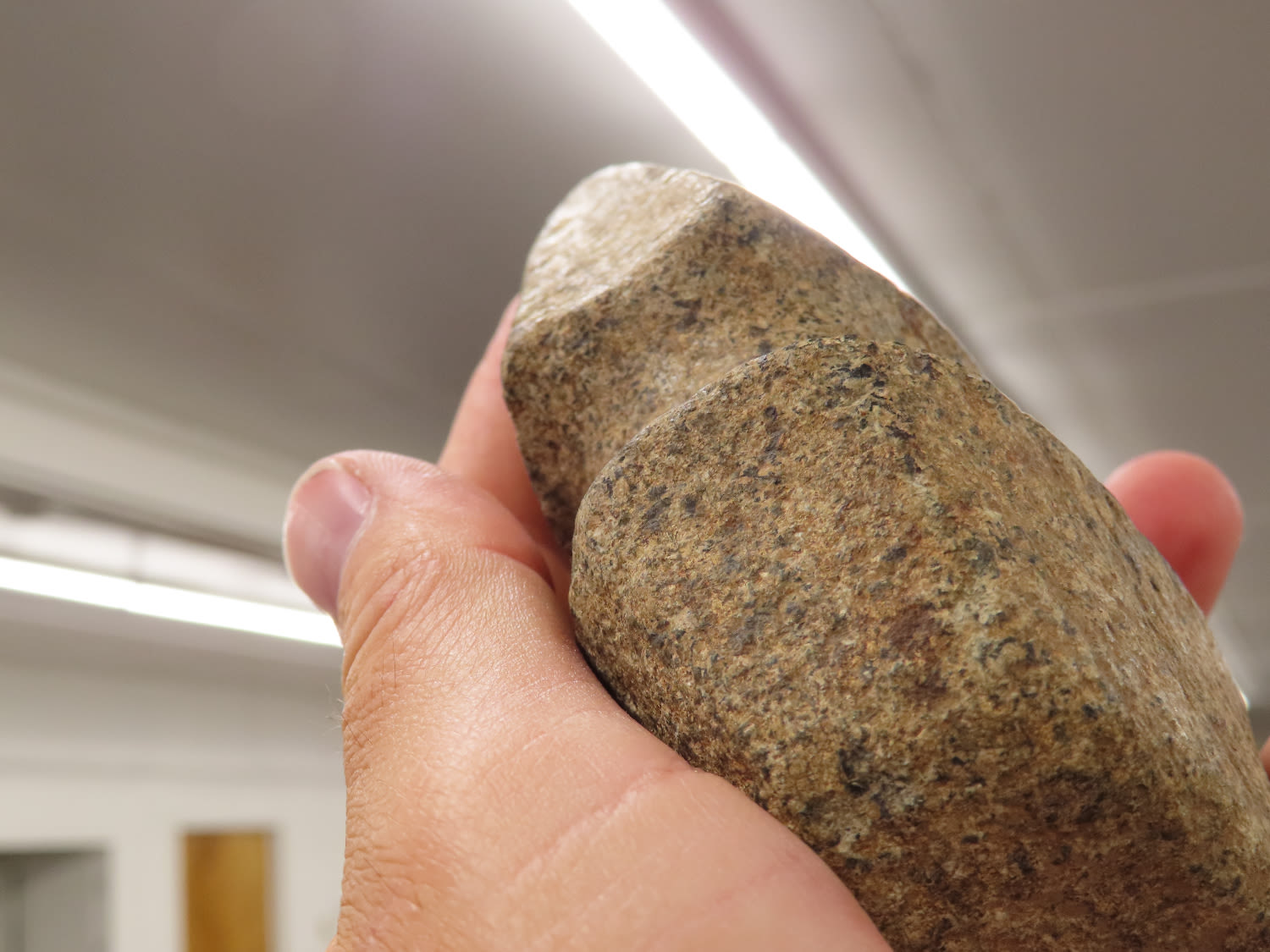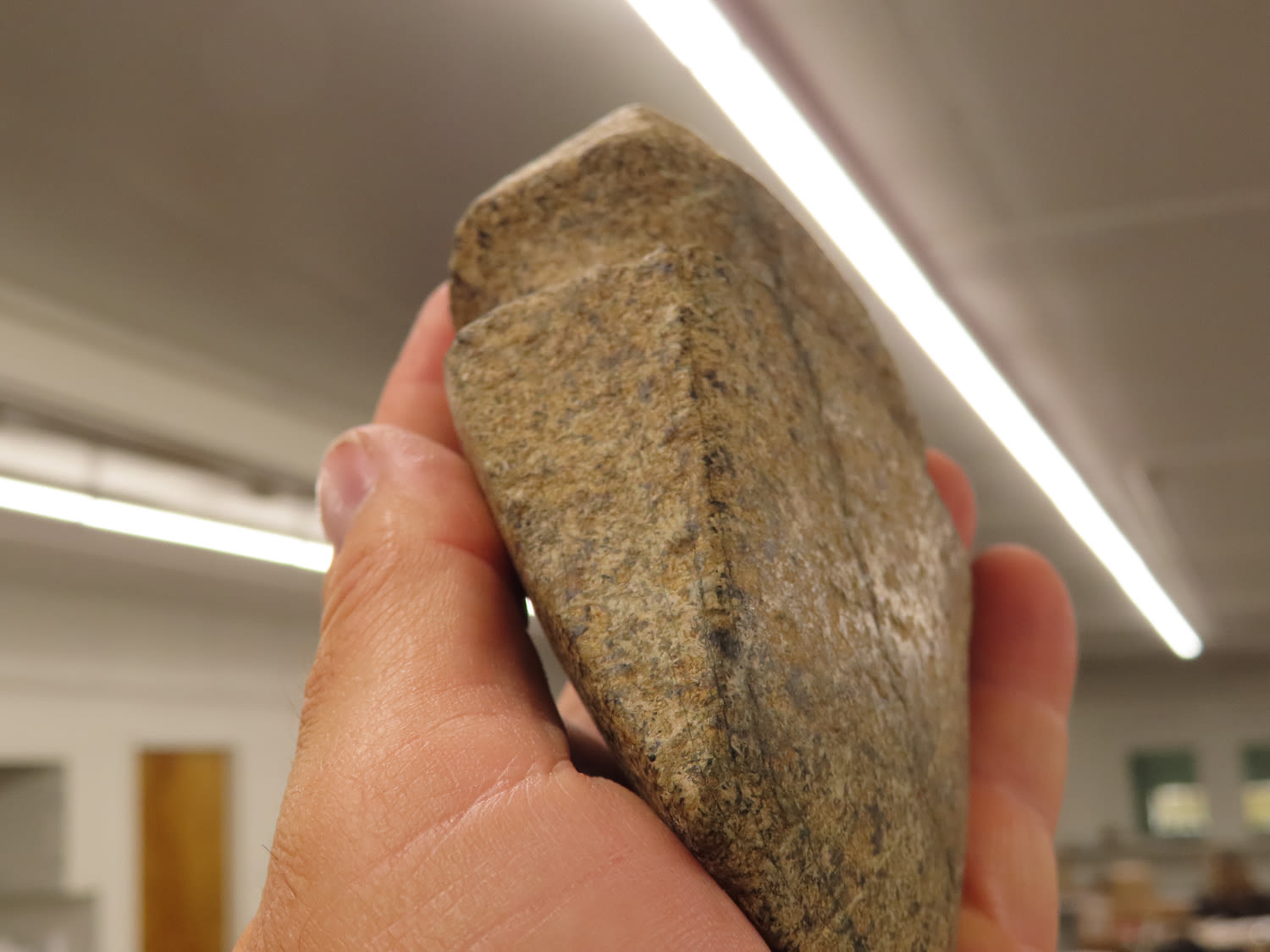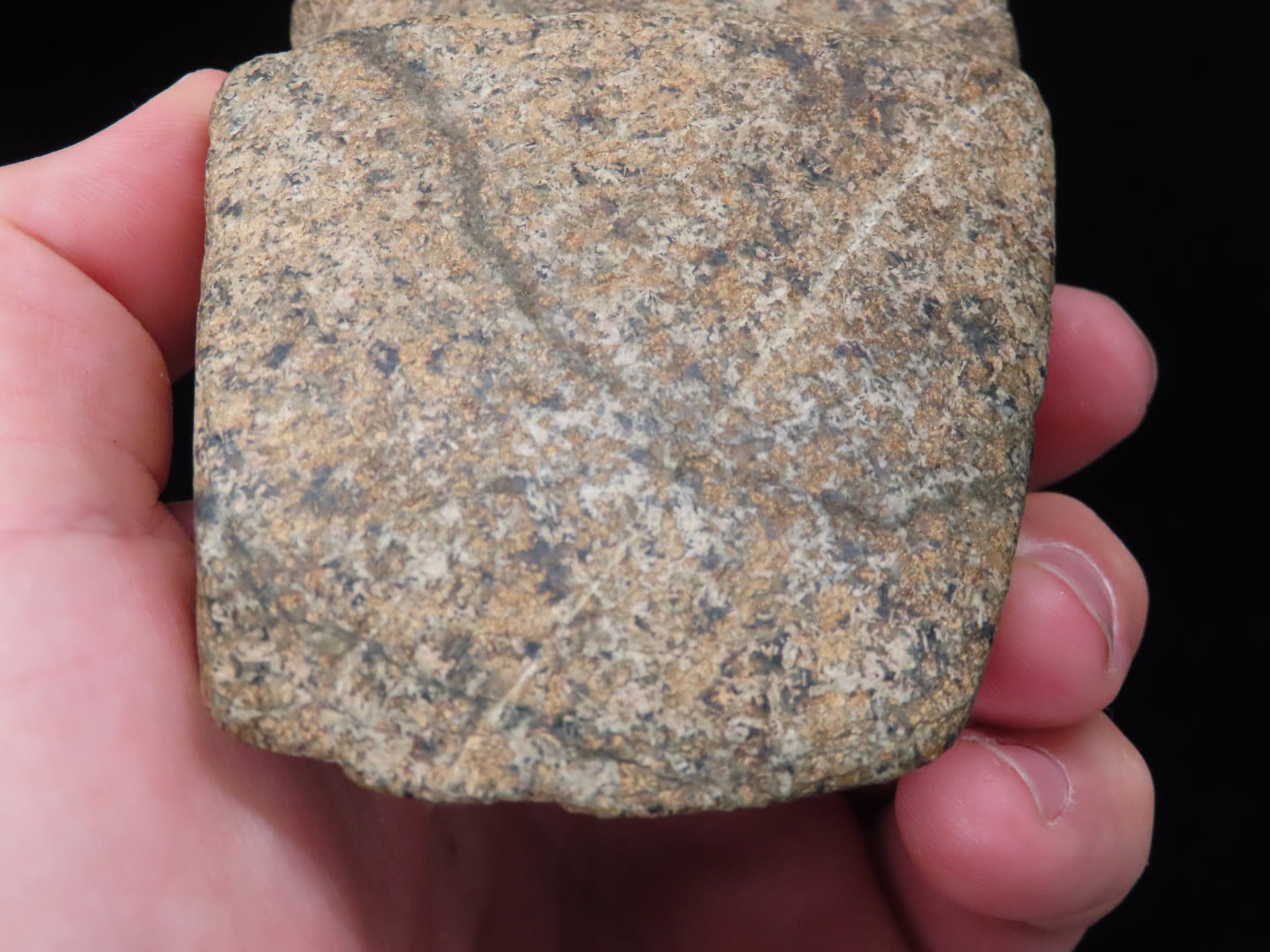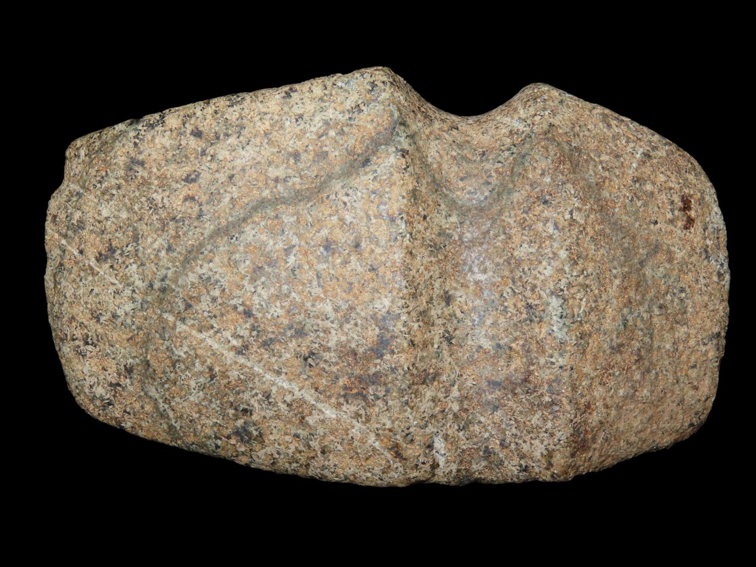 4 5/8″ Developed Missouri square 3/4 Groove Axe found in Cooper Co, Mo. Fluted Top and Bottom, Stands Nicely, Good Finish. This is a very nice axe with excellent granite color. Ex George Wolf Collection