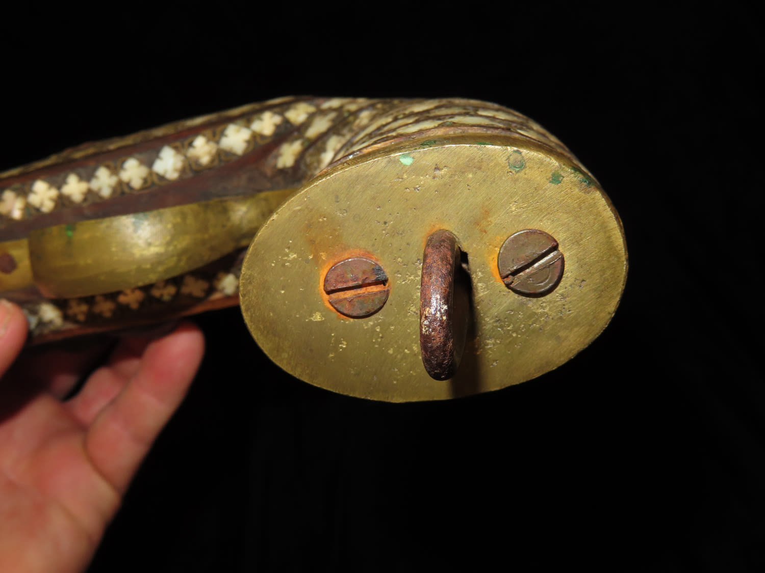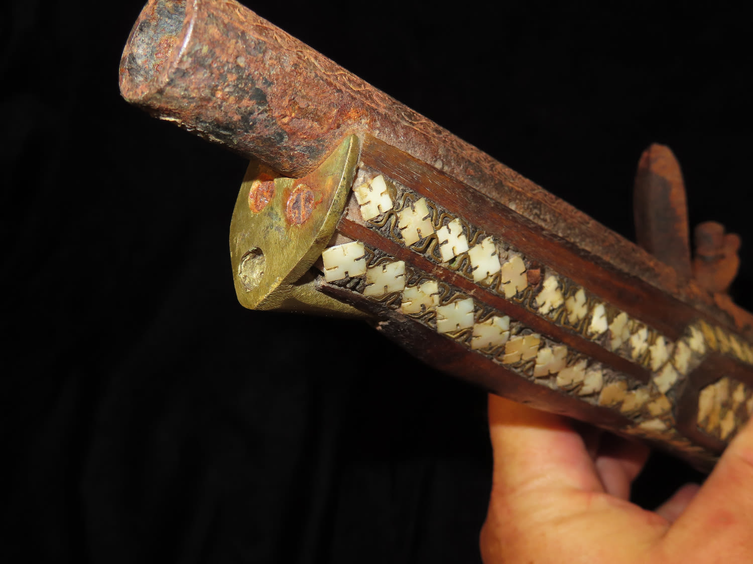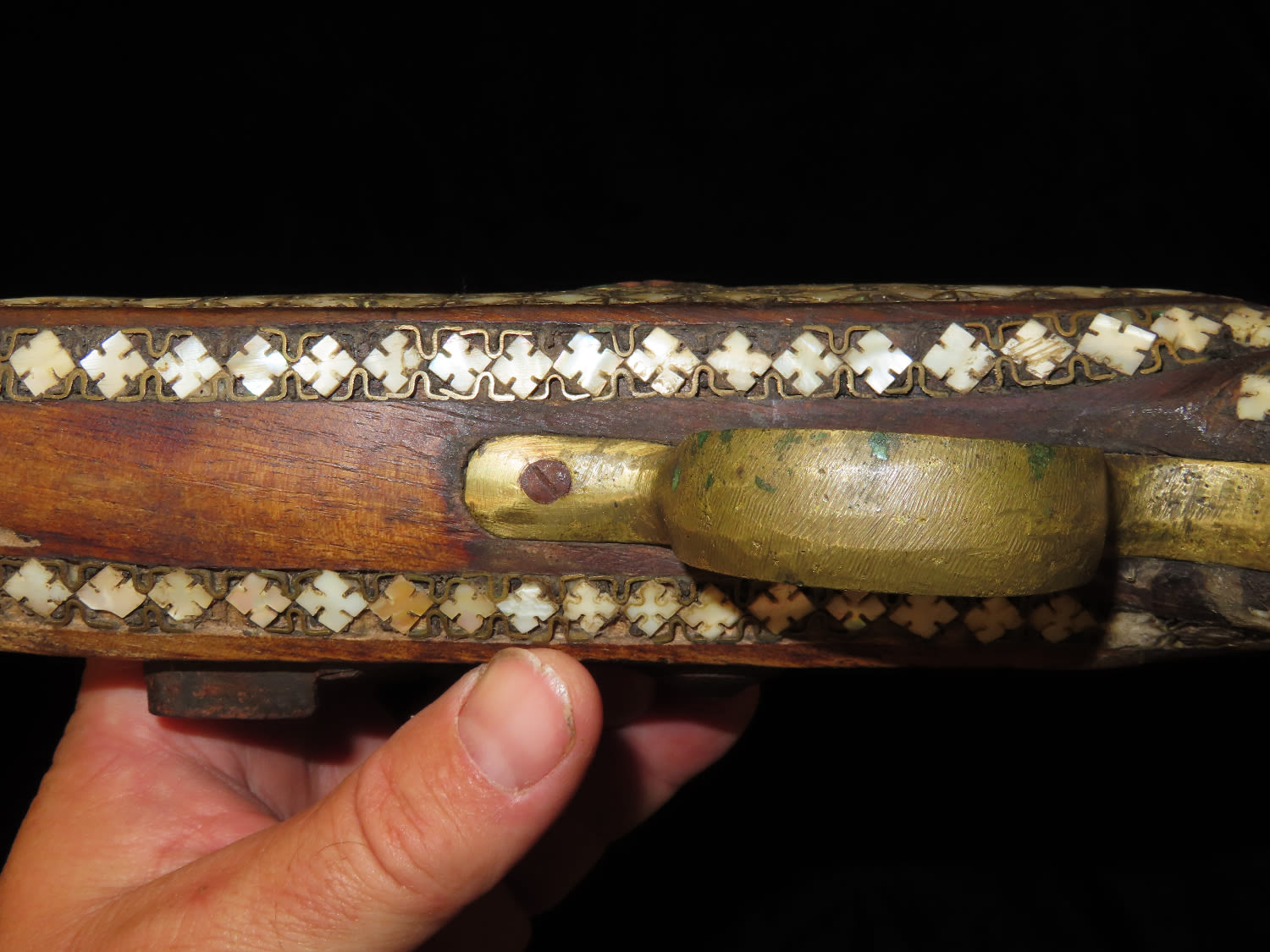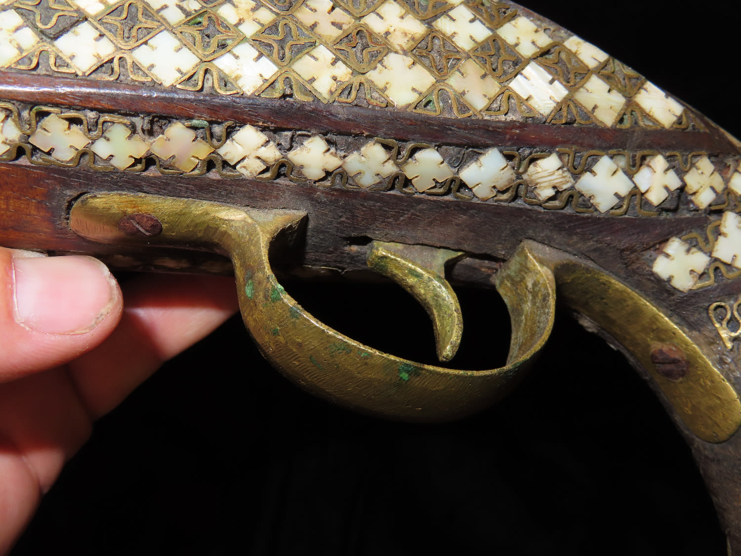 Flintlock Pistol, Very Ornate with inlayed stock and brass trigger. Mid East origin.