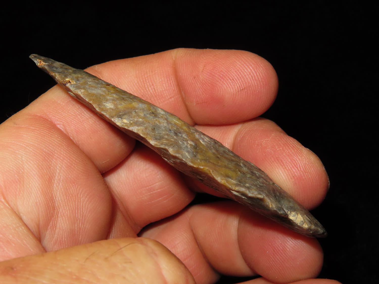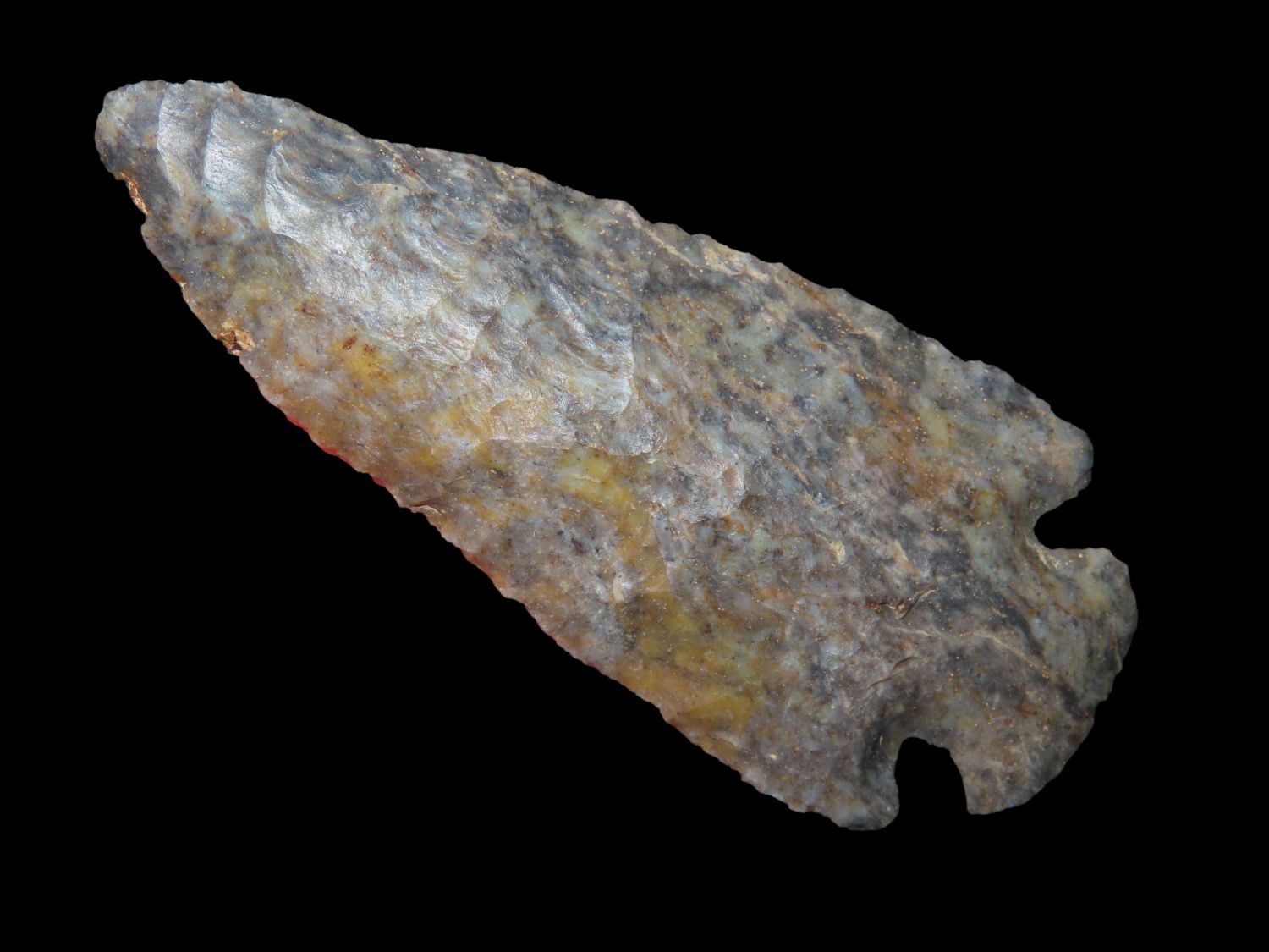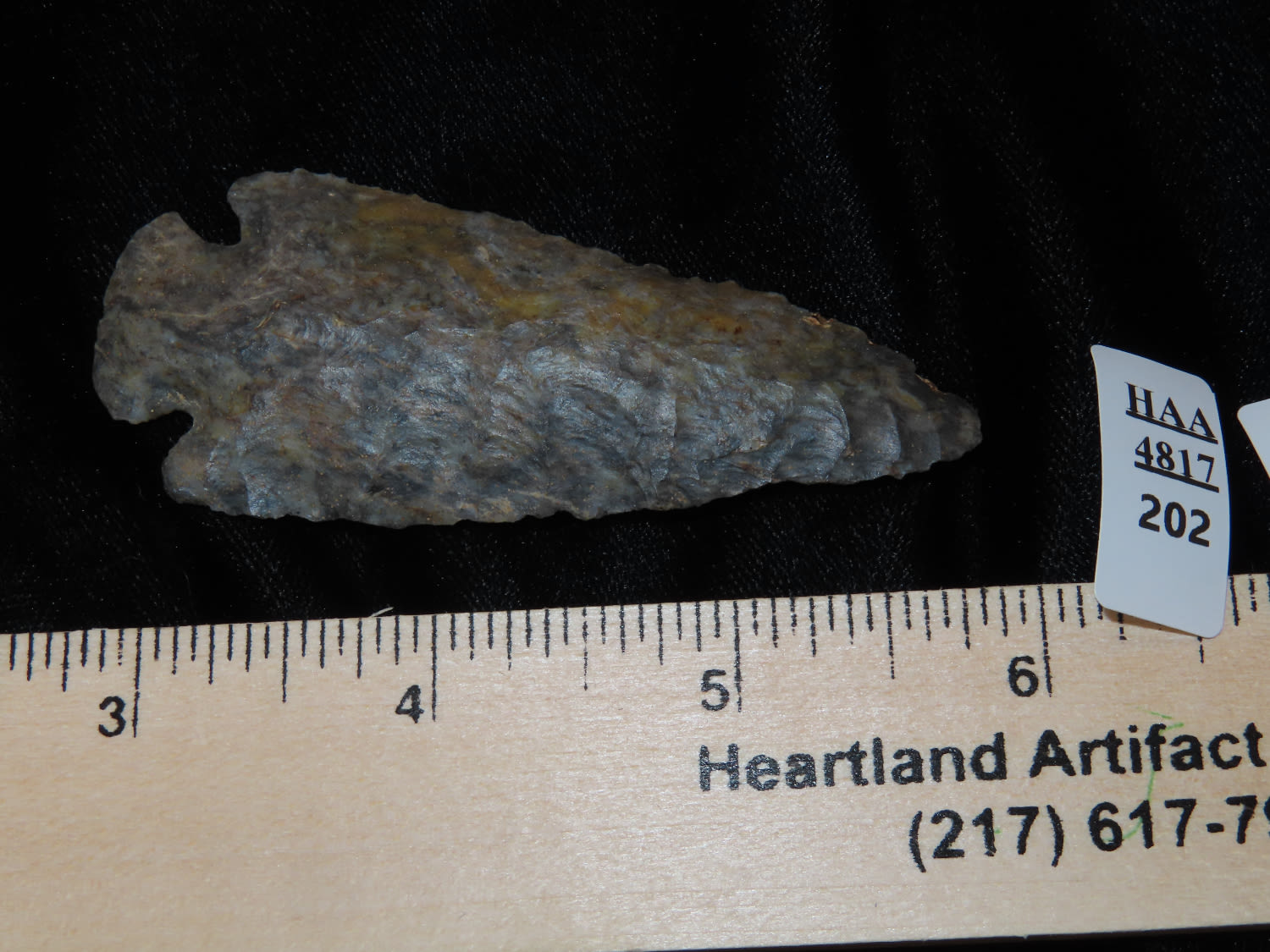 3 1/8″ Dovetail, made of Coshocton Flint, found in Hilliard Ohio, Ex. Jason Hannah, Ex. Gerald Miller Collections (does have Motley COA- would need to be reprinted), Ex Ron Comer Collection