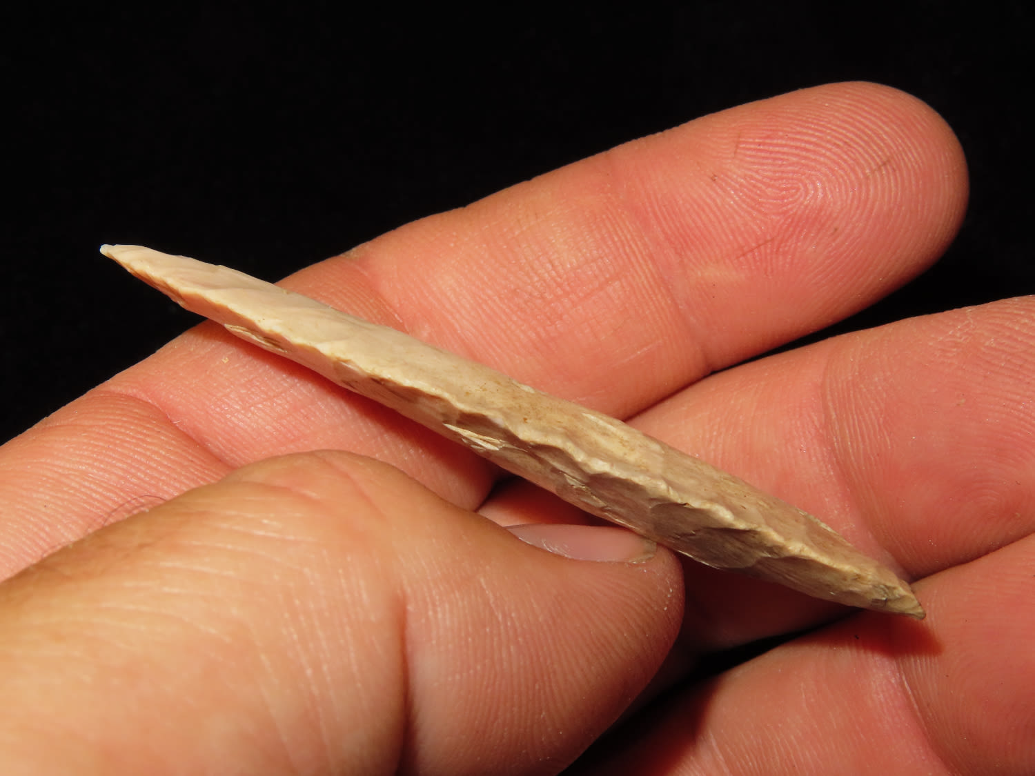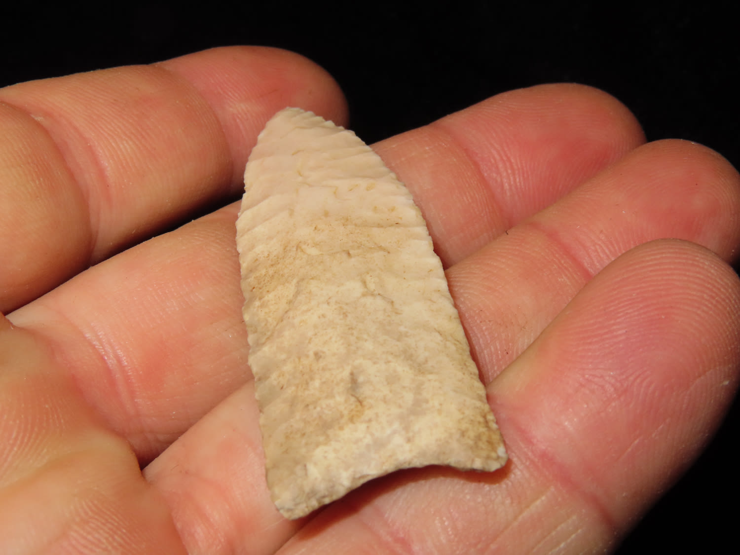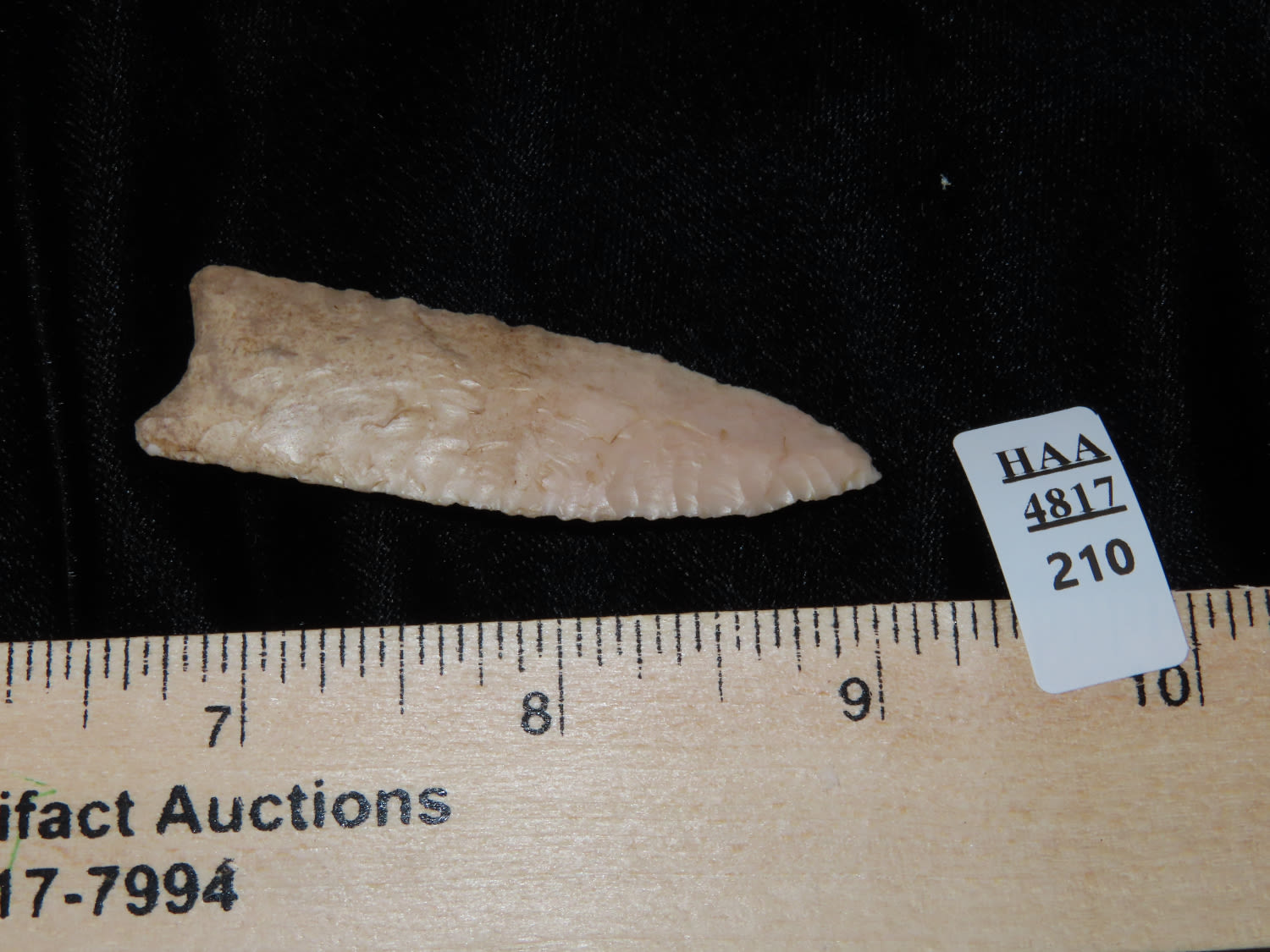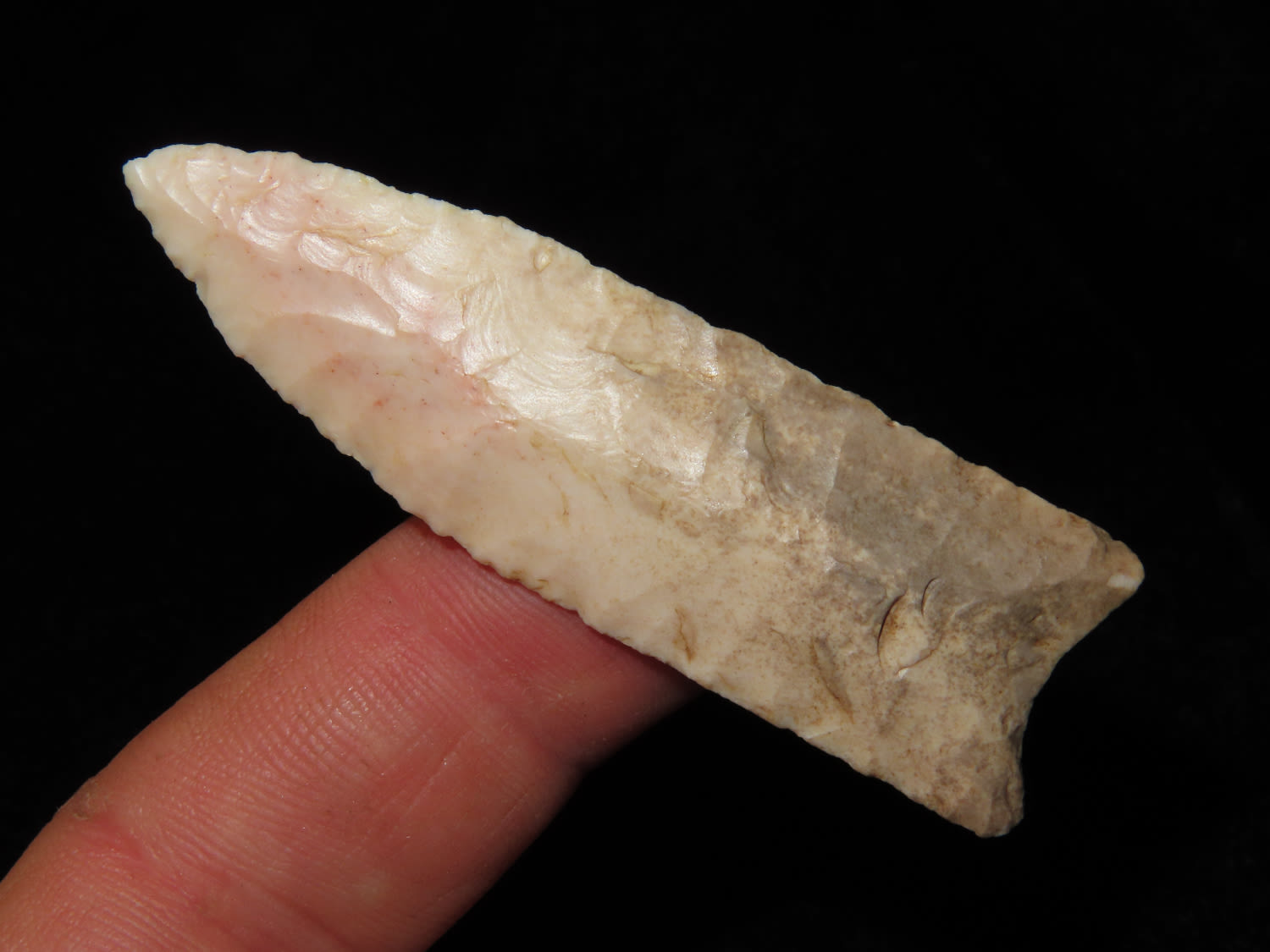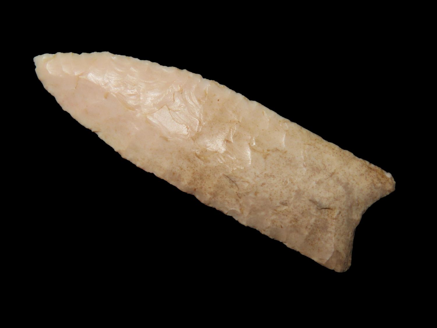 2 1/2″ Plainview, Jackson COA, found in Missouri, made of Burlington Chert, Beautiful Example of type, Flaking is exceptional, Ex Ron Comer Collection
