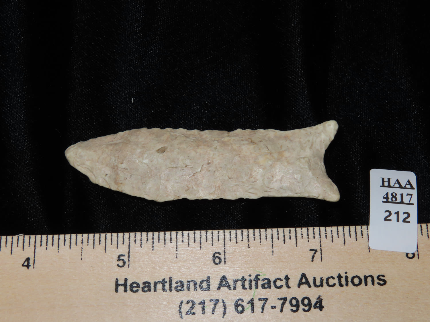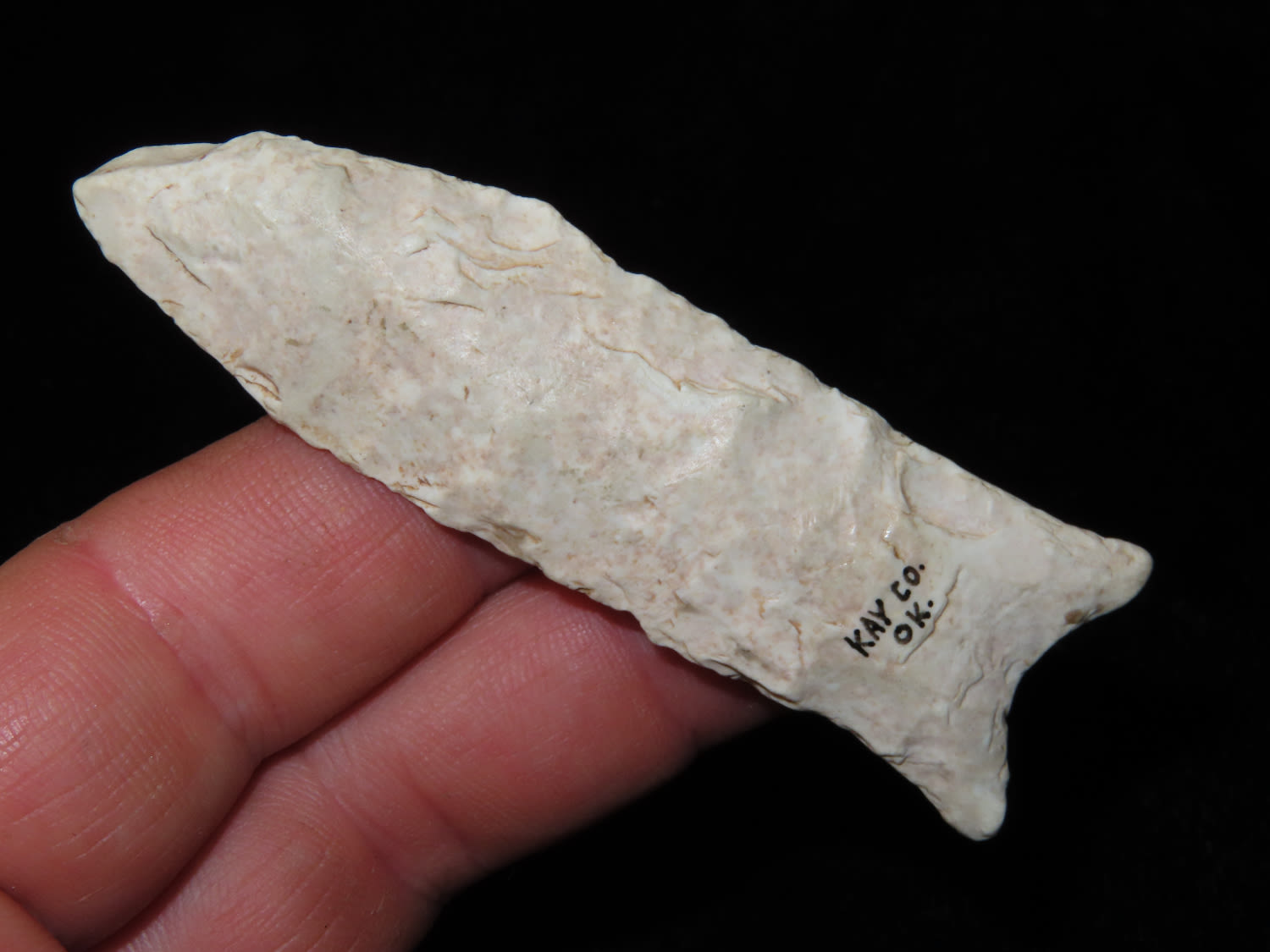 3 3/16″ Dalton, made of Kay County Chert, found in Kay Co, Oklahoma, purchased from Jim Bennett at Premiere Auctions in 2017, Ex Ron Comer Collection