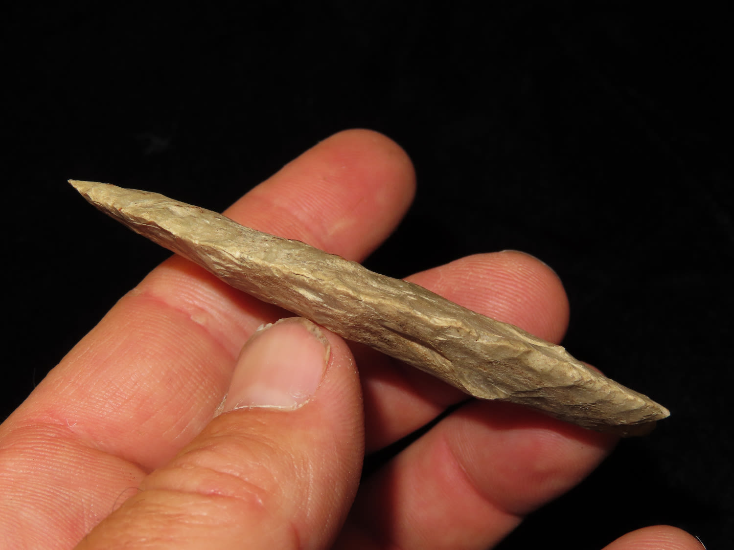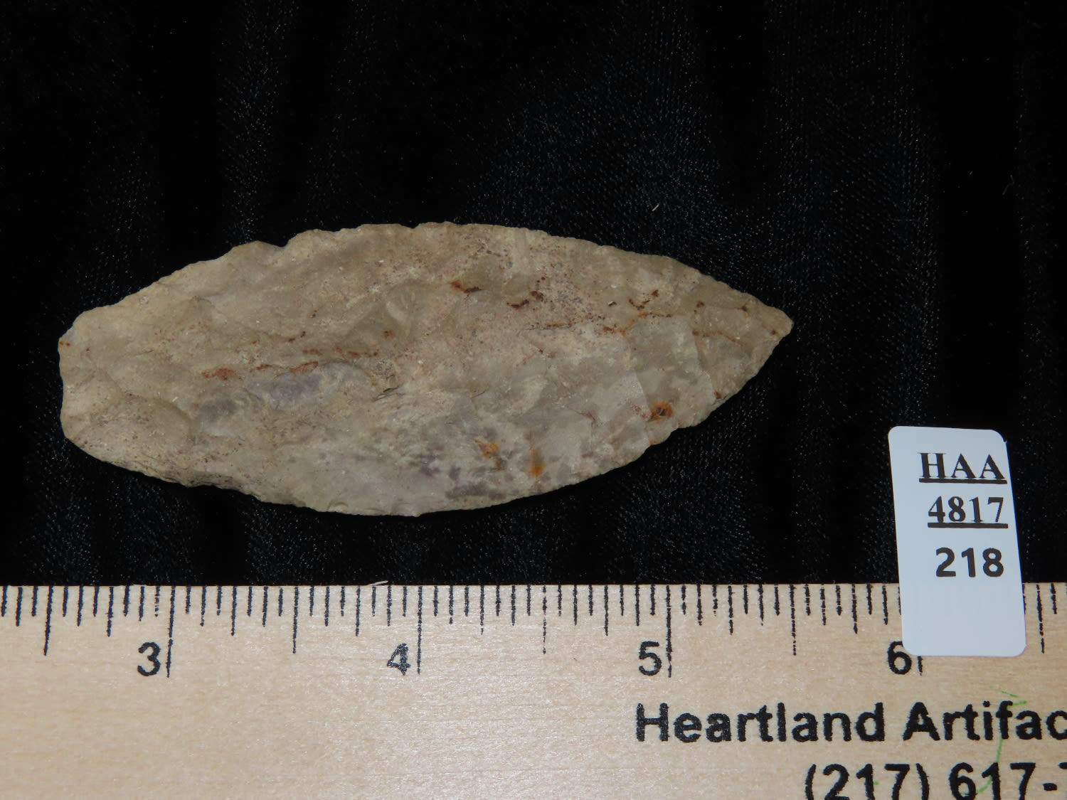 3 1/8″ Paleo Lanceolate, found in Delaware Co. Ohio, purchased from Jim Bennett at Premiere Auctions in 2016, Ex Ron Comer Collection